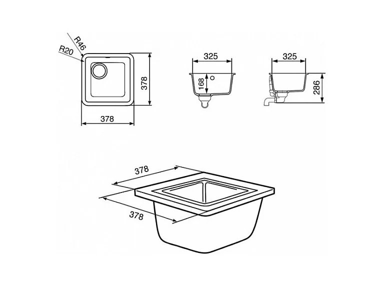 Lavello incasso monovasca sottotop 38x38 Smeg VST38AL colore alluminio