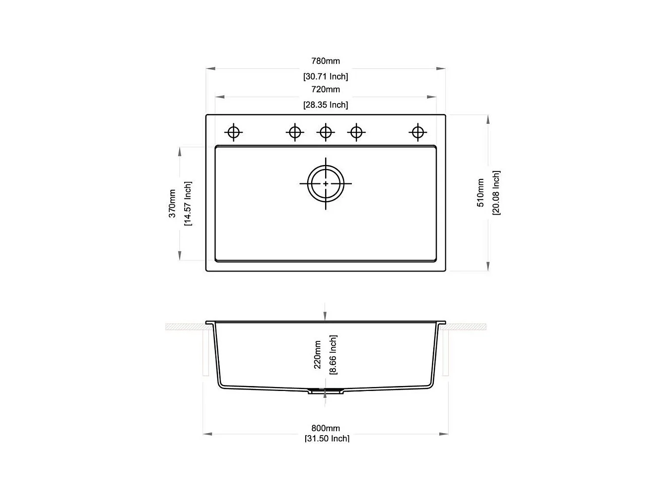 Lavello da cucina monovasca 78x51 DXT780 Samet