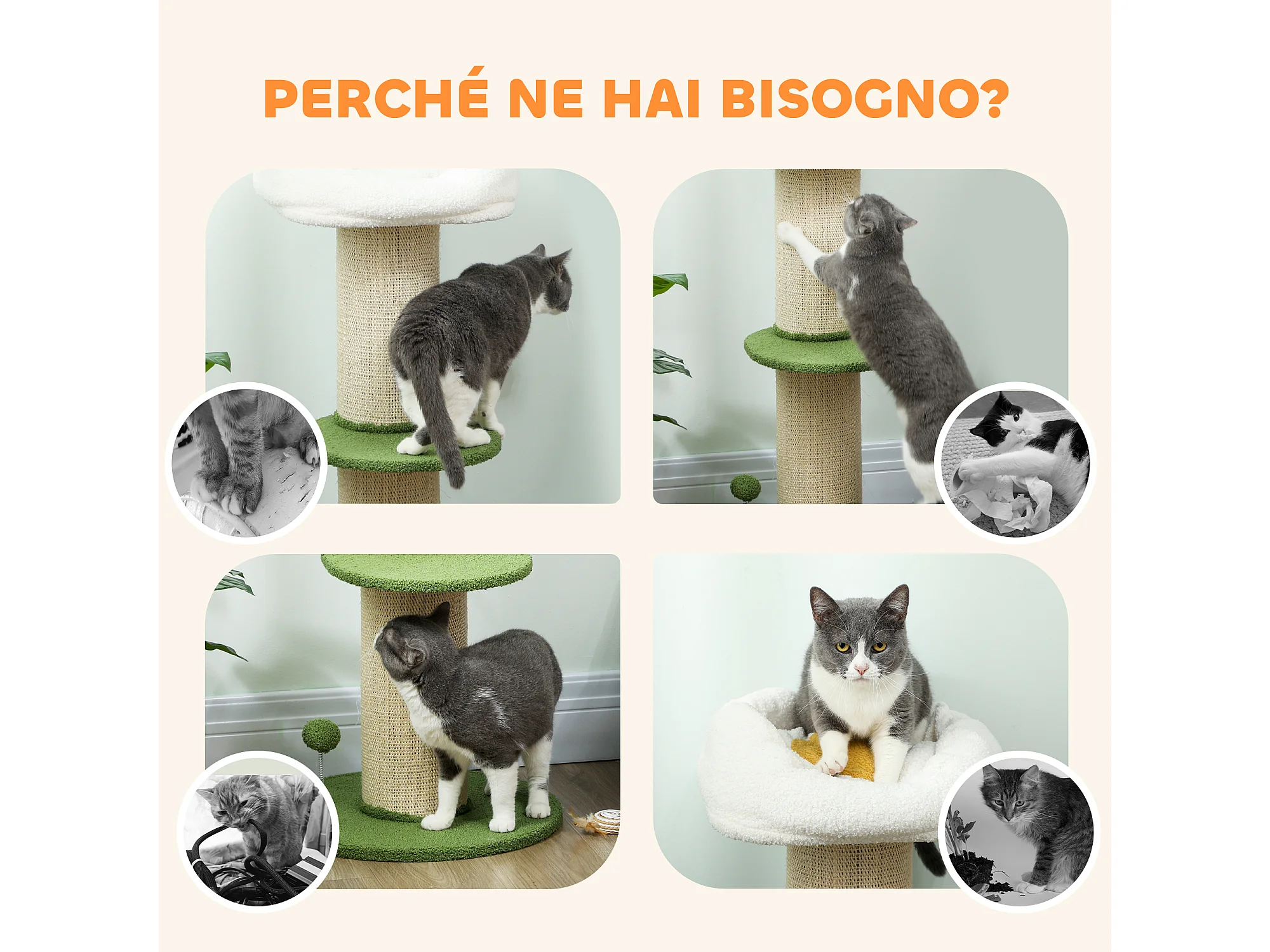 PawHut Albero per Gatti a forma di Cactus con Tiragraffi e Pallina