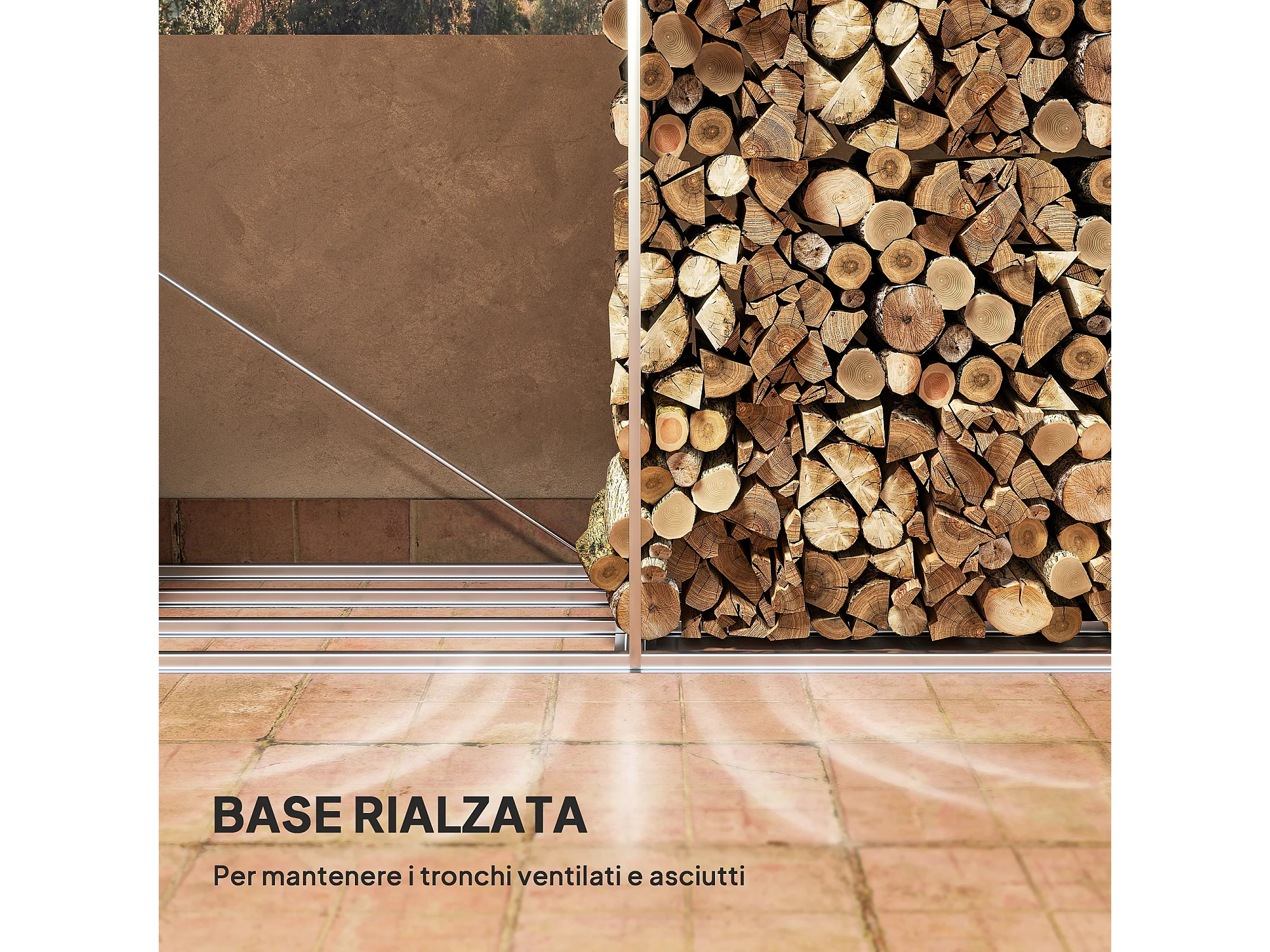 Scaffale per legna da ardere camino legnaia casa giardino in acciaio 40x100x25cm