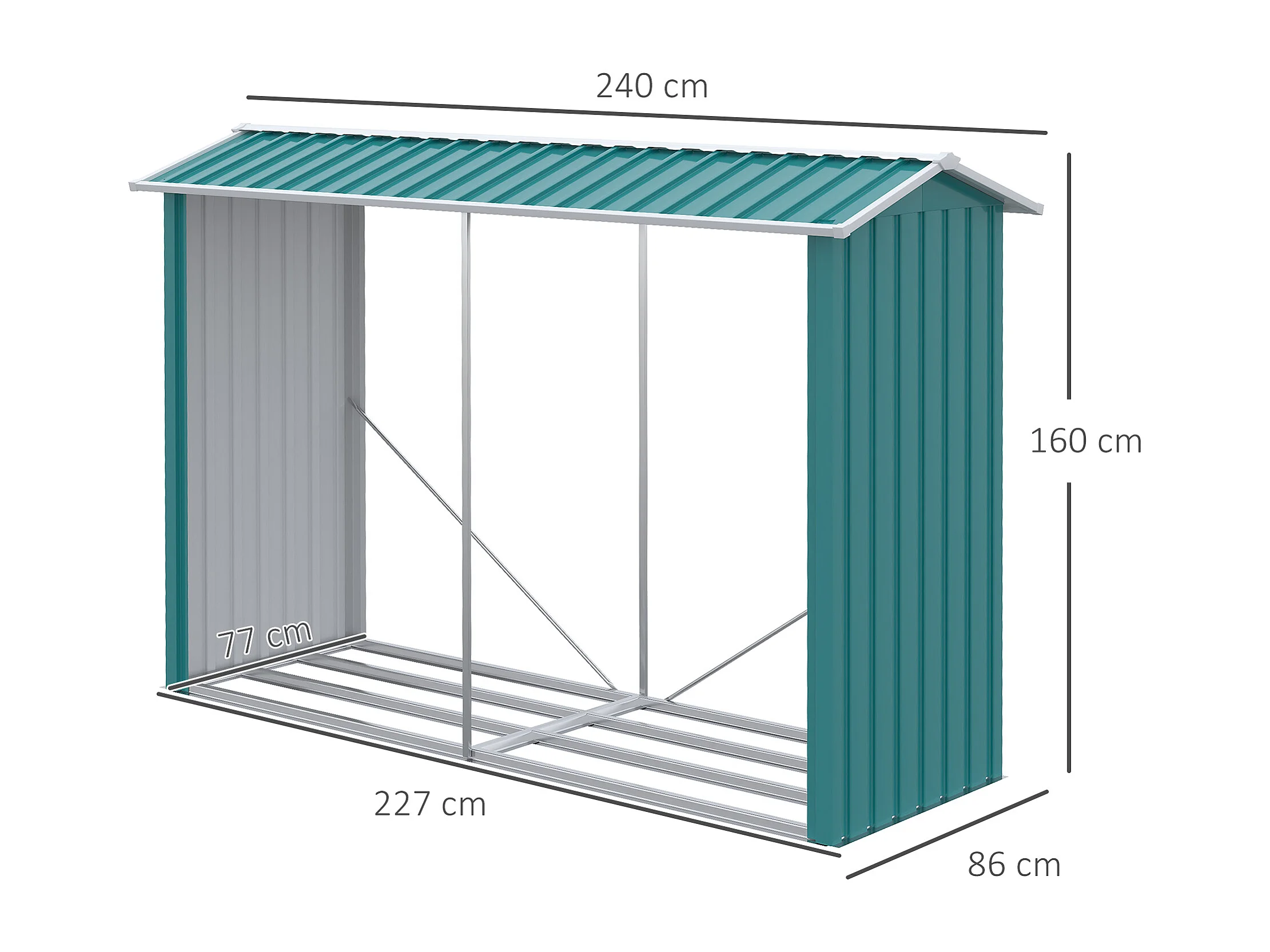 Legnaia base rialzata e tetto inclinato 240x 86x160cm verde