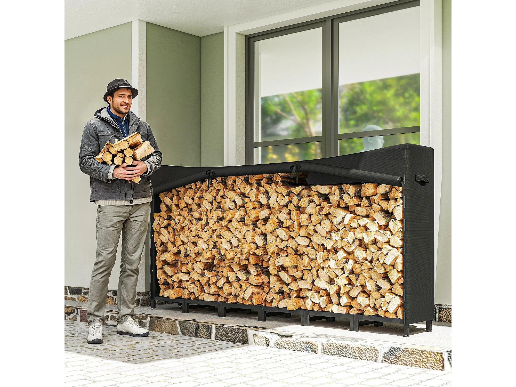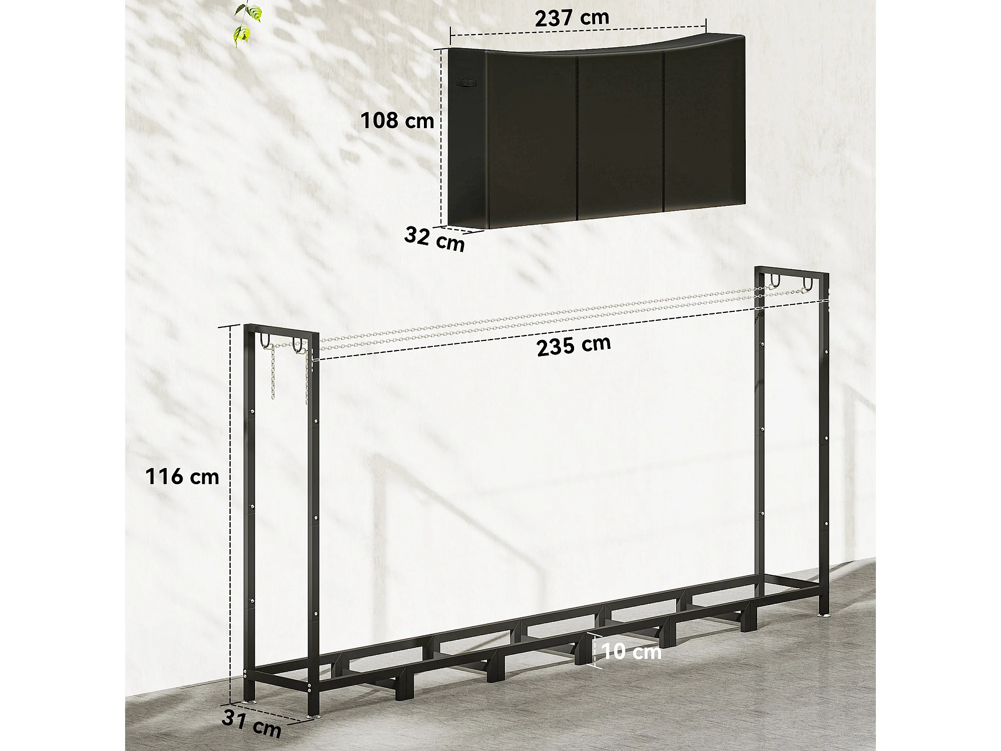 Legnaia da esterno con telo impermeabile e telaio regolabile nero