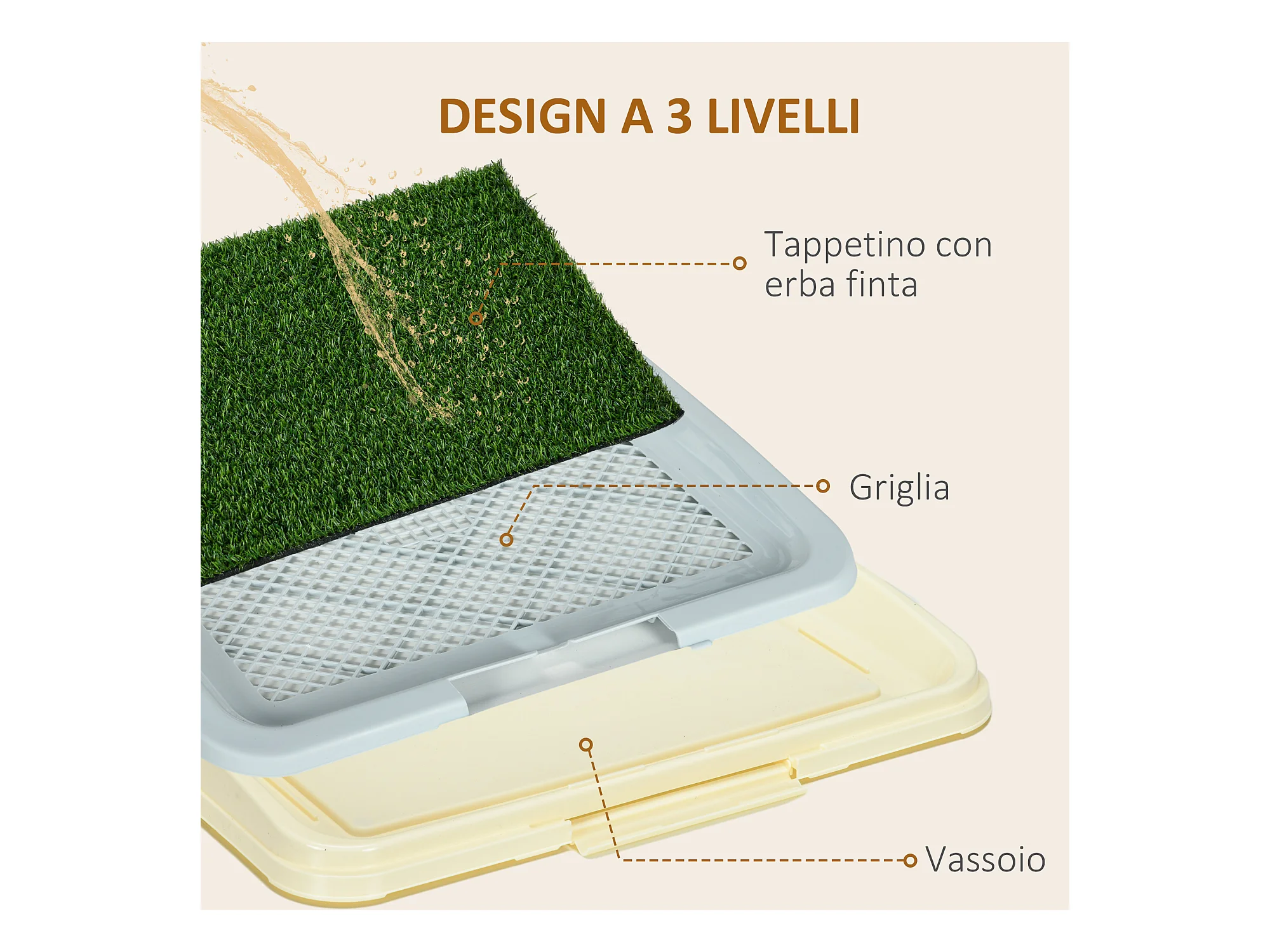 Lettiera per cani 3 strati con prato sintetico, griglia e vassoio