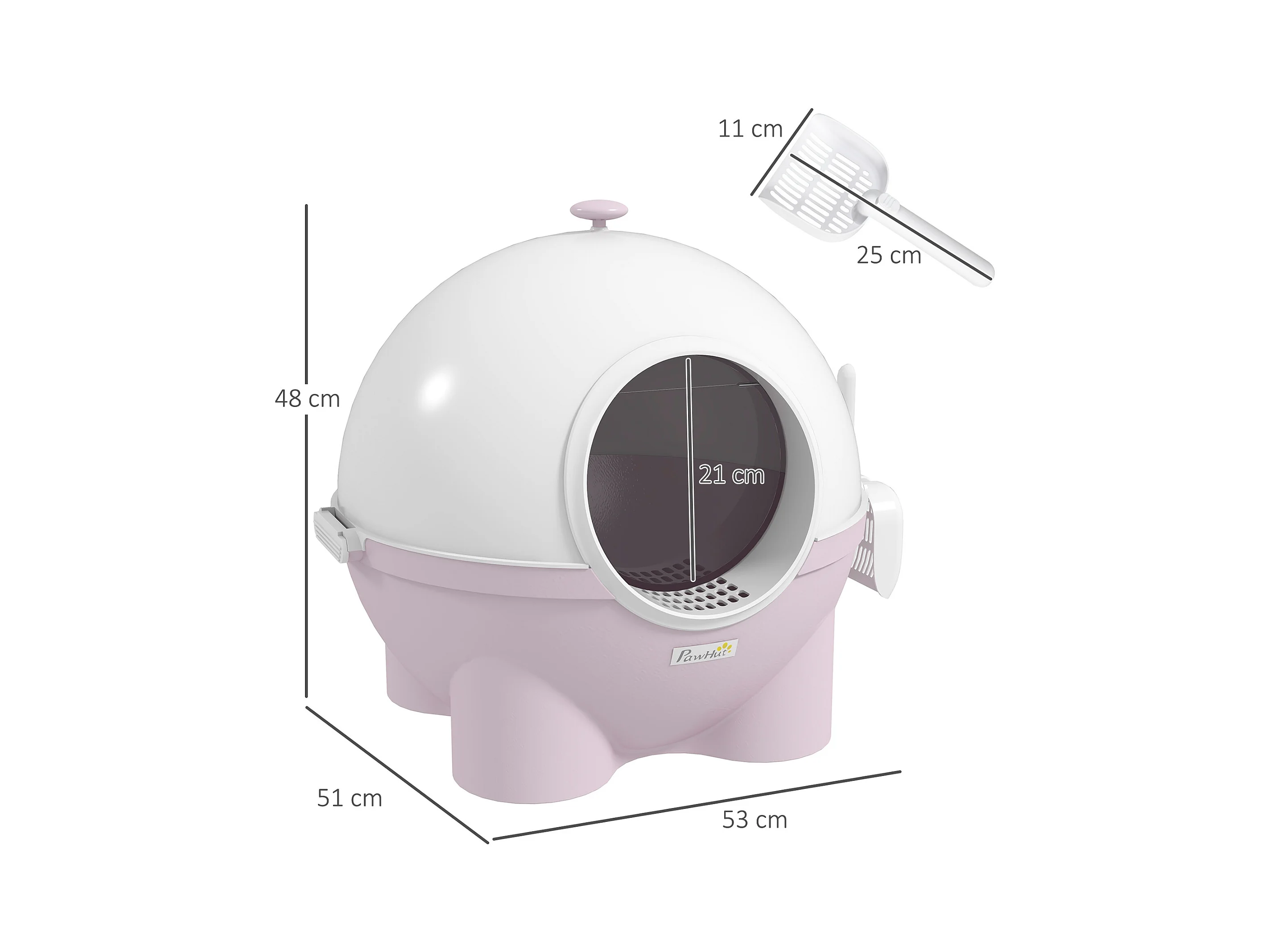 Lettiera per gatti chiusa con paletta e vassoio estraibile rosa e bianco