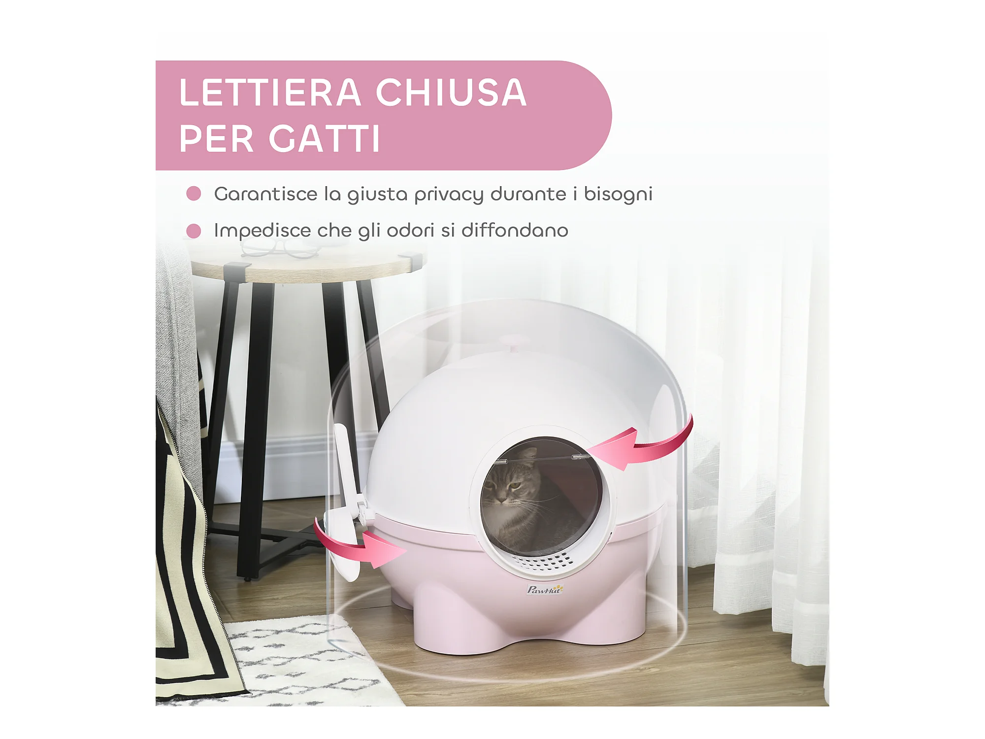 Lettiera per gatti chiusa con filtri paletta e vassoio rimovibile rosa