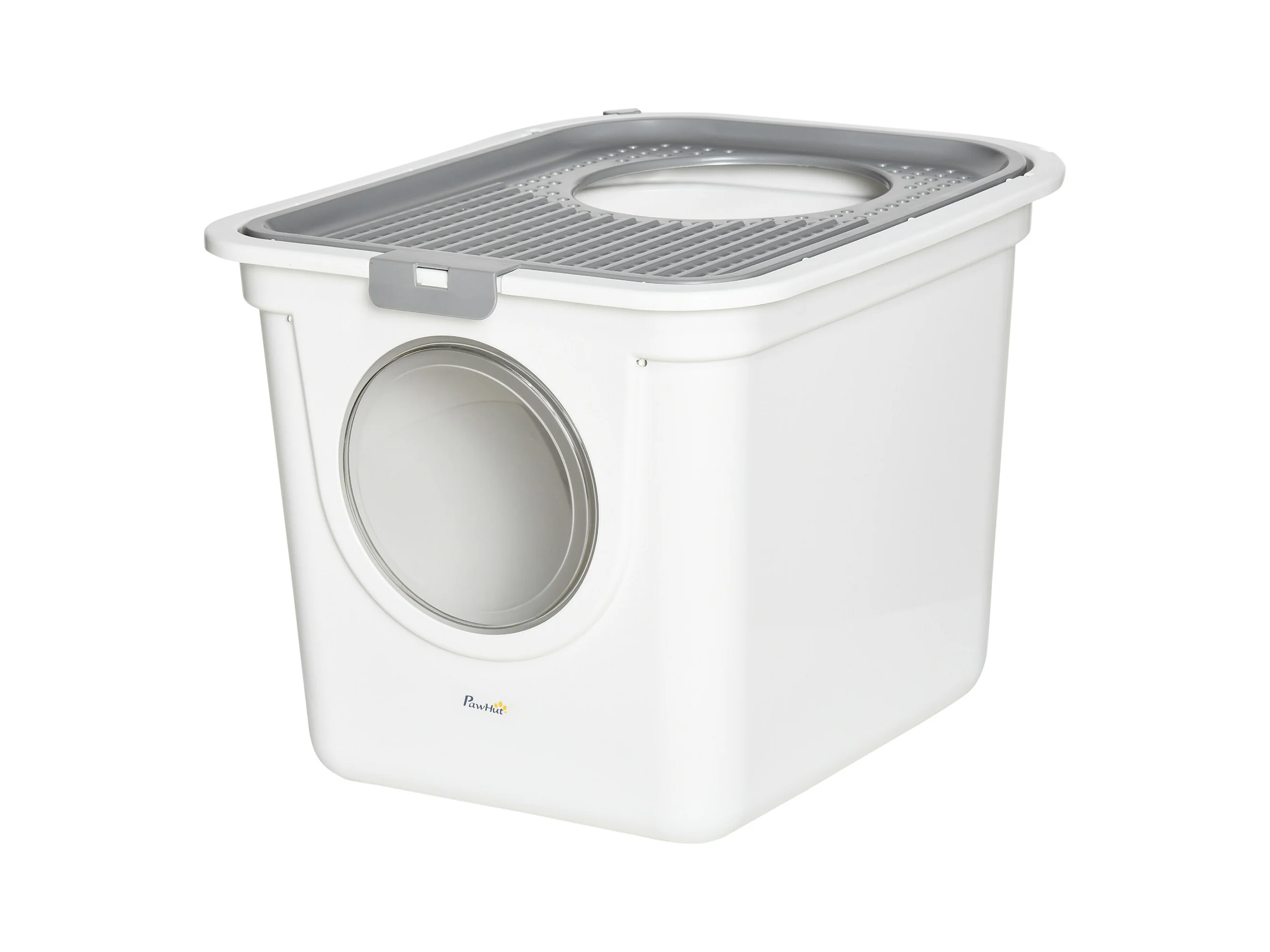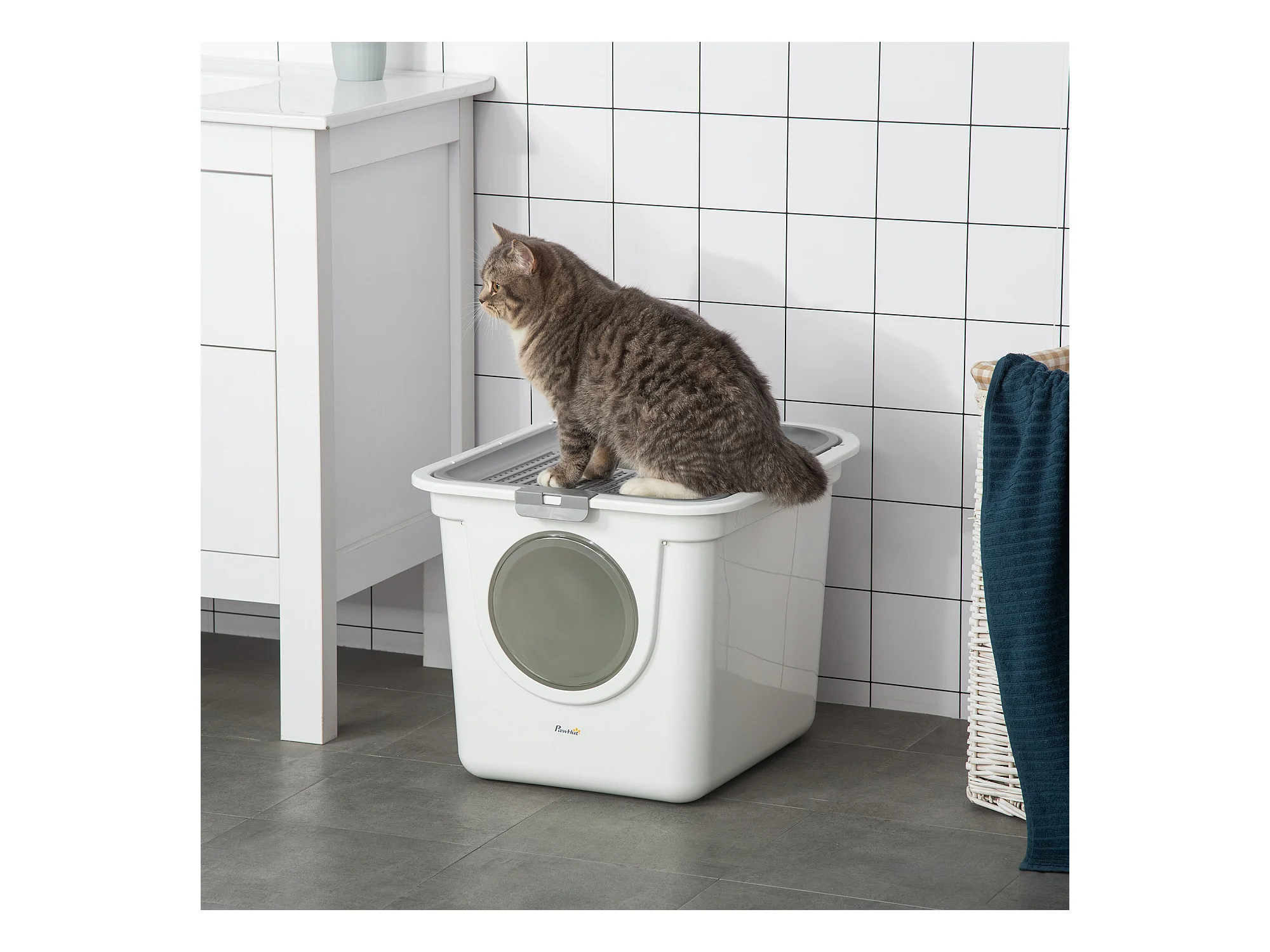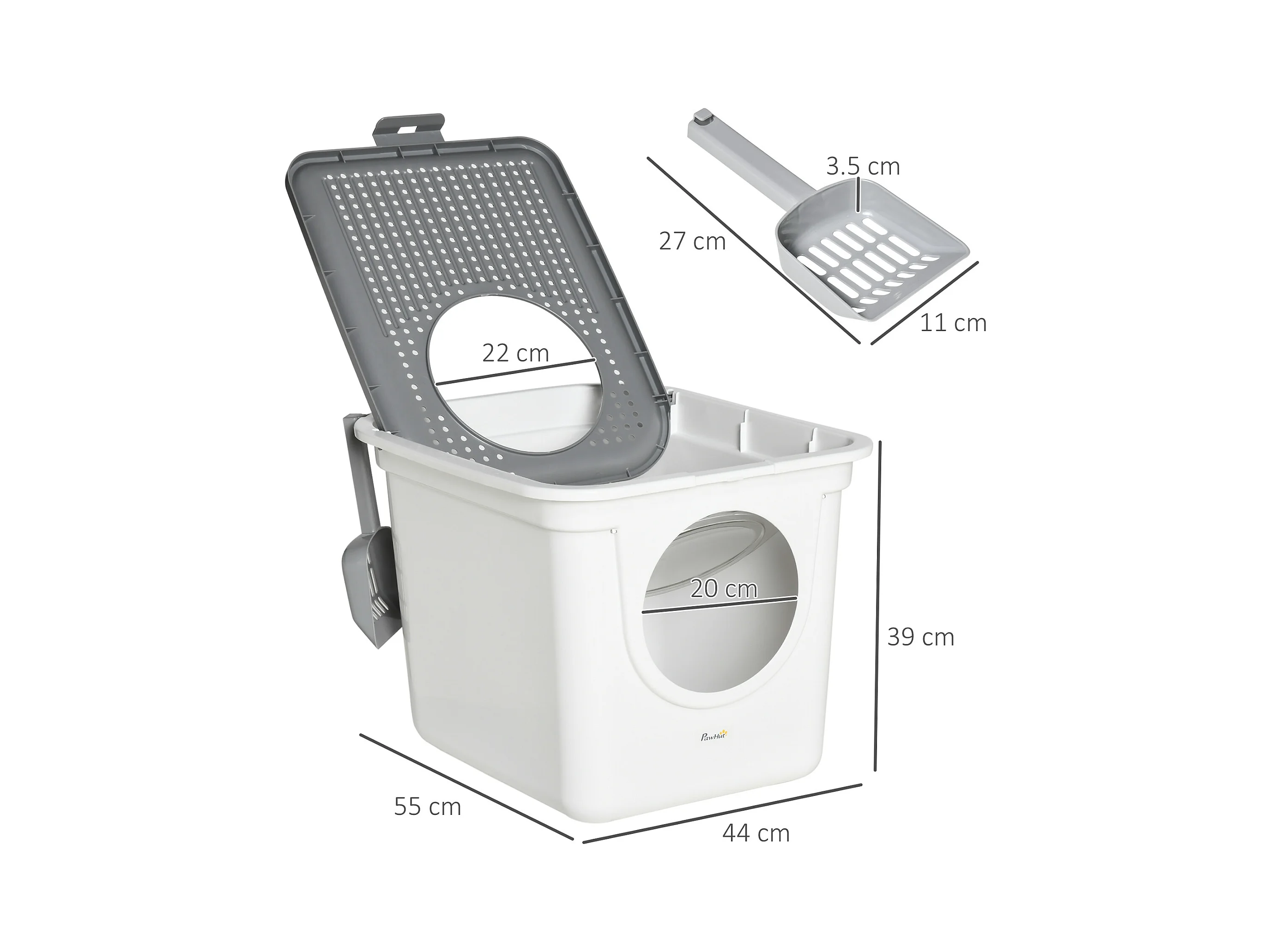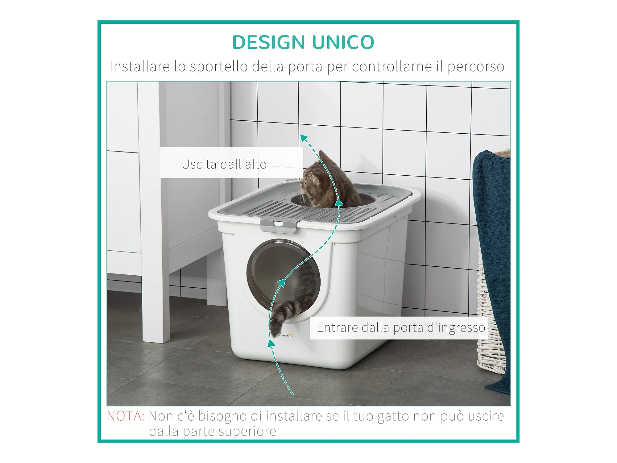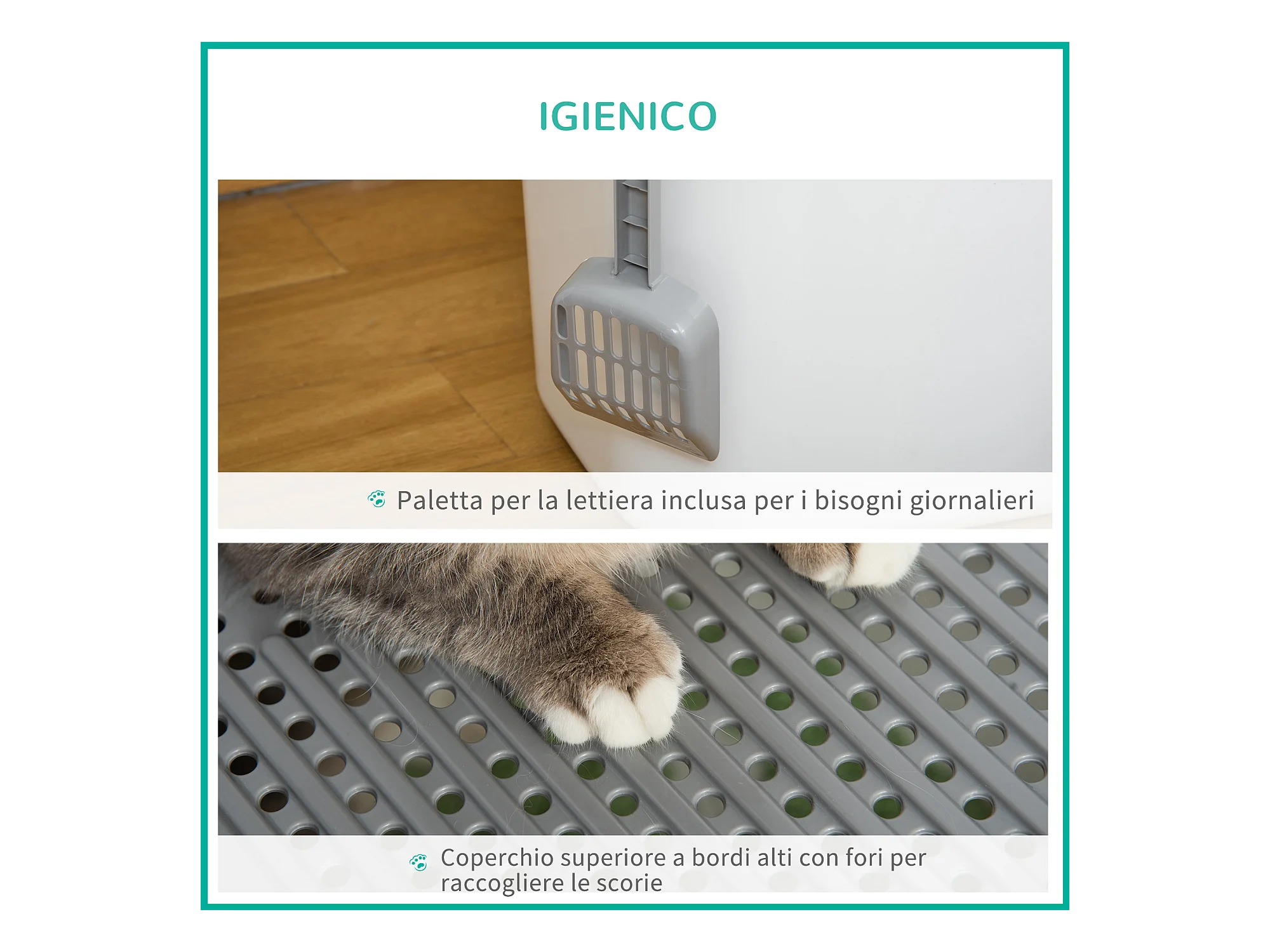 Lettiera per gatti chiusa a 2 ingressi con vassoio e paletta in pe bianco