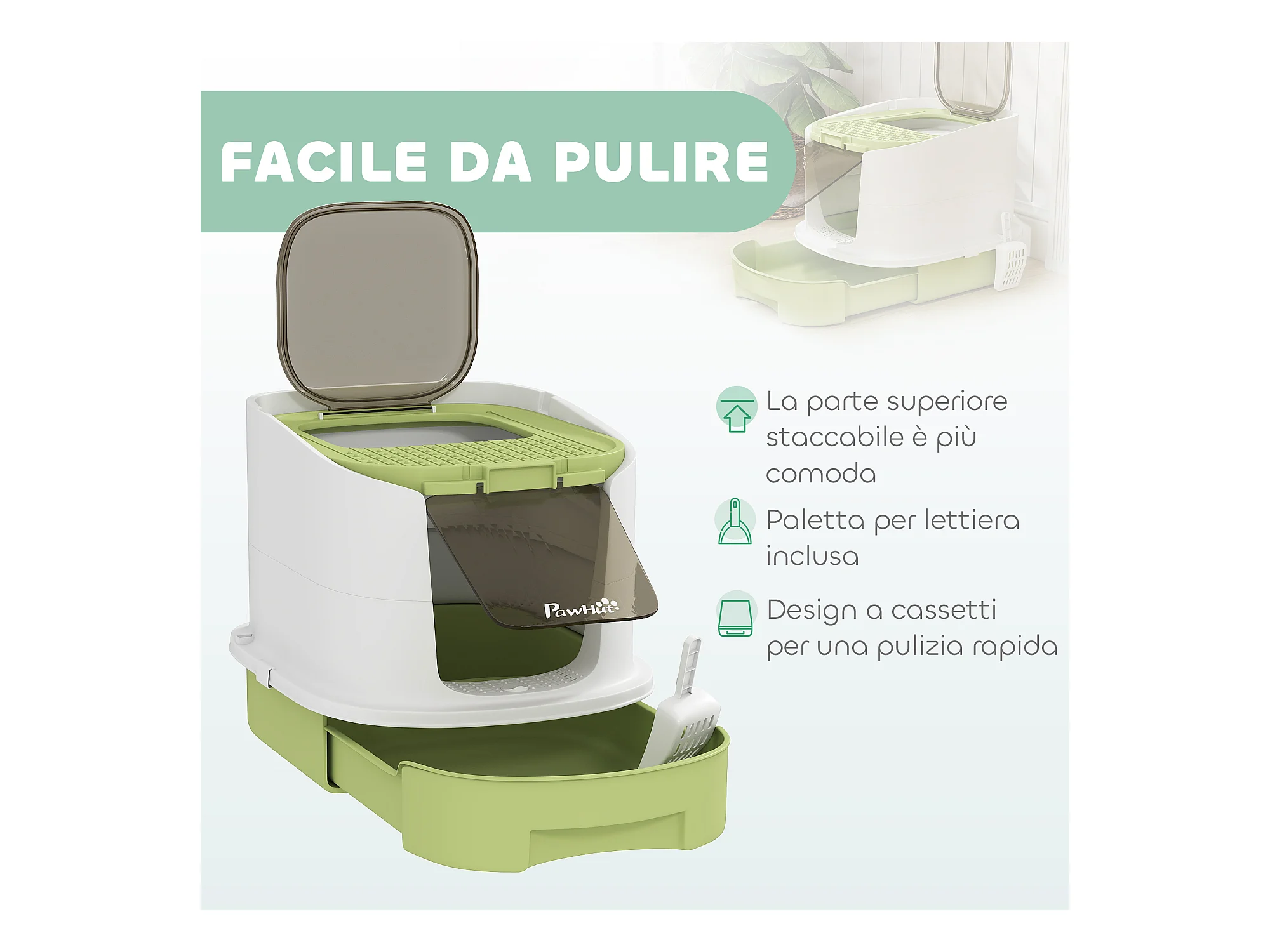 Lettiera per gatti con coperchio apribile e vassoio estraibile verde