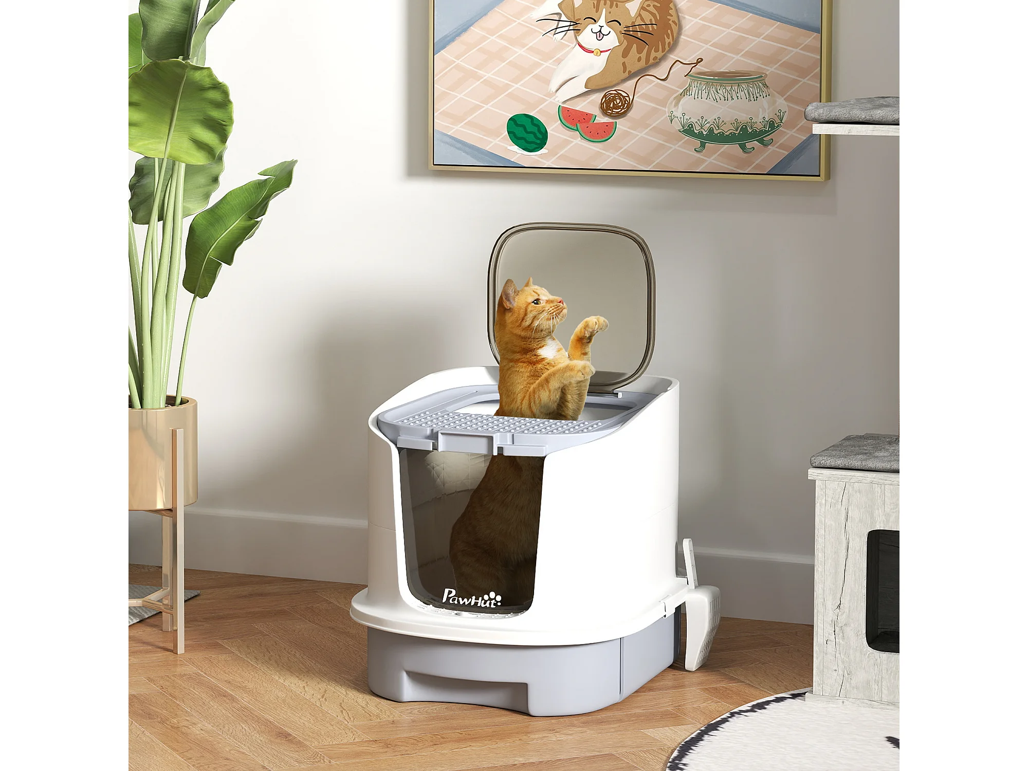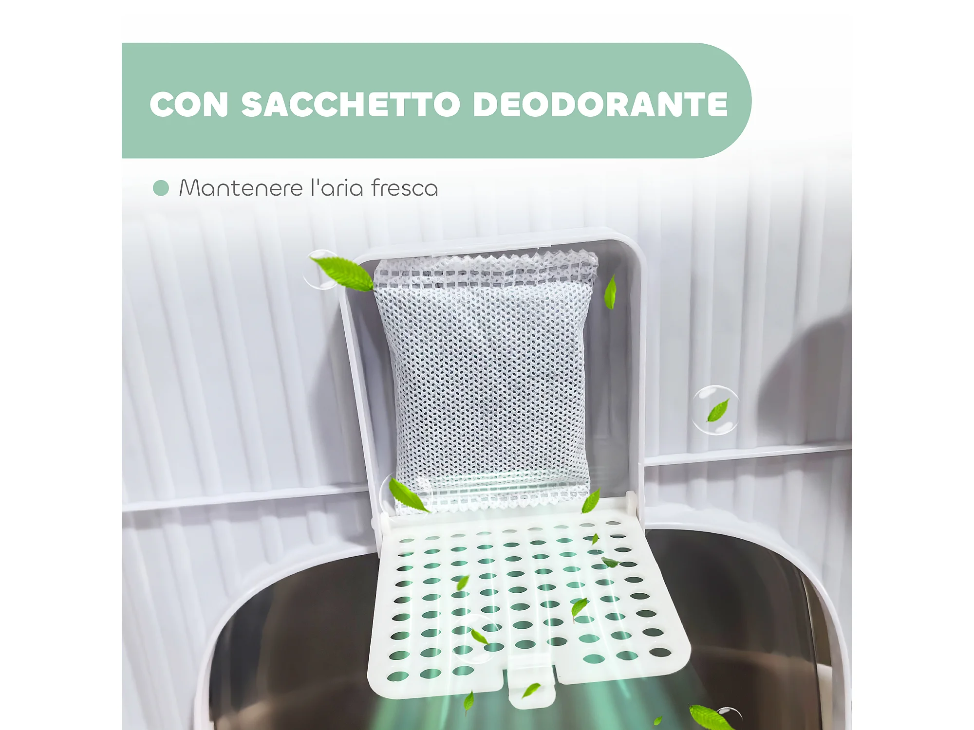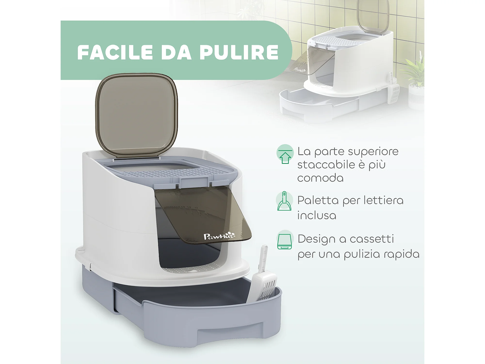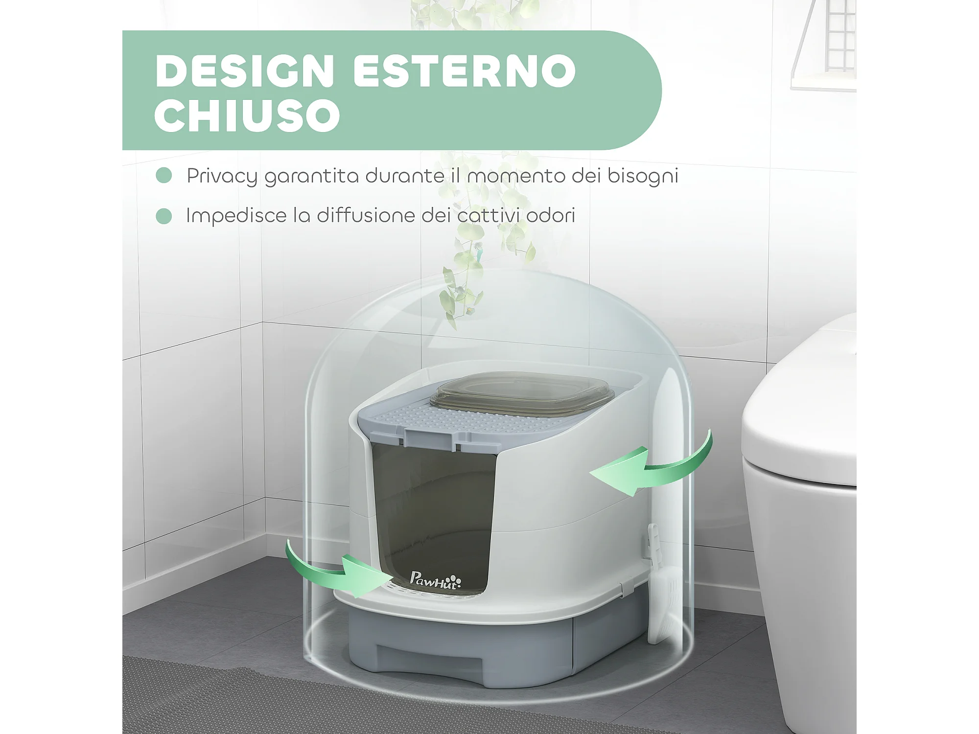 Lettiera per gatti chiusa con coperchio e gattaiola in pp grigio e bianco