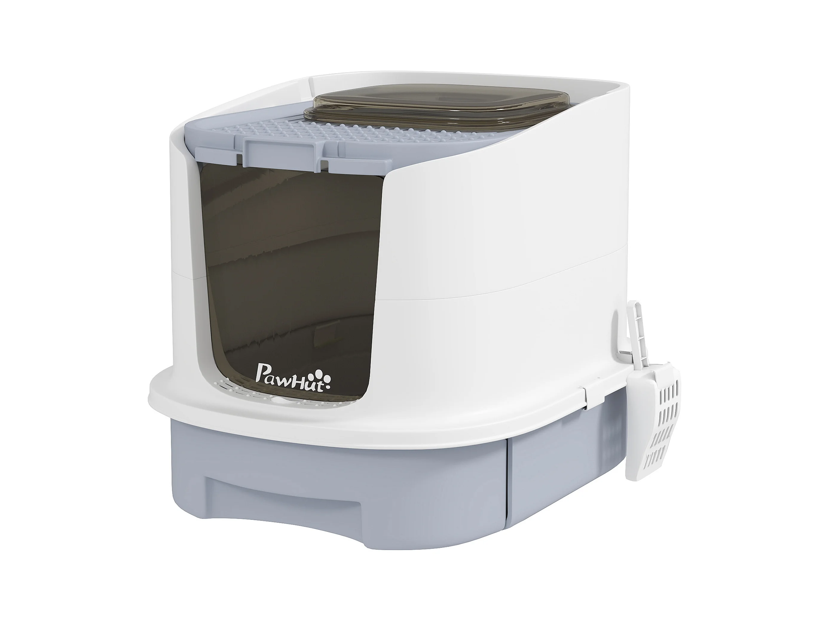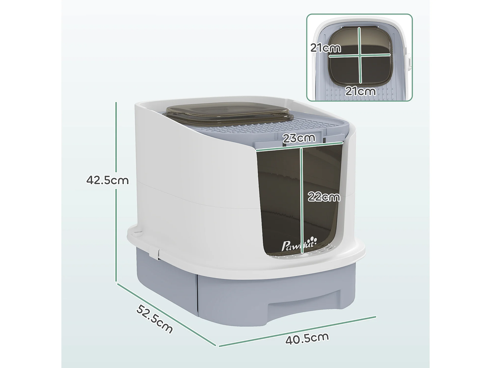 Lettiera per gatti chiusa con vassoio estraibile e paletta azzurro