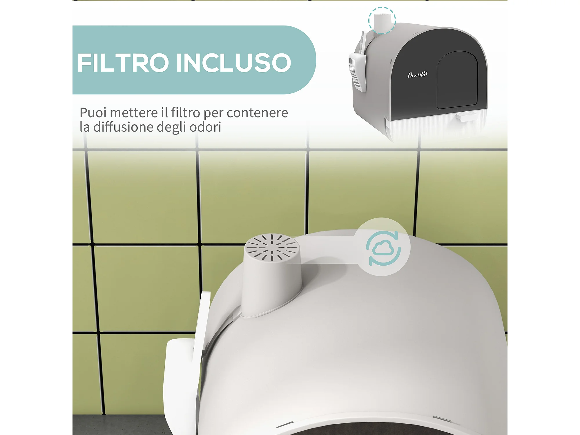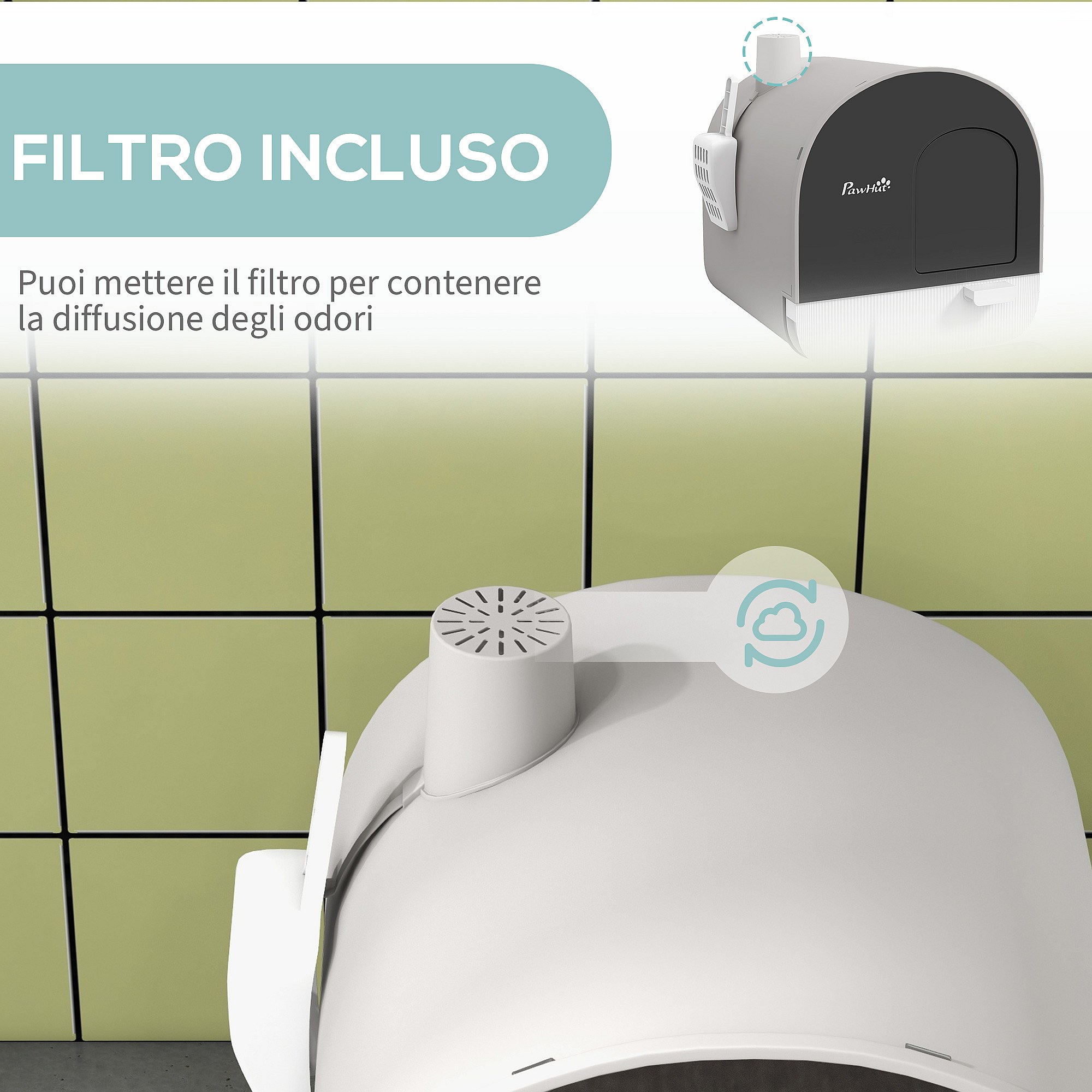 Lettiera per gatti chiusa con filtri paletta e vassoio rimovibile grigio
