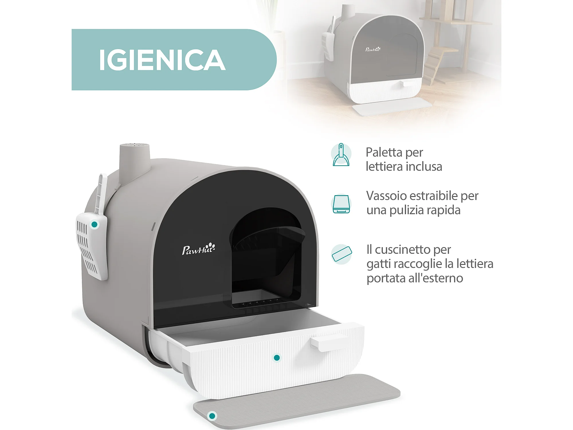Lettiera per gatti chiusa con paletta vassoio estraibile e 2 porte