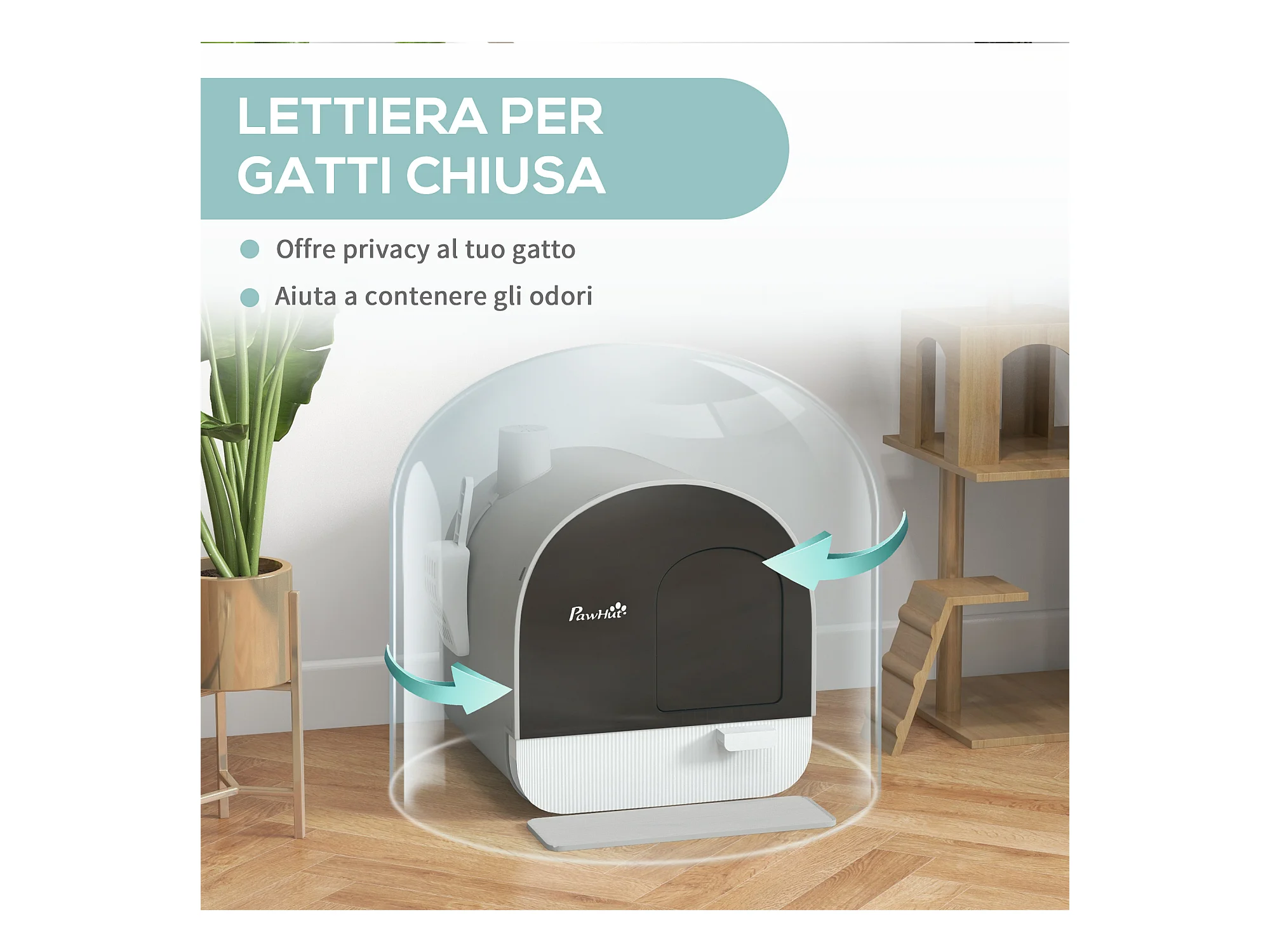 Lettiera per gatti chiusa con coperchio e gattaiola in pp grigio e bianco