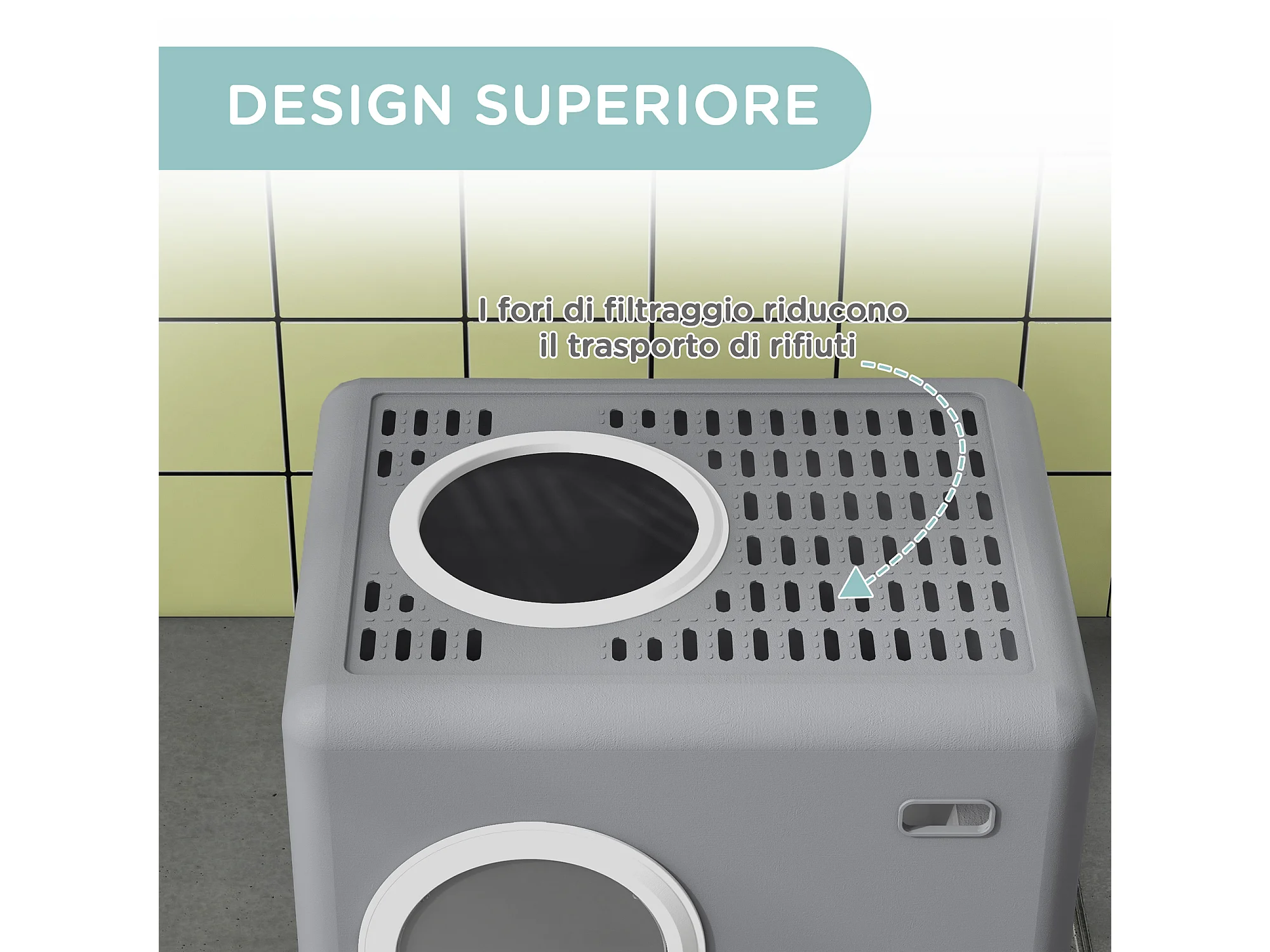 Lettiera per gatti chiusa con doppia entrata cassetto e paletta grigio