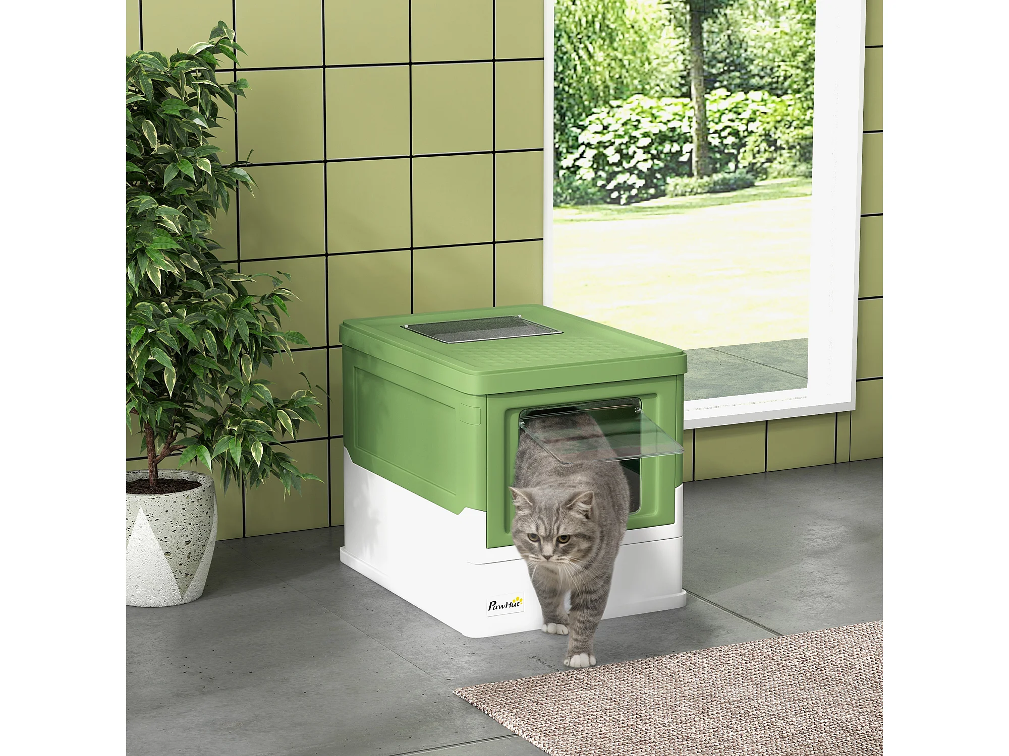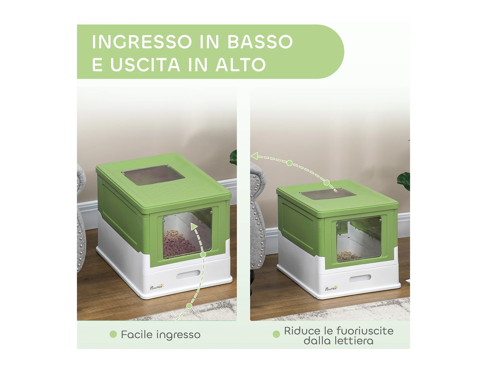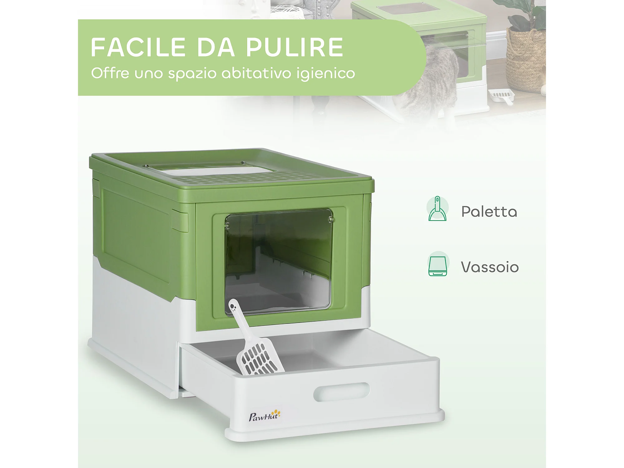Lettiera per gatti con coperchio apribile e vassoio estraibile verde