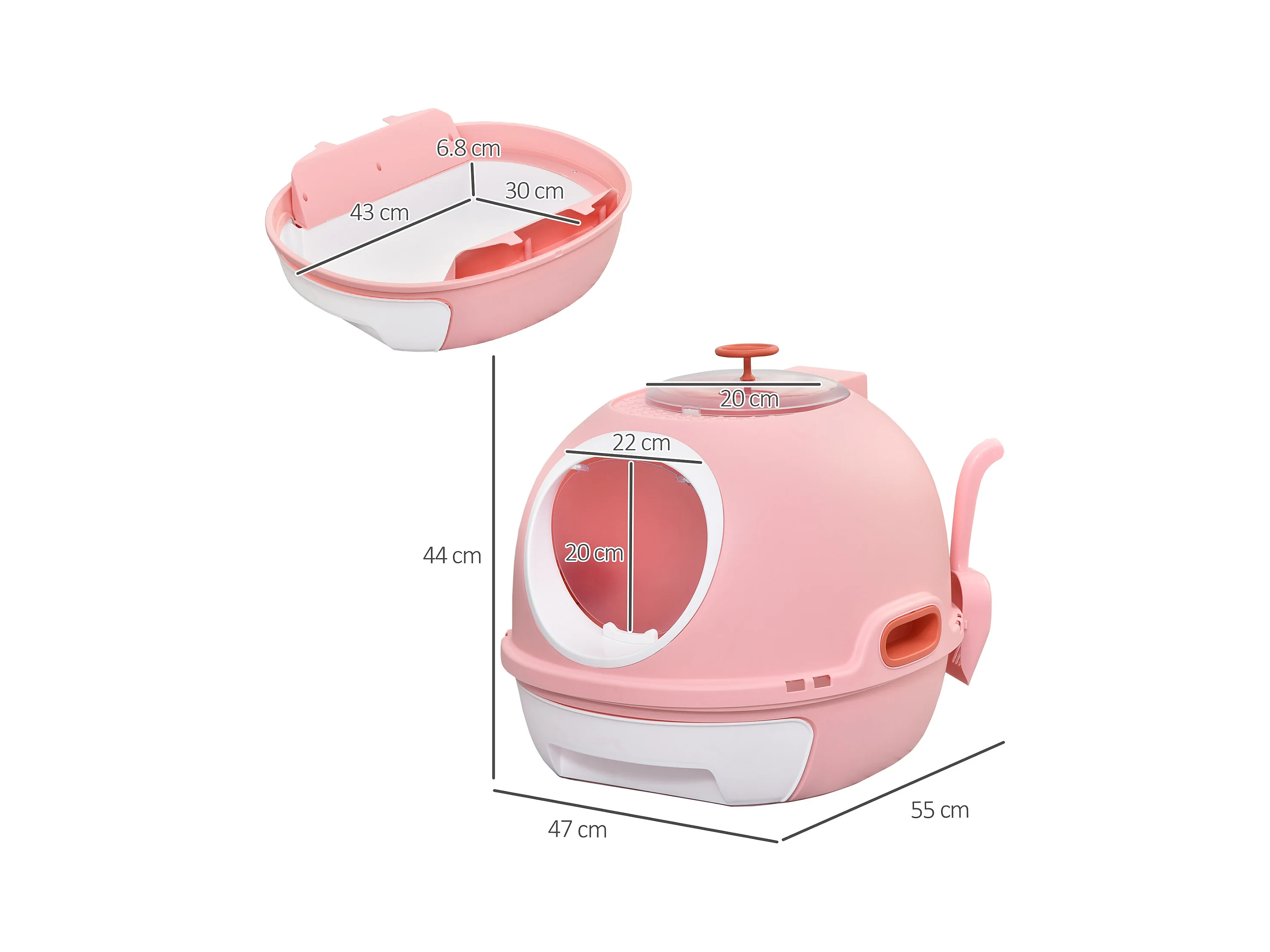 Lettiera per gatti chiusa con vassoio estraibile e 2 ingressi rosa