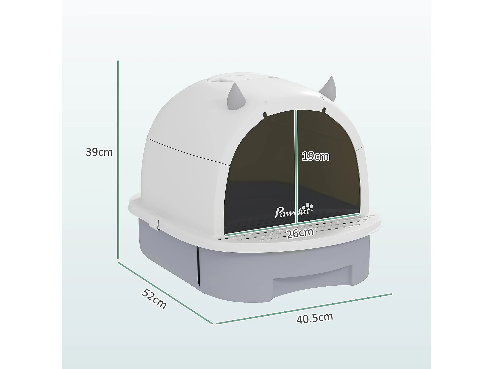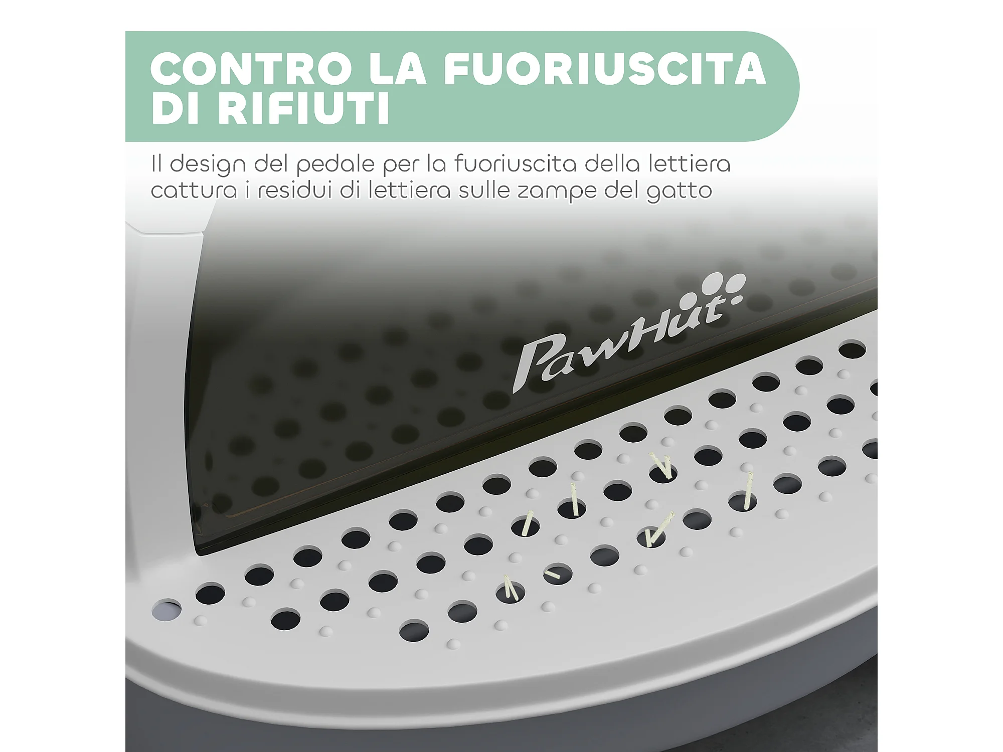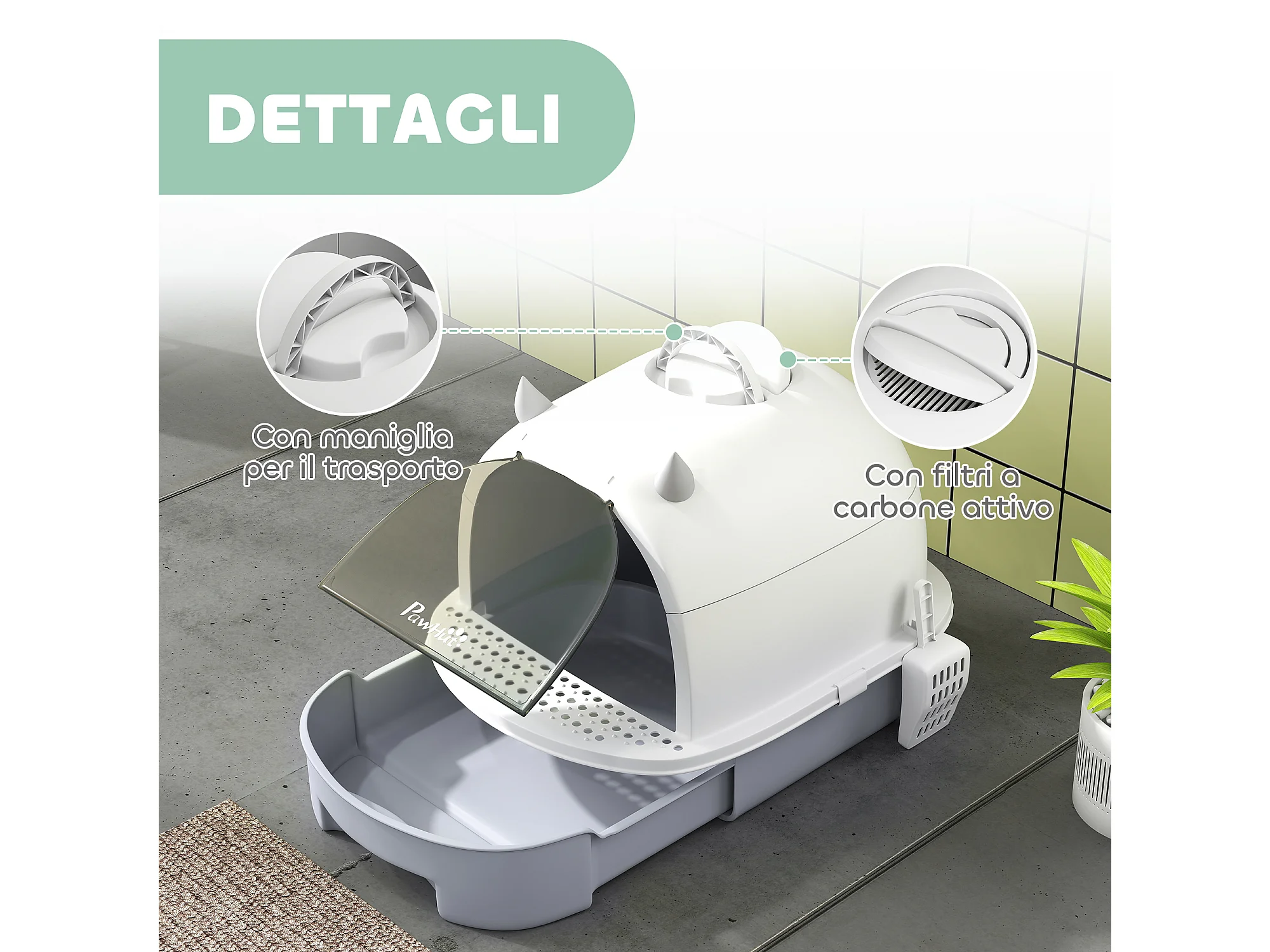 Lettiera per gatti chiusa con coperchio e gattaiola in pp grigio e bianco