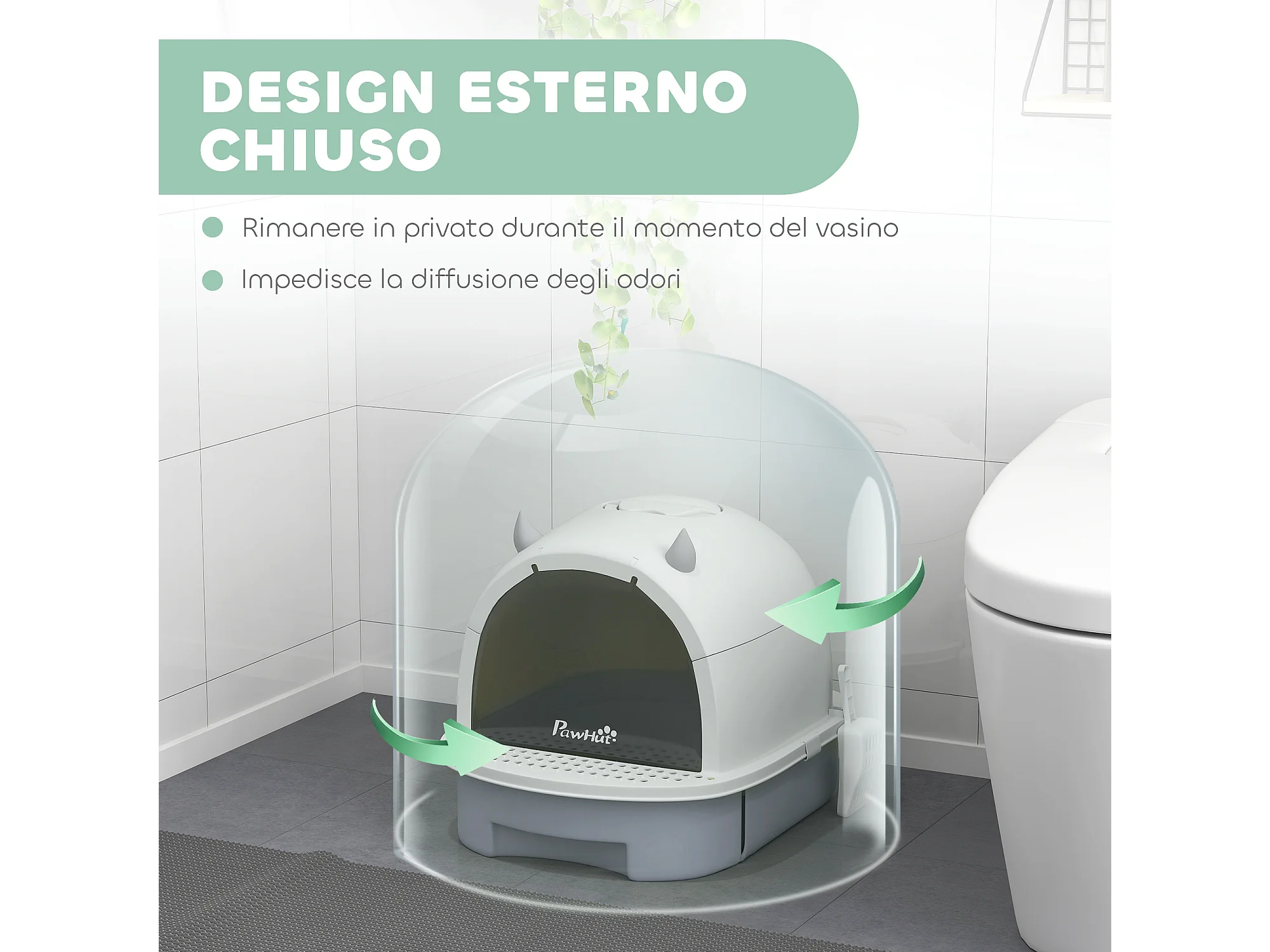 Lettiera per gatti chiusa con filtri paletta e vassoio rimovibile grigio