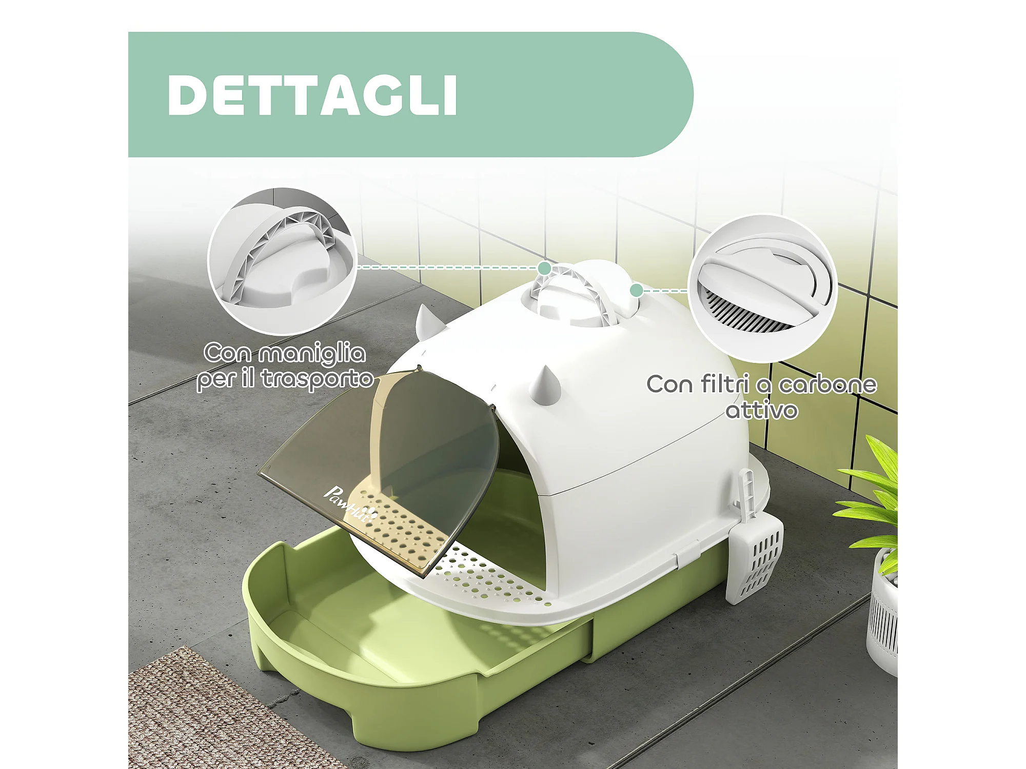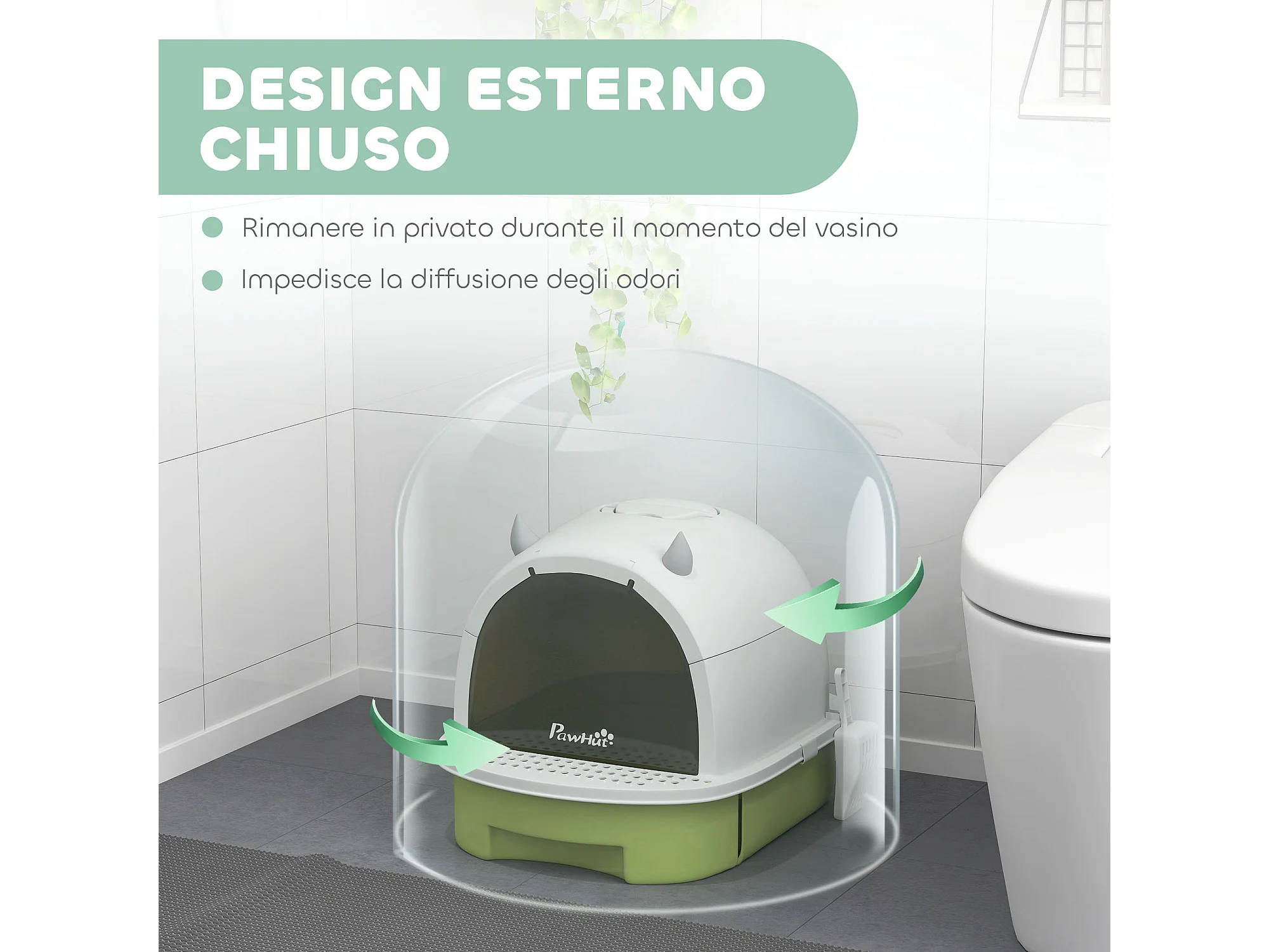 Lettiera per gatti chiusa con vassoio estraibile e paletta multicolore