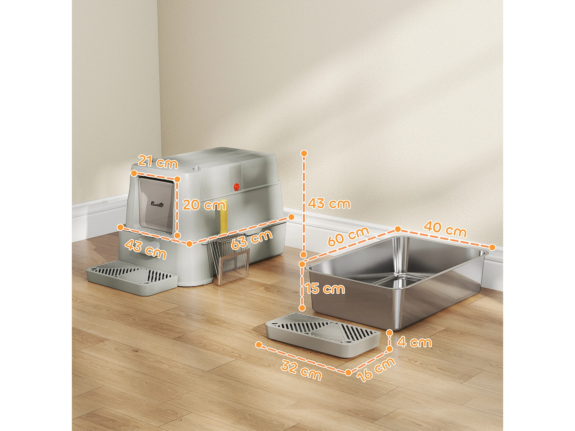 Lettiera per gatti chiusa con paletta e vassoio estraibile grigio