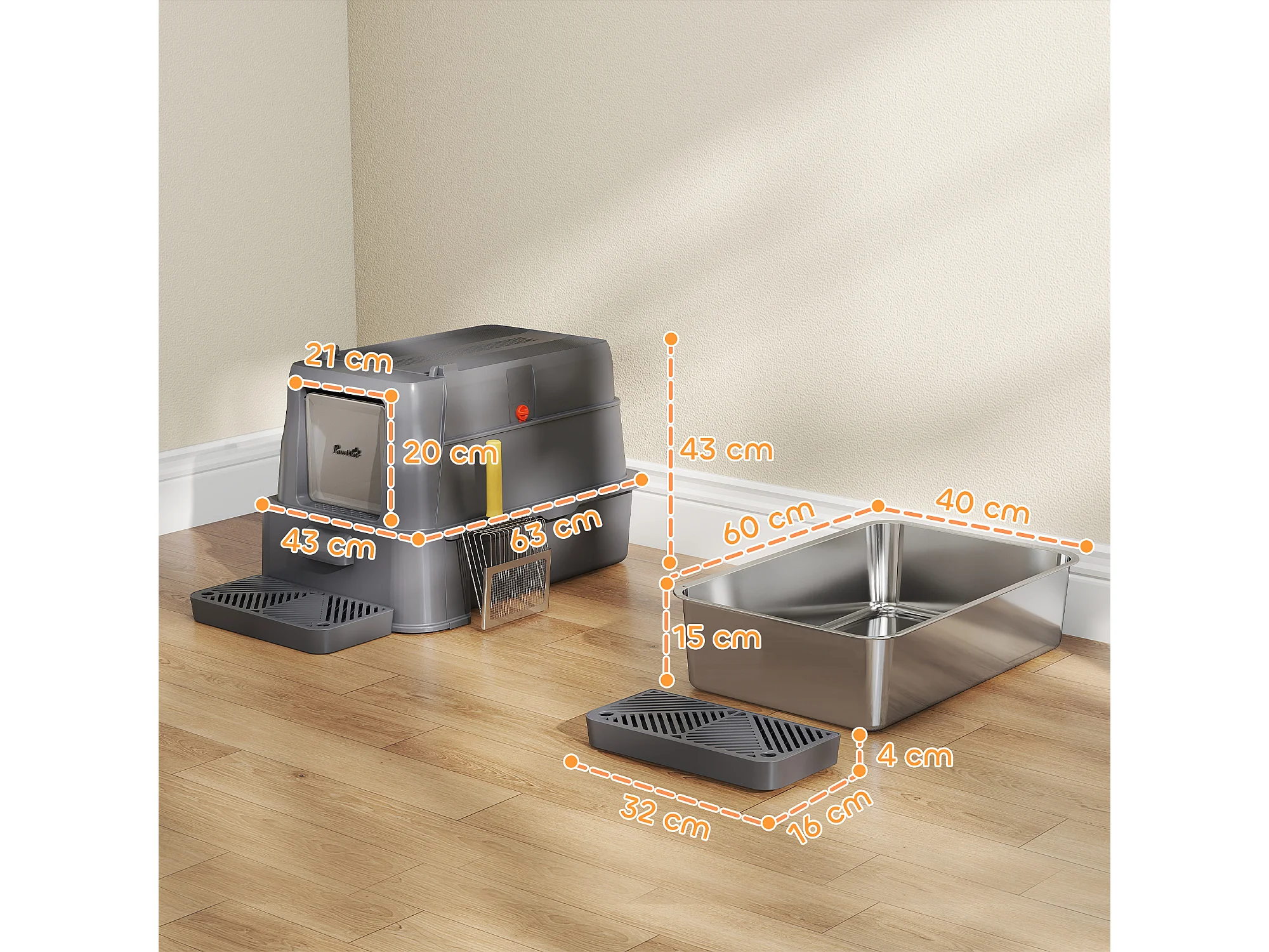 Lettiera per gatti chiusa da 80l con vassoio estraibile grigio scuro