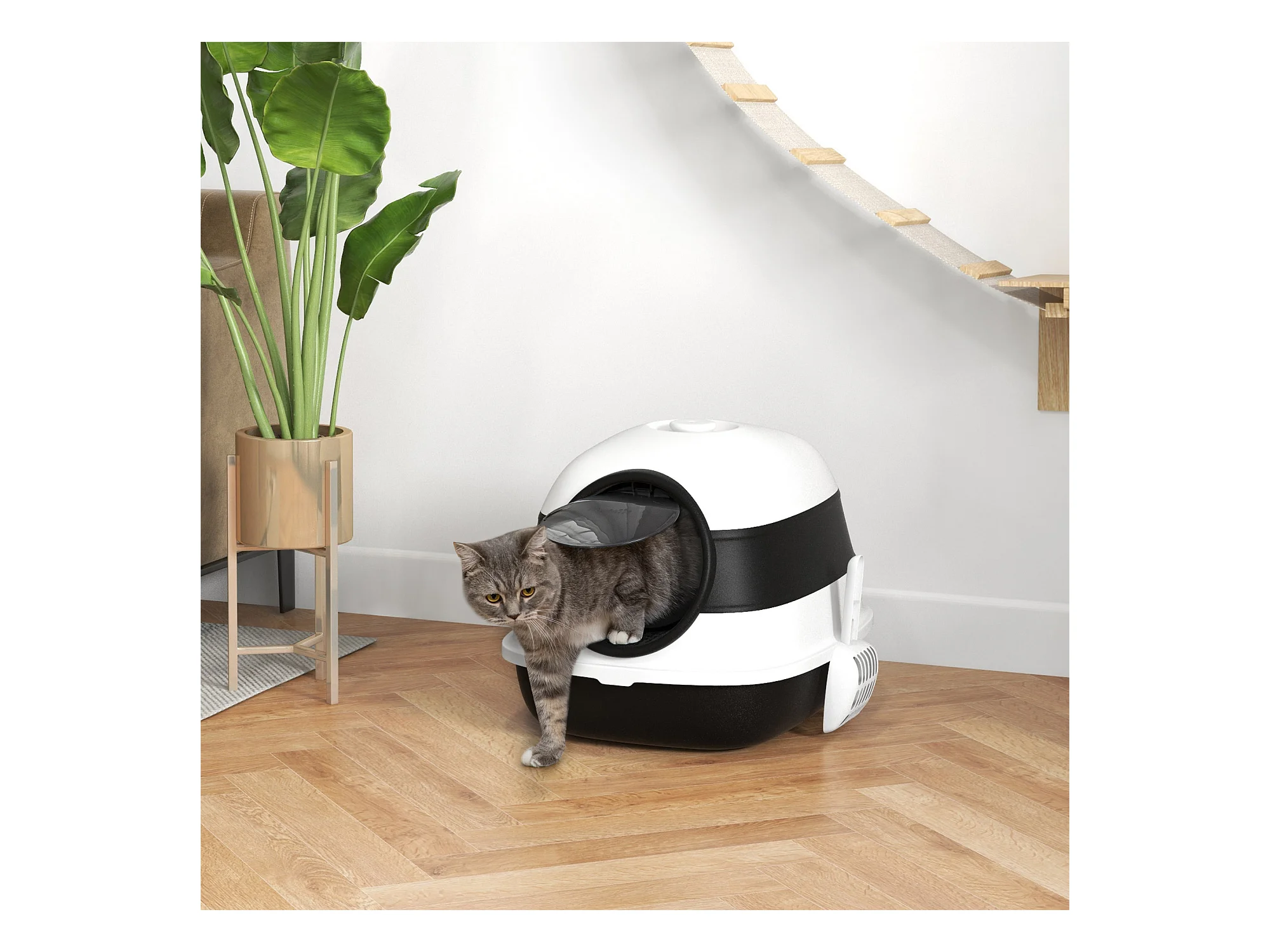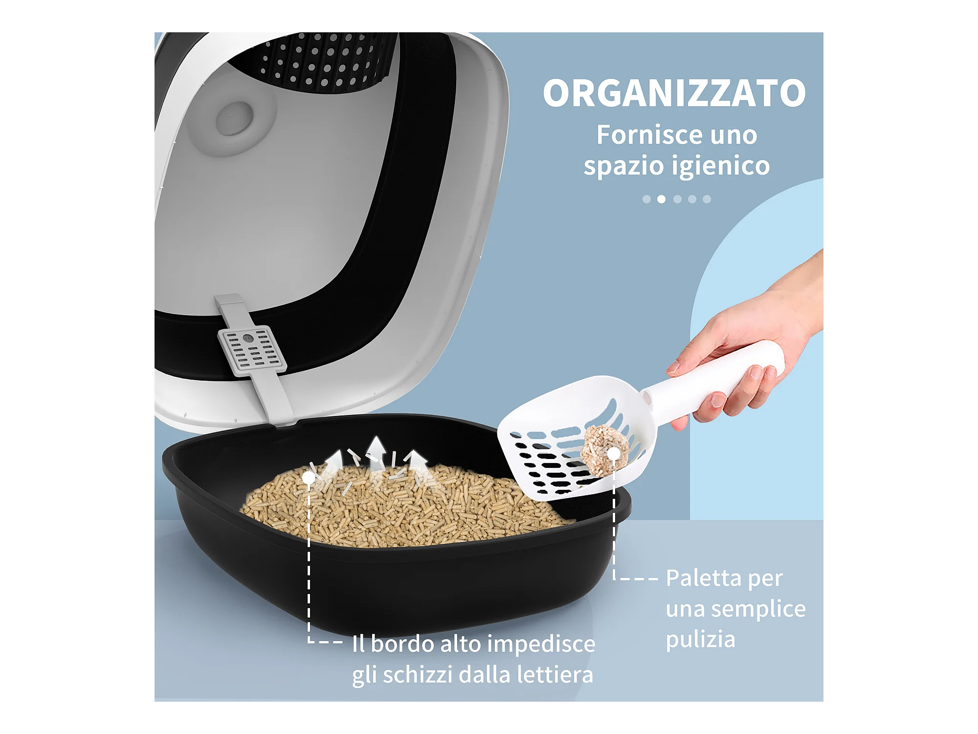 Lettiera per gatti con coperchio pieghevole con paletta e deodorante nero
