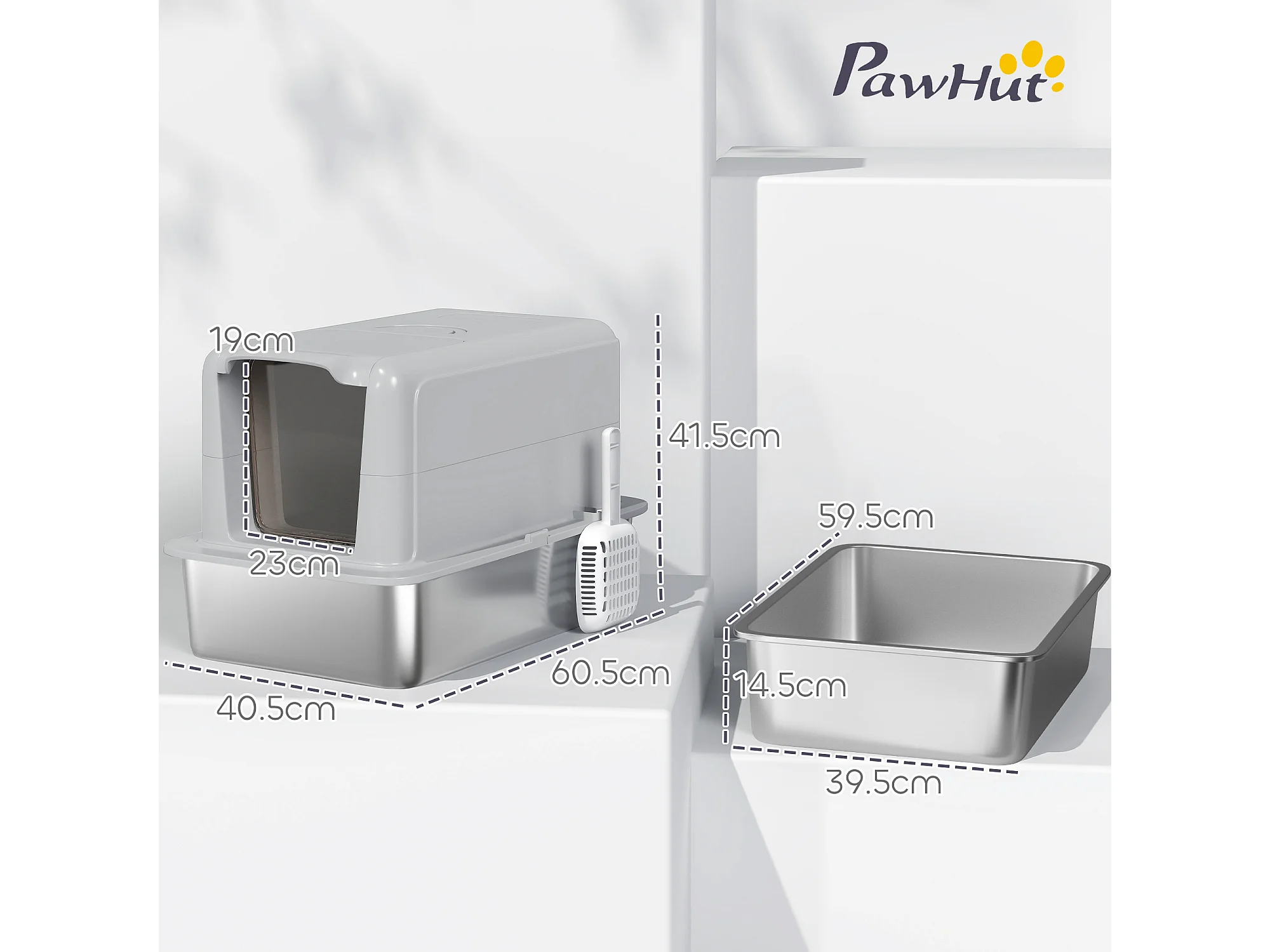Lettiera per gatti chiusa con vassoio estraibile e paletta grigio