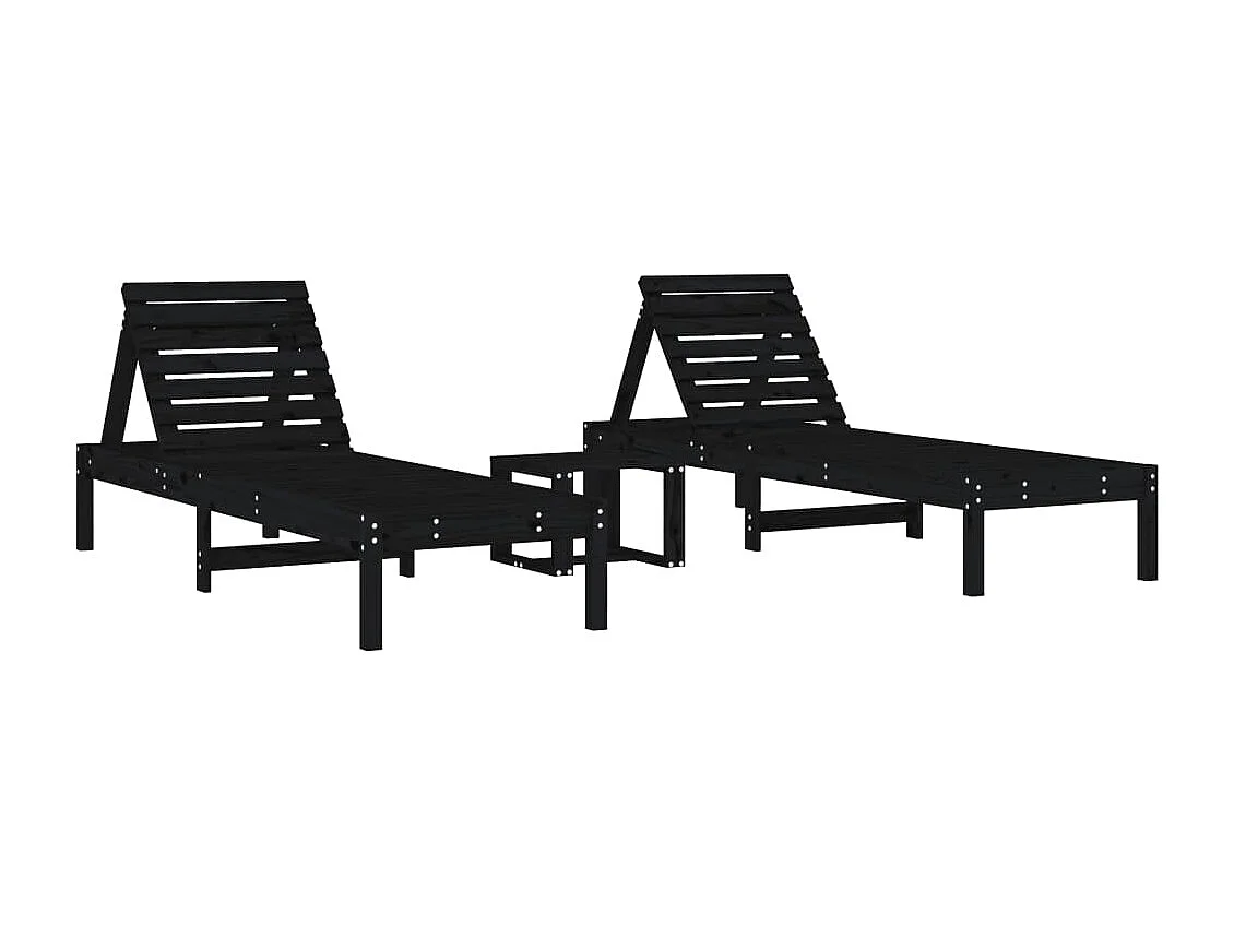 Lettini con Tavolino 2 pz Neri in Legno Massello di Pino