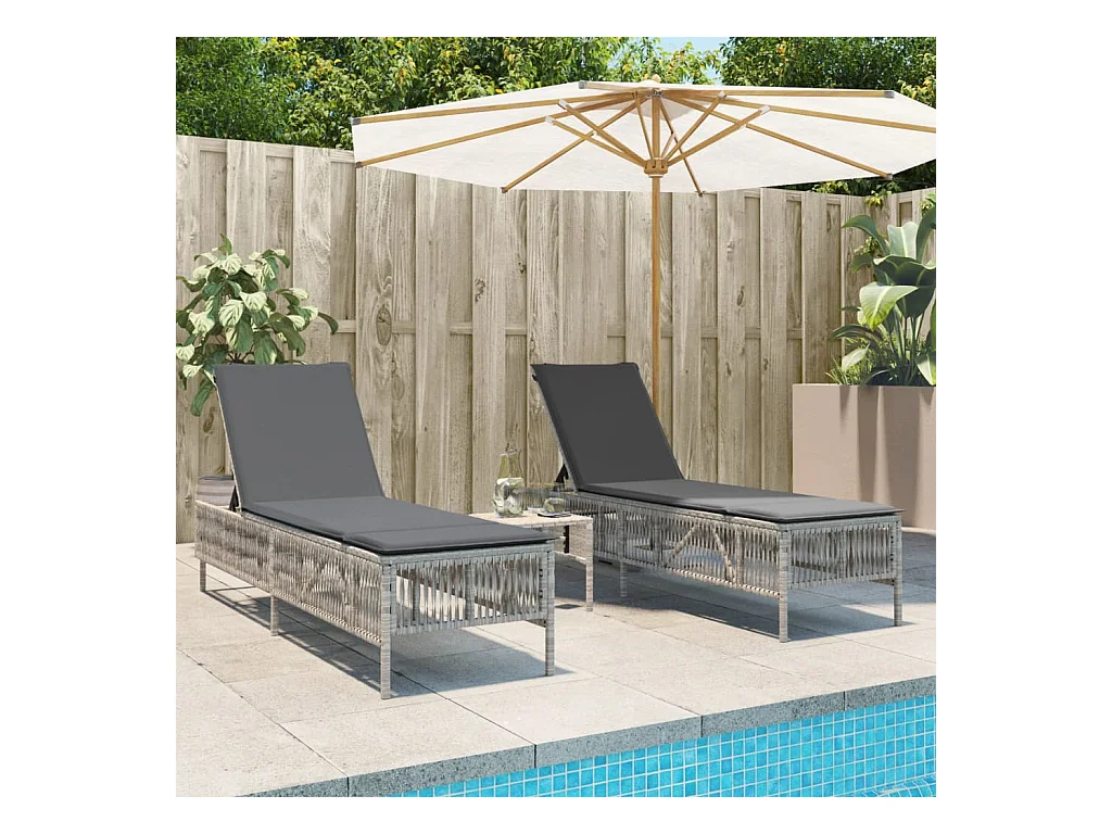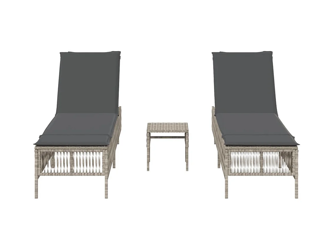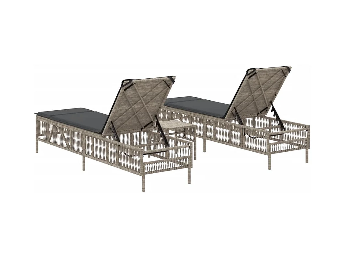 Lettini Prendisole 2pz con Tavolino Grigio Chiaro in Polyrattan