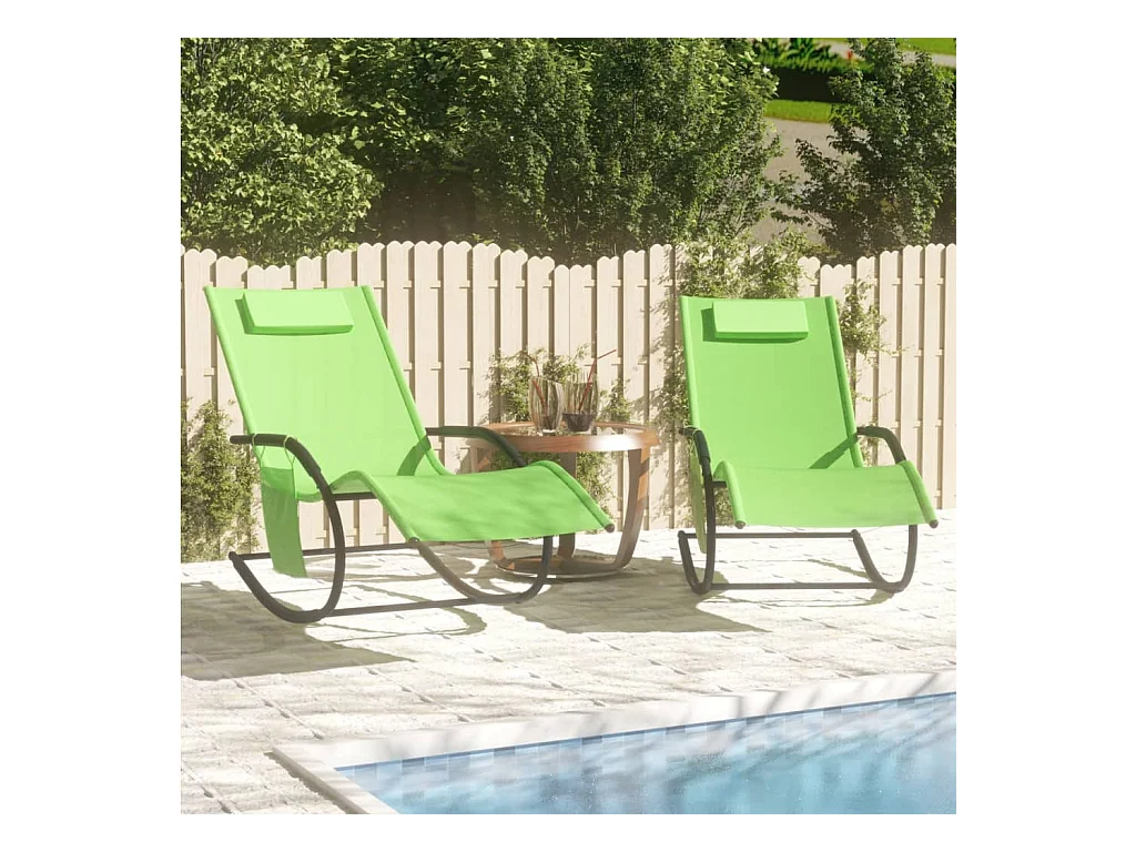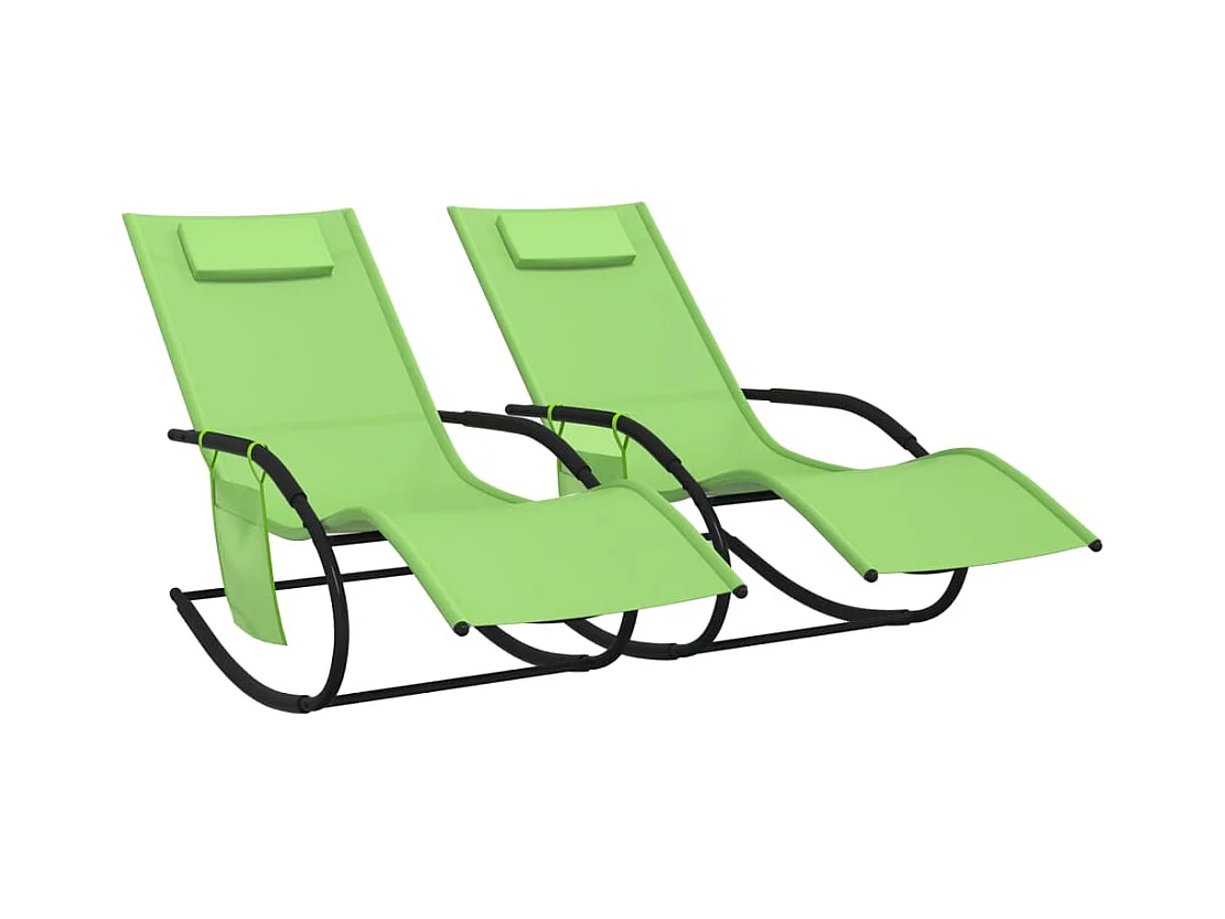 Lettini Prendisole a Dondolo 2 pz in Acciaio e Textilene Verde
