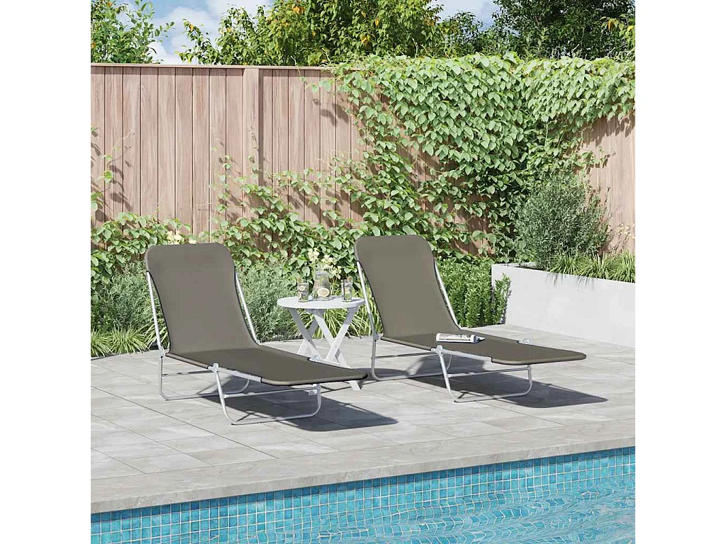 Lettini Prendisole Pieghevoli 2 pz in Acciaio e Tessuto Grigio