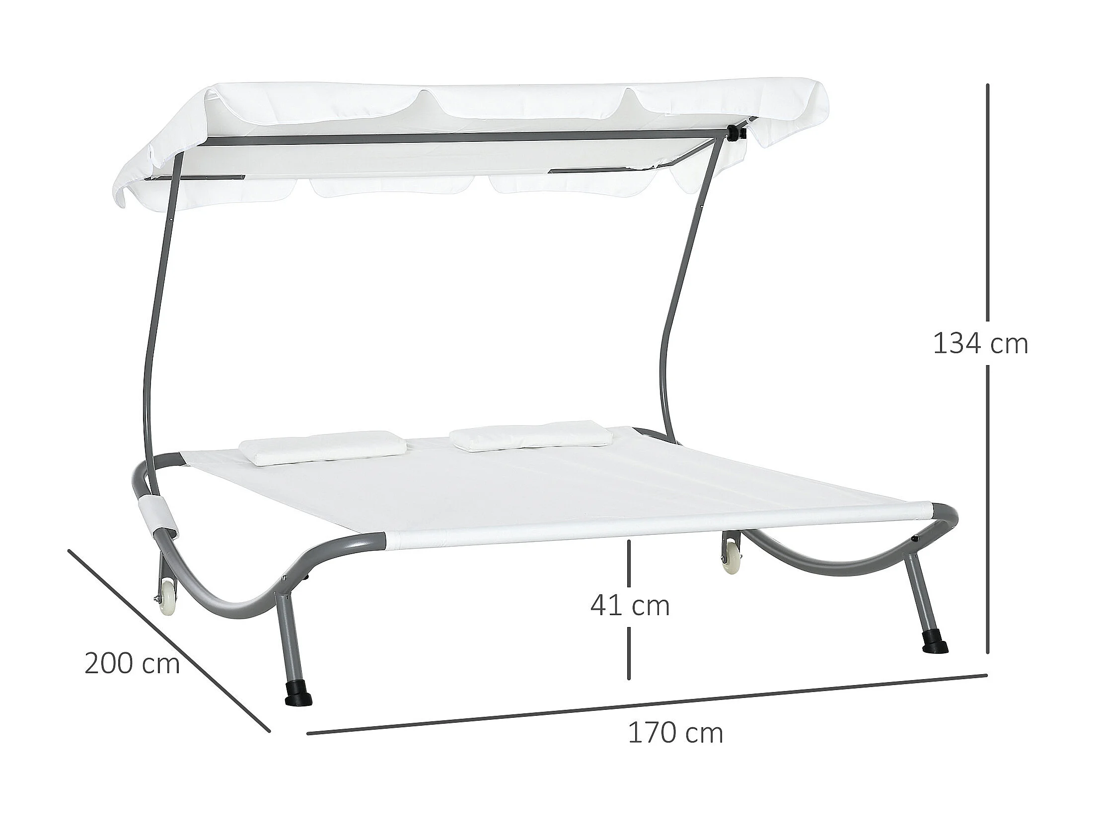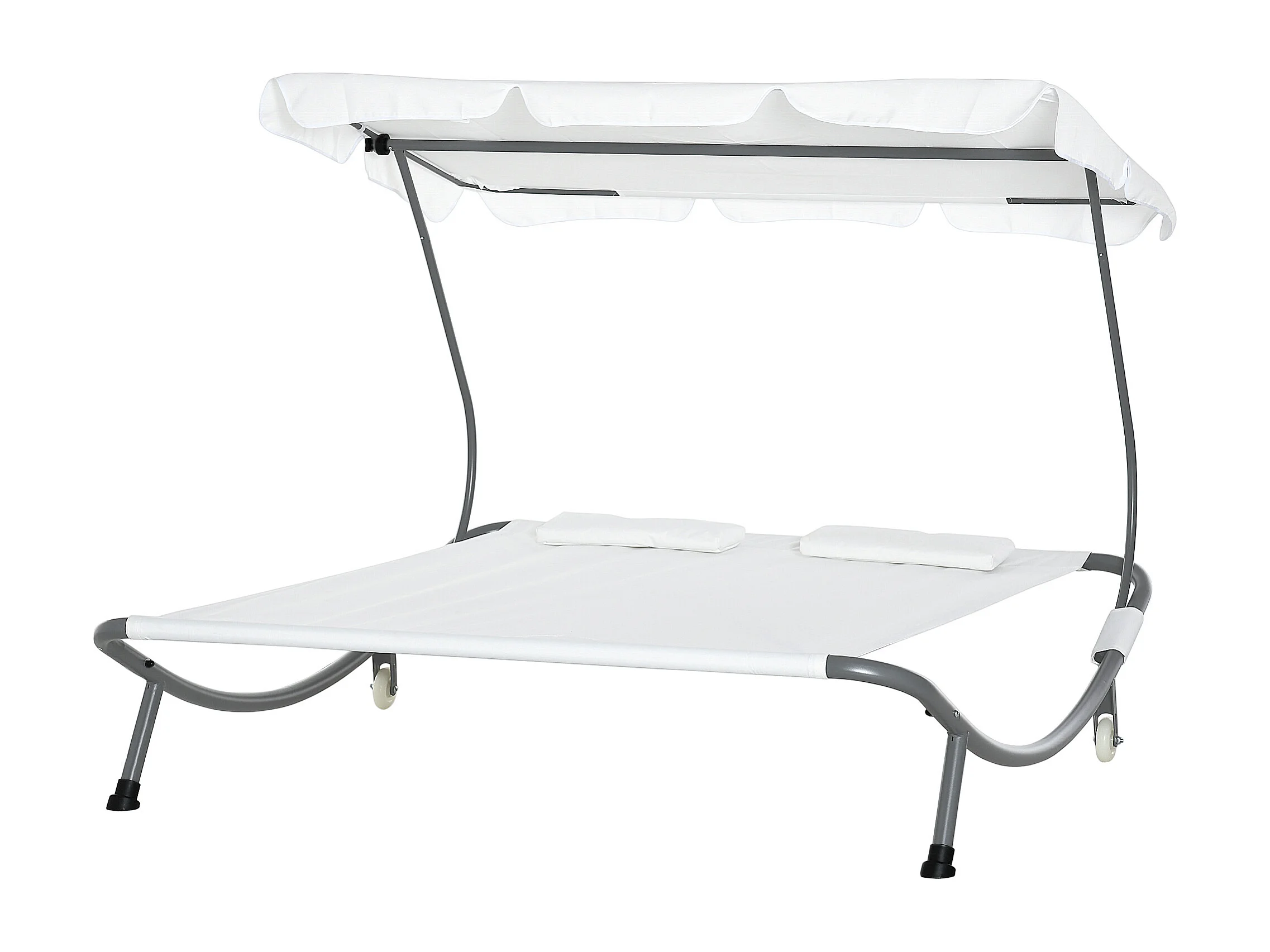 Lettino a 2 posti con tettuccio regolabile e cuscini crema