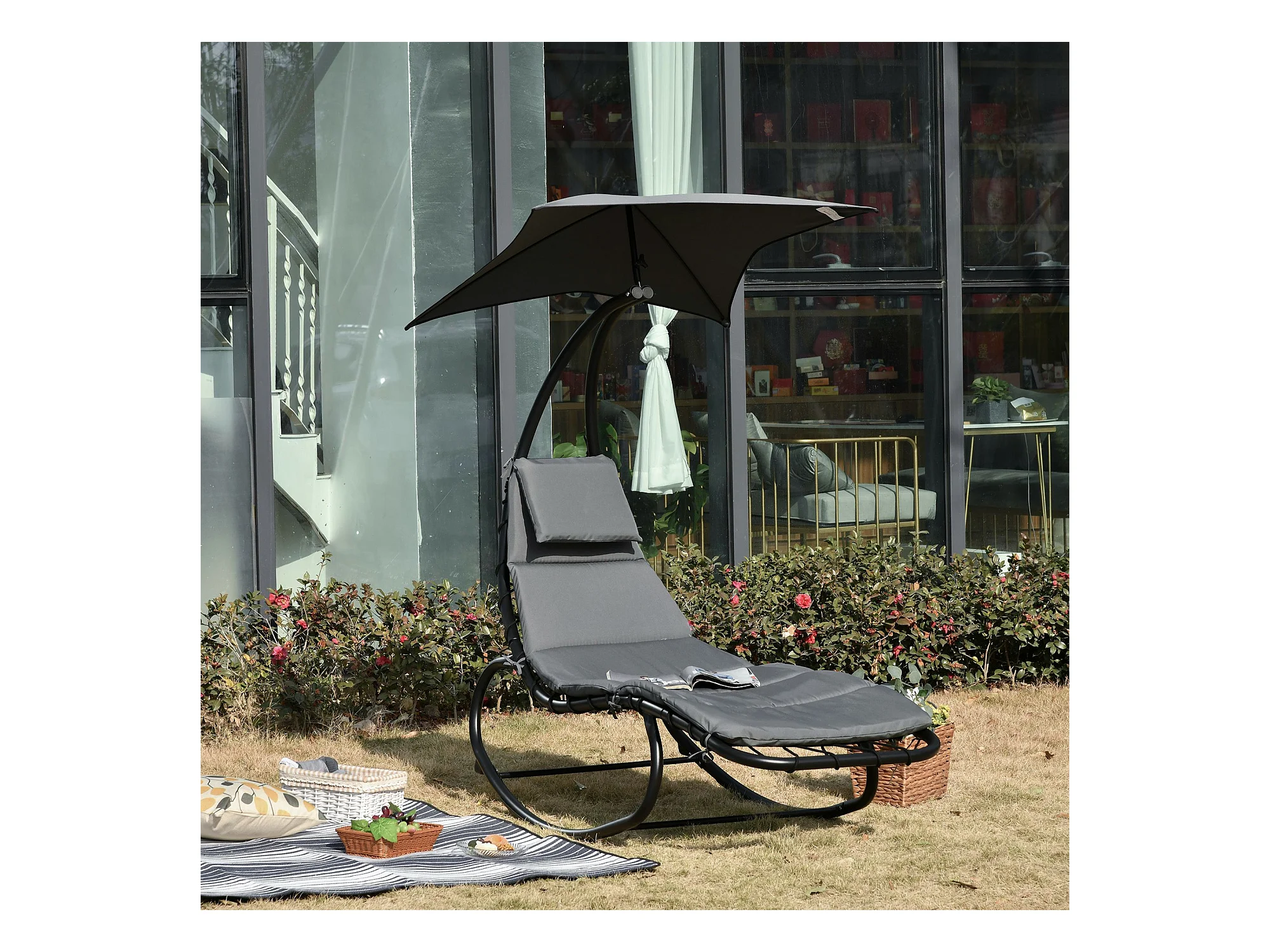 Lettino a dondolo da giardino sdraio con tettuccio metallo grigio