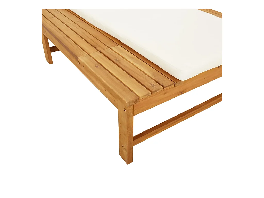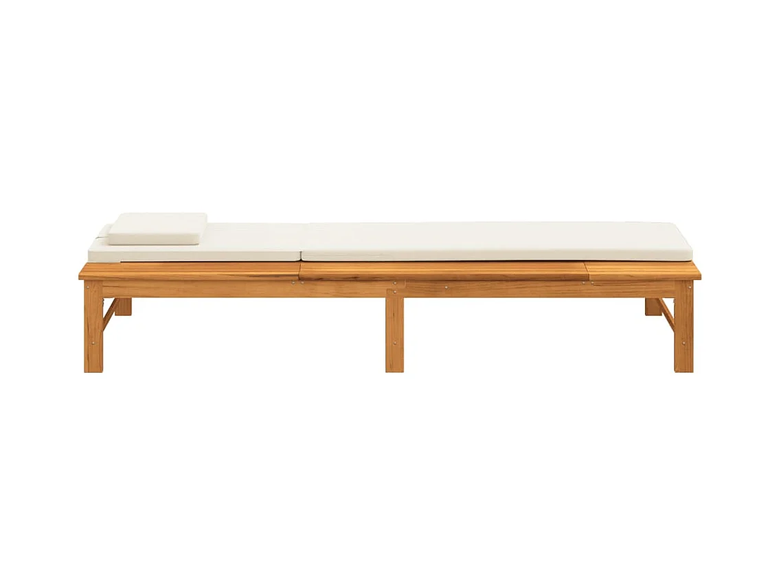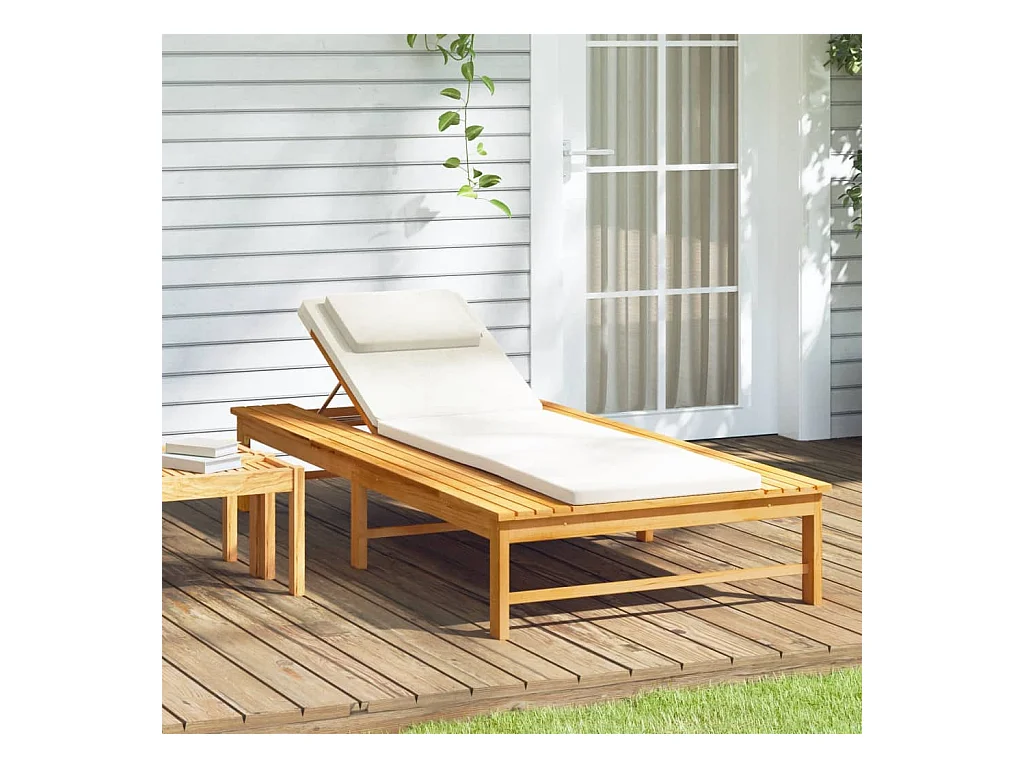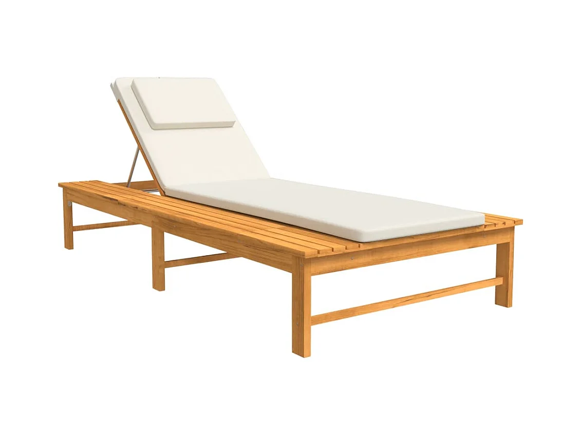 Lettino Sole Pieghevole Cuscino Massello Acacia Bianco Crema