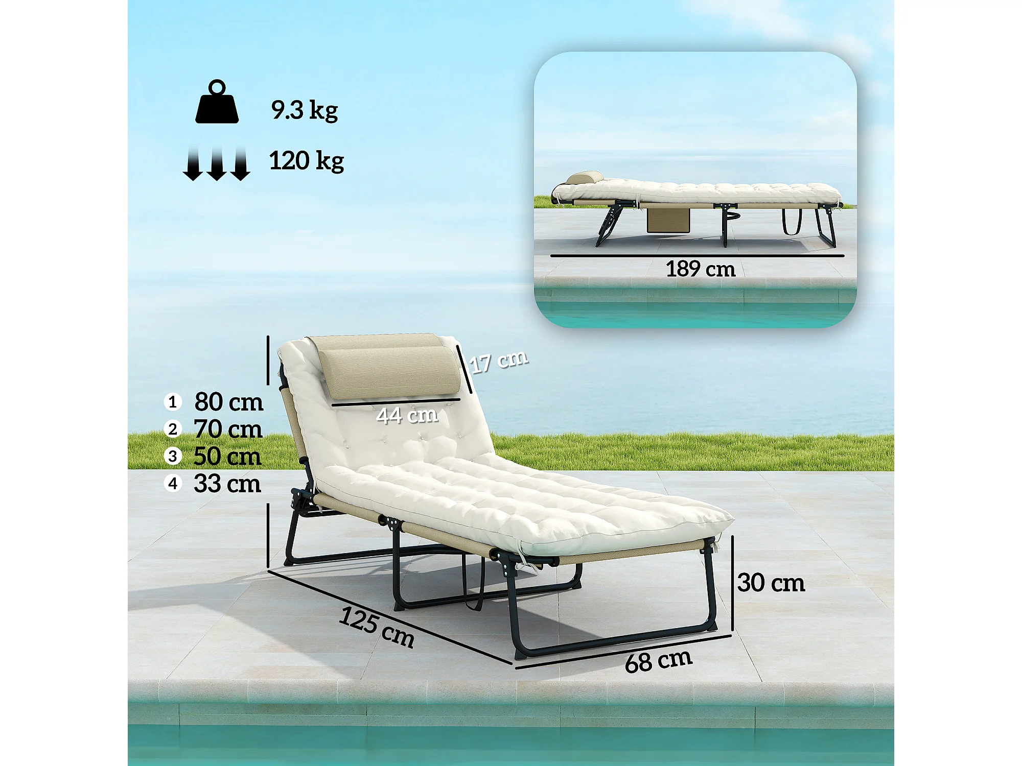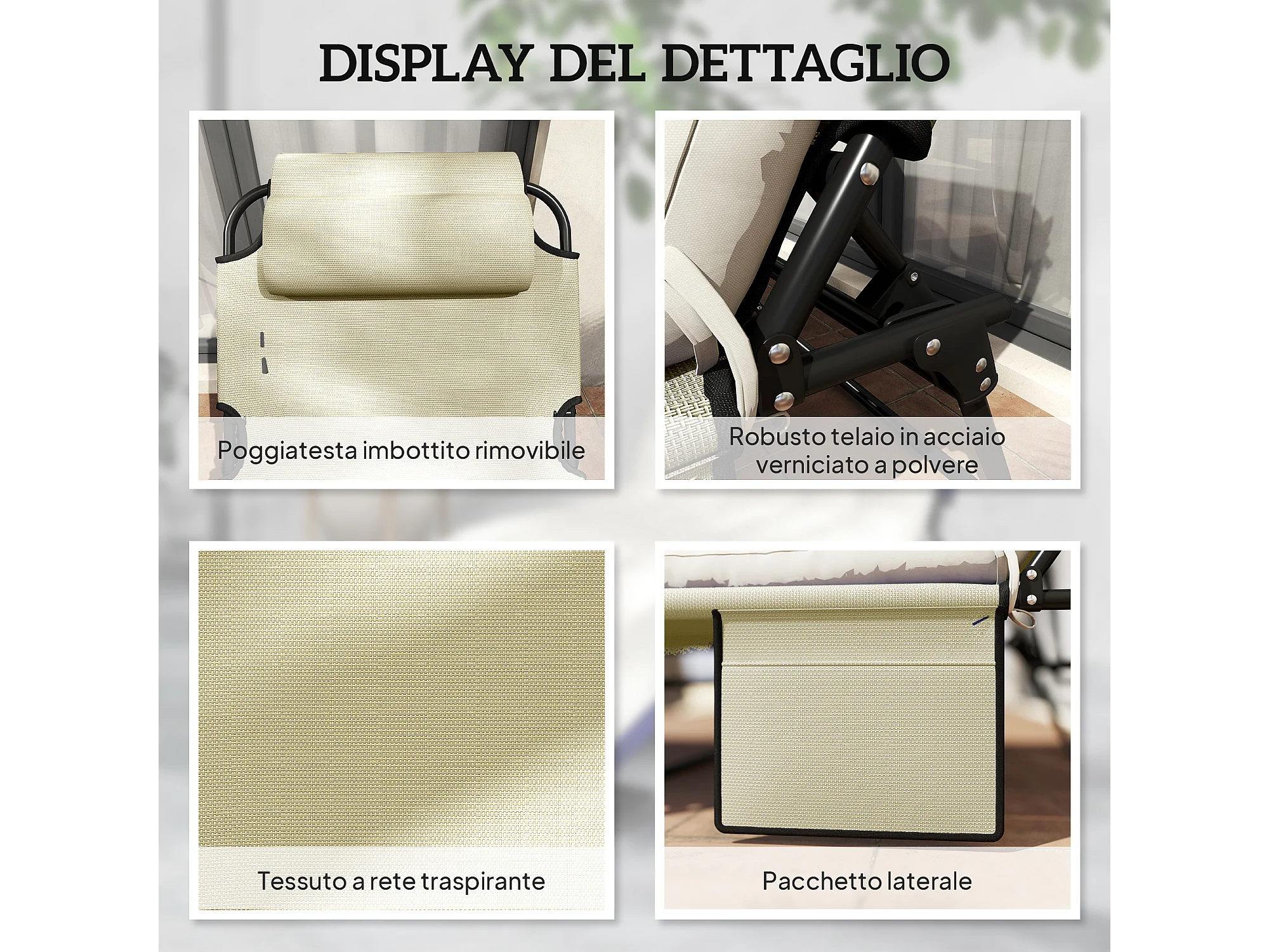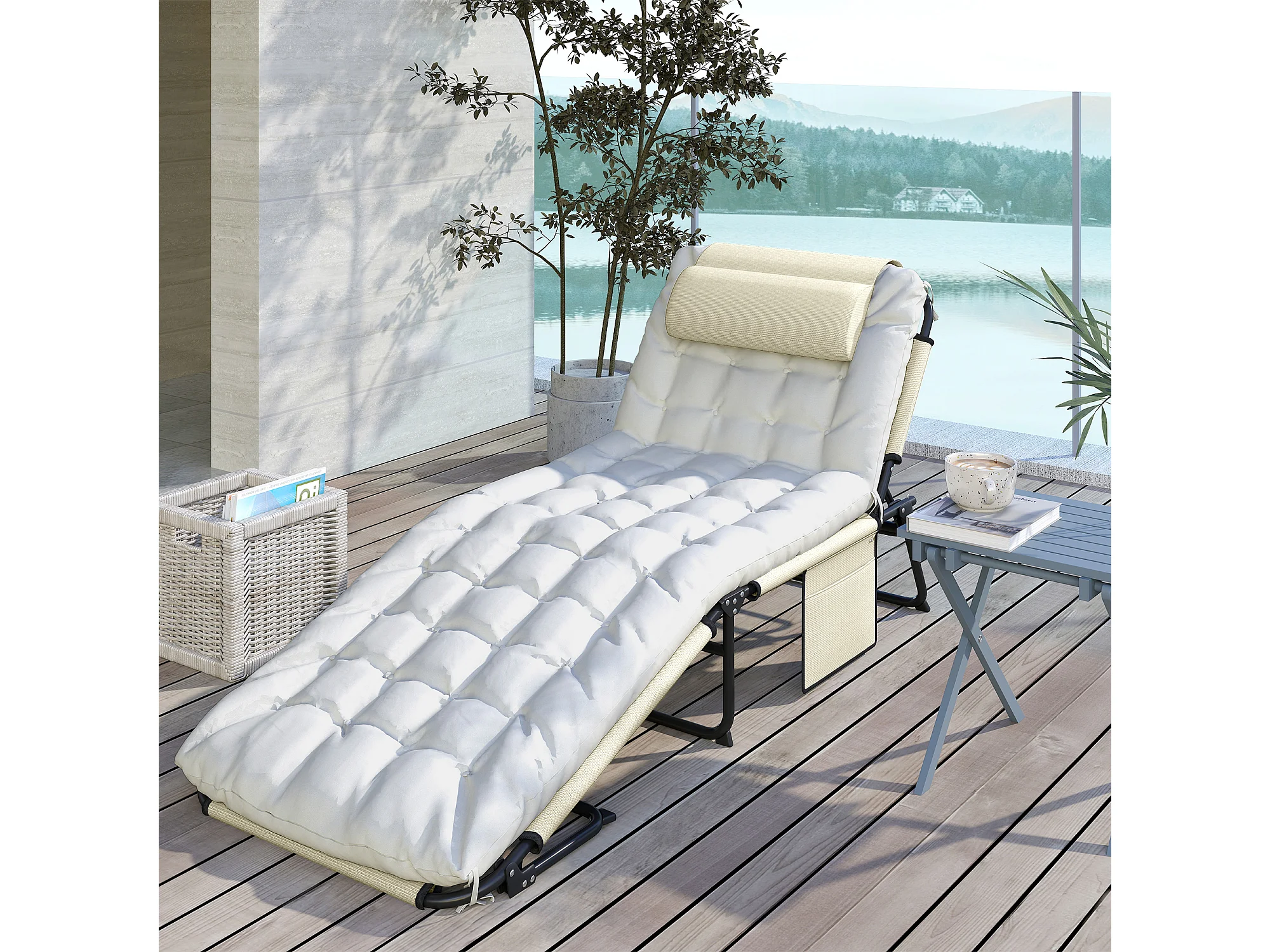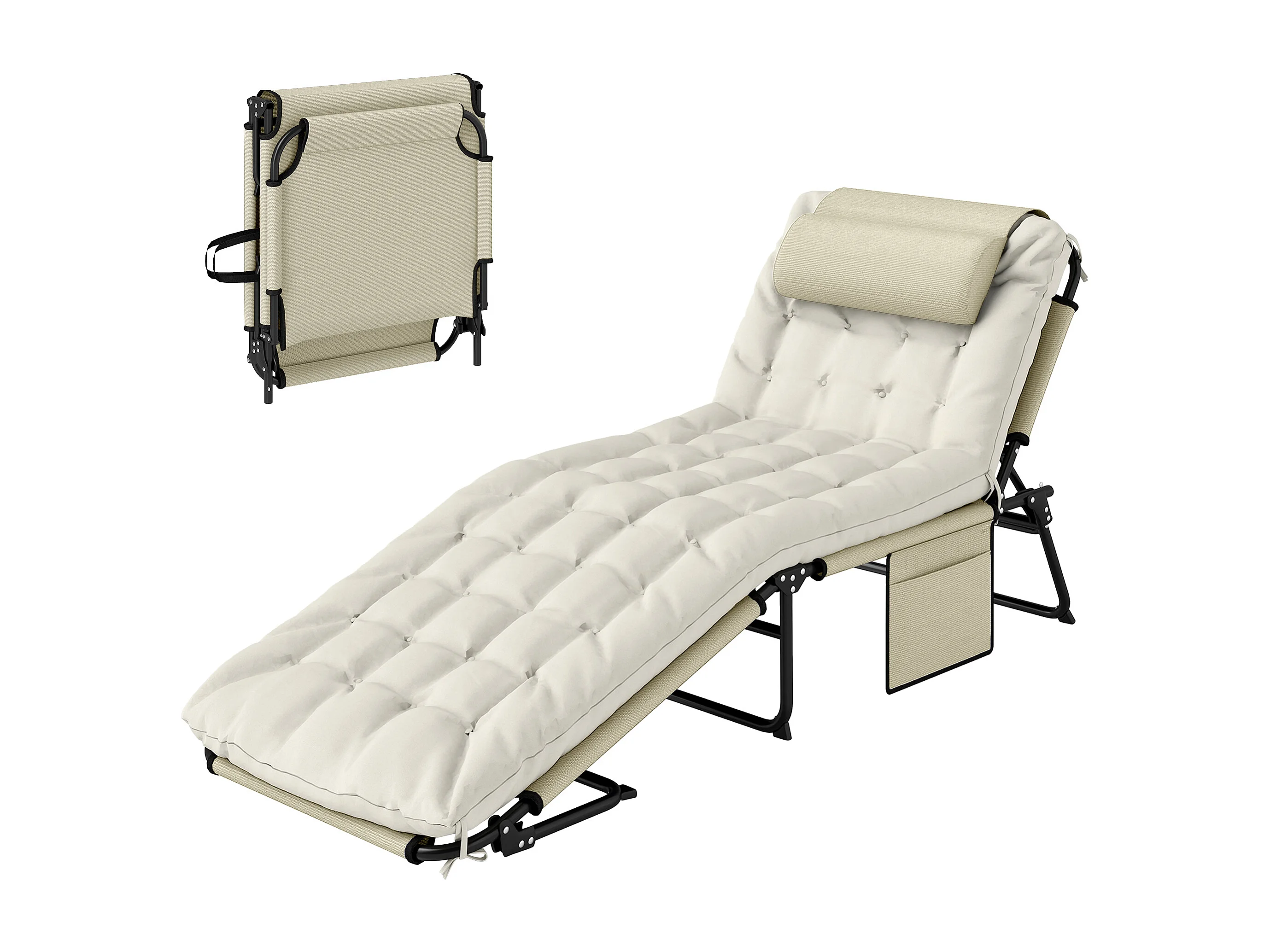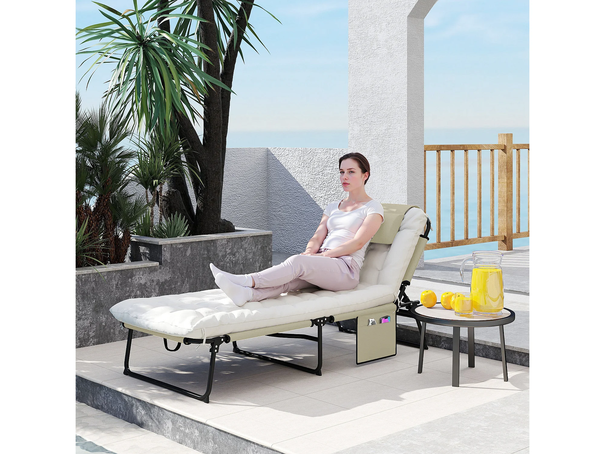 Lettino da giardino pieghevole e reclinabile con tasca laterale beige