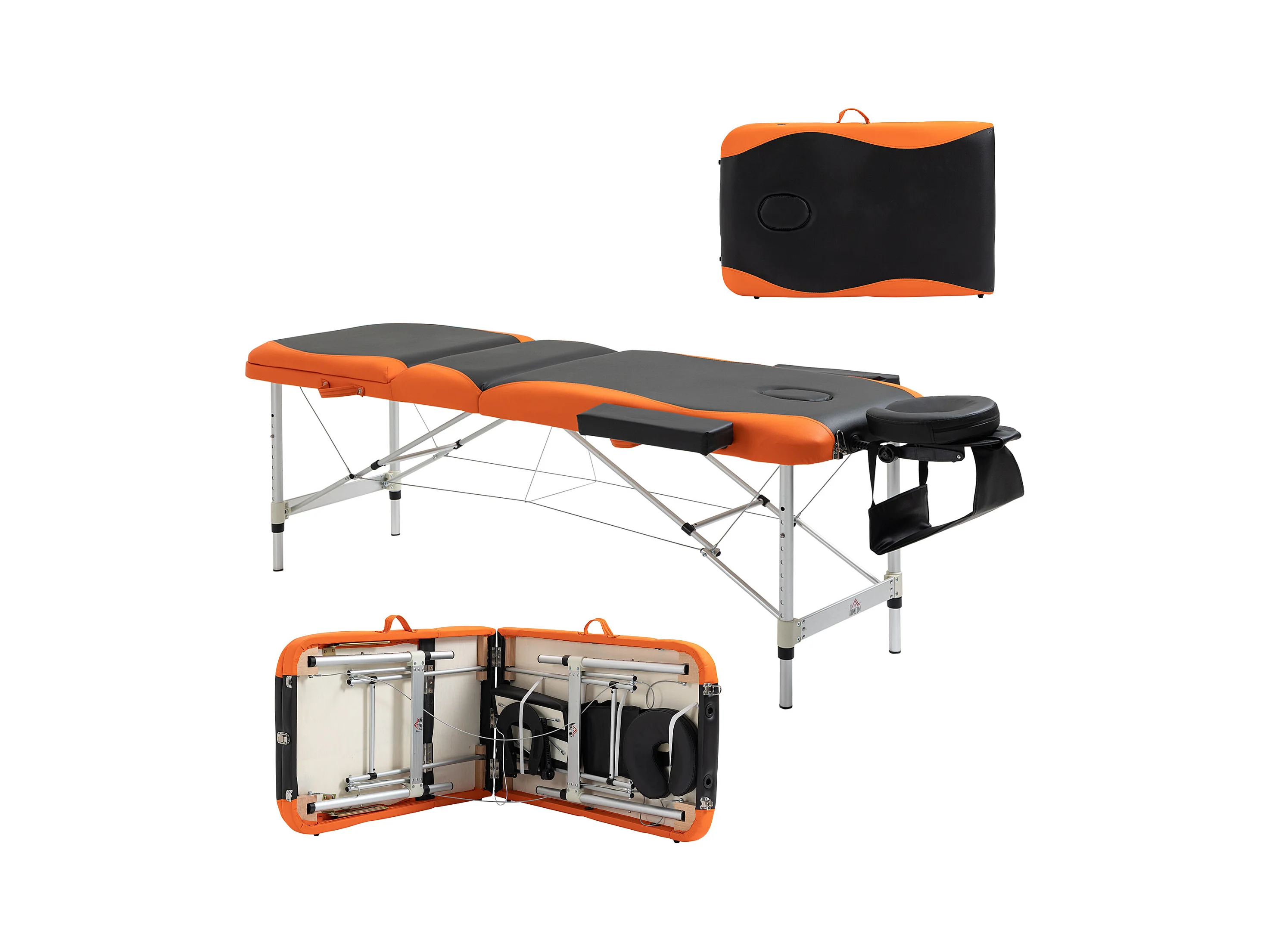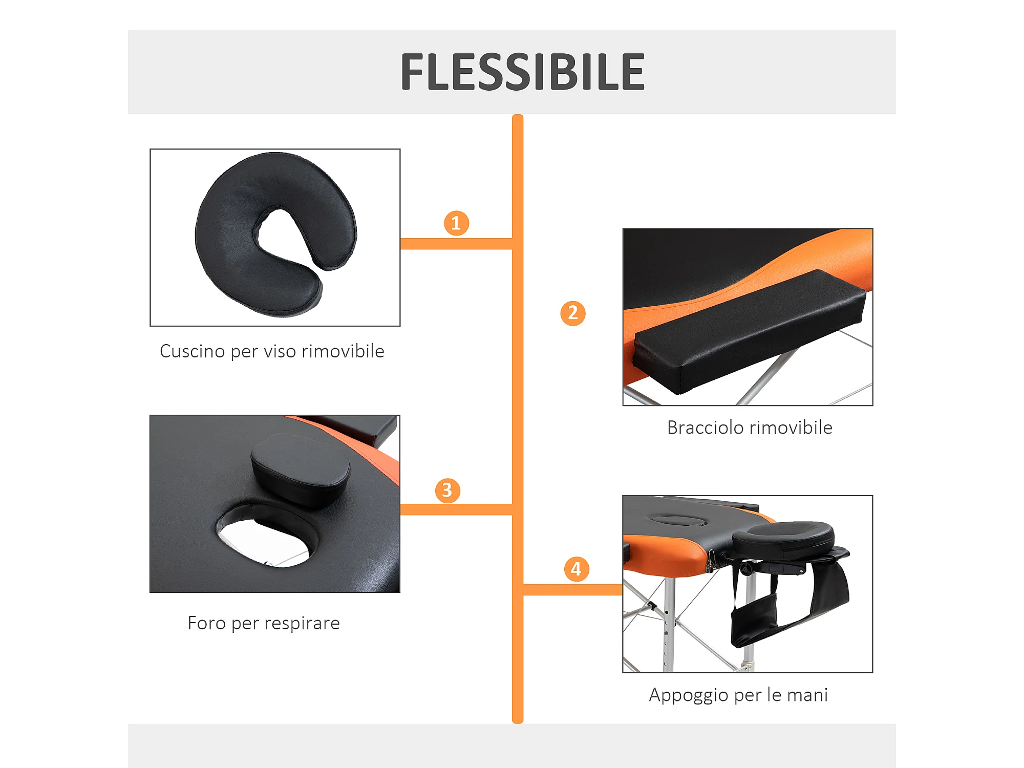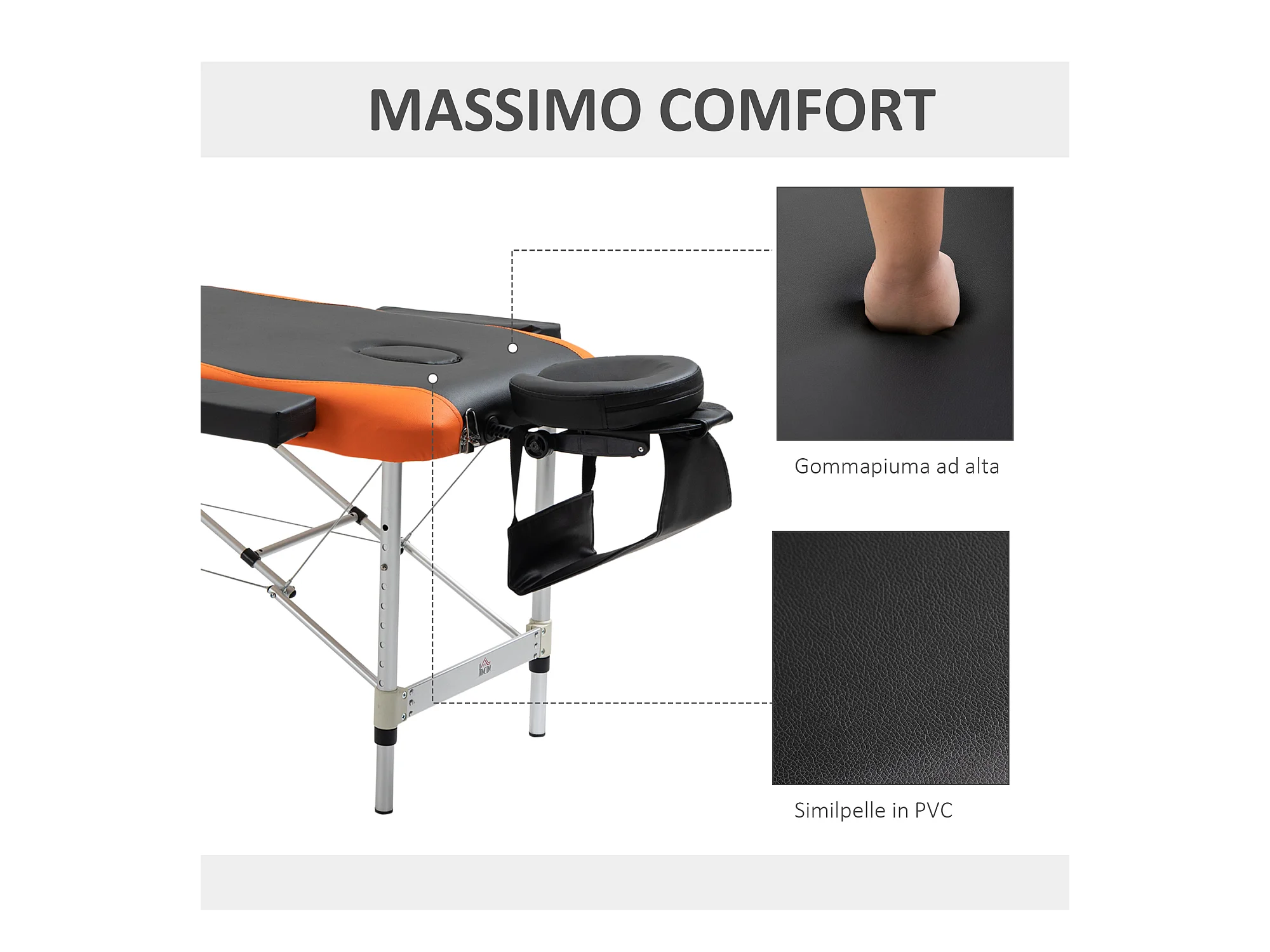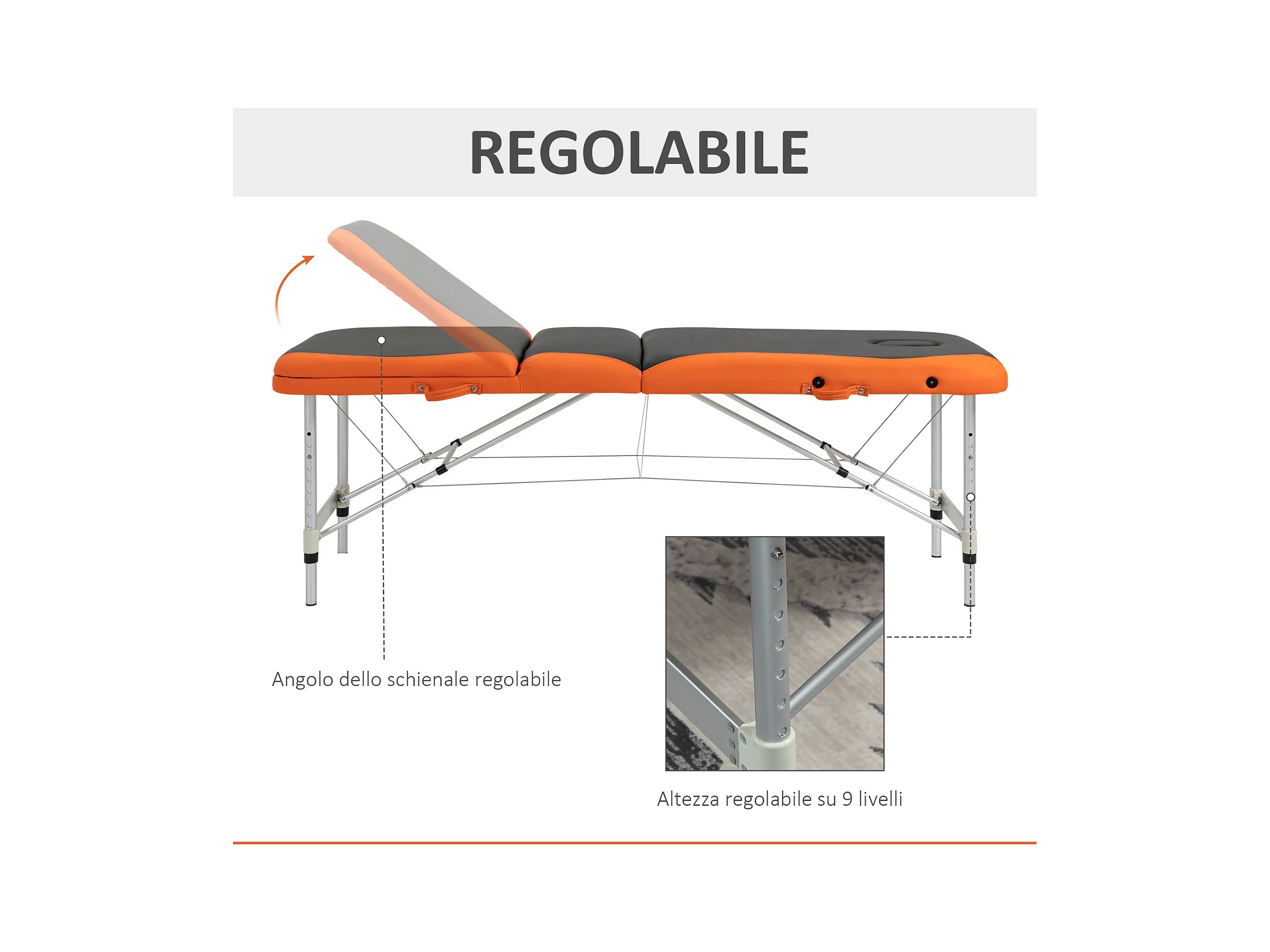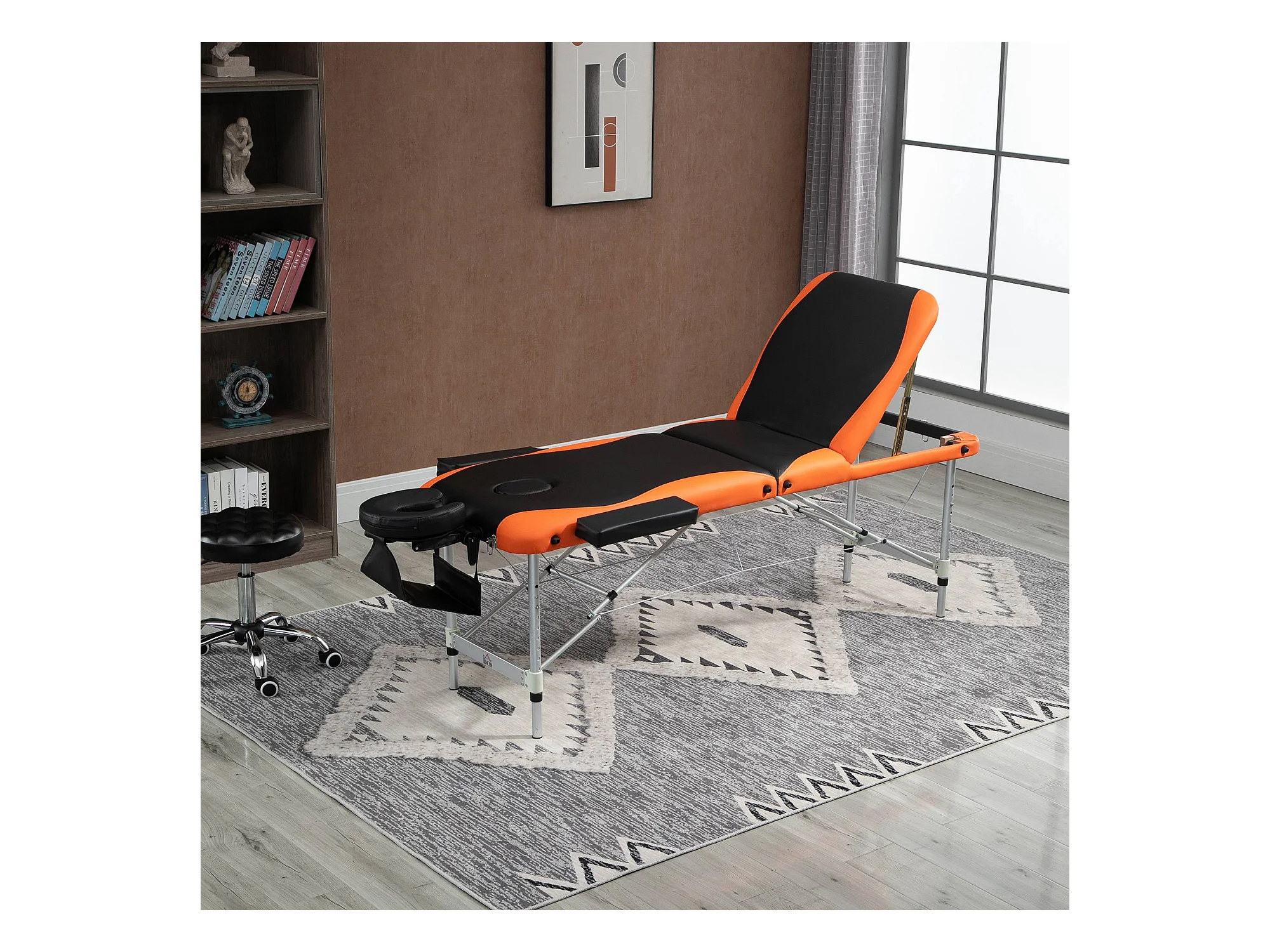 Lettino da massaggio pieghevole ad altezza regolabile, nero e arancione