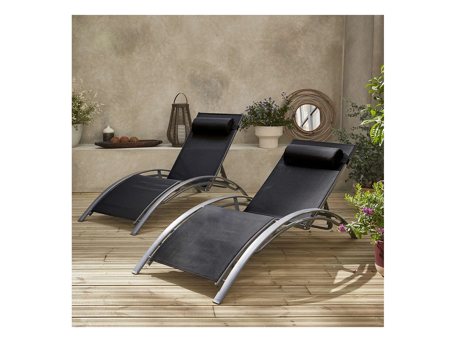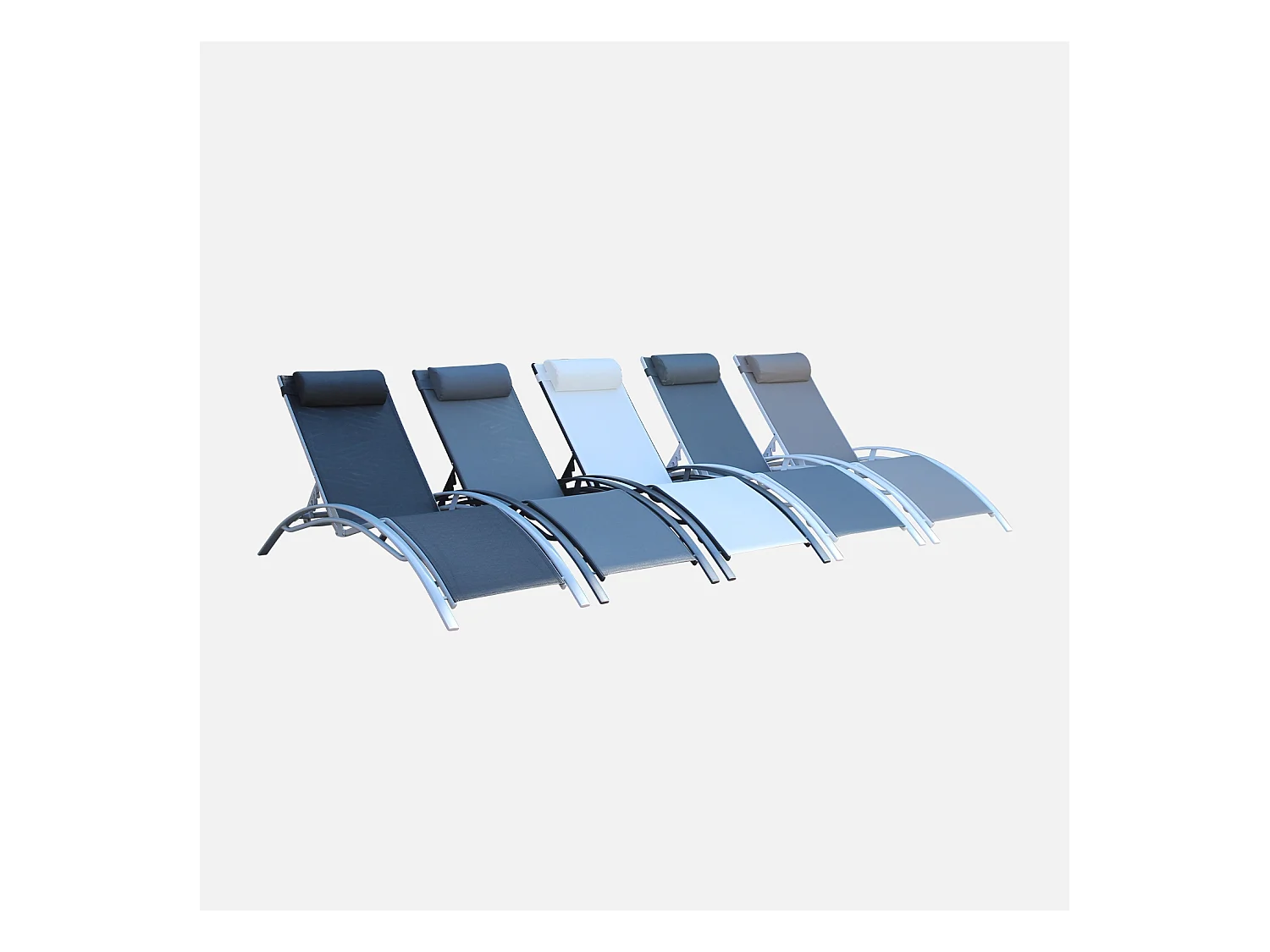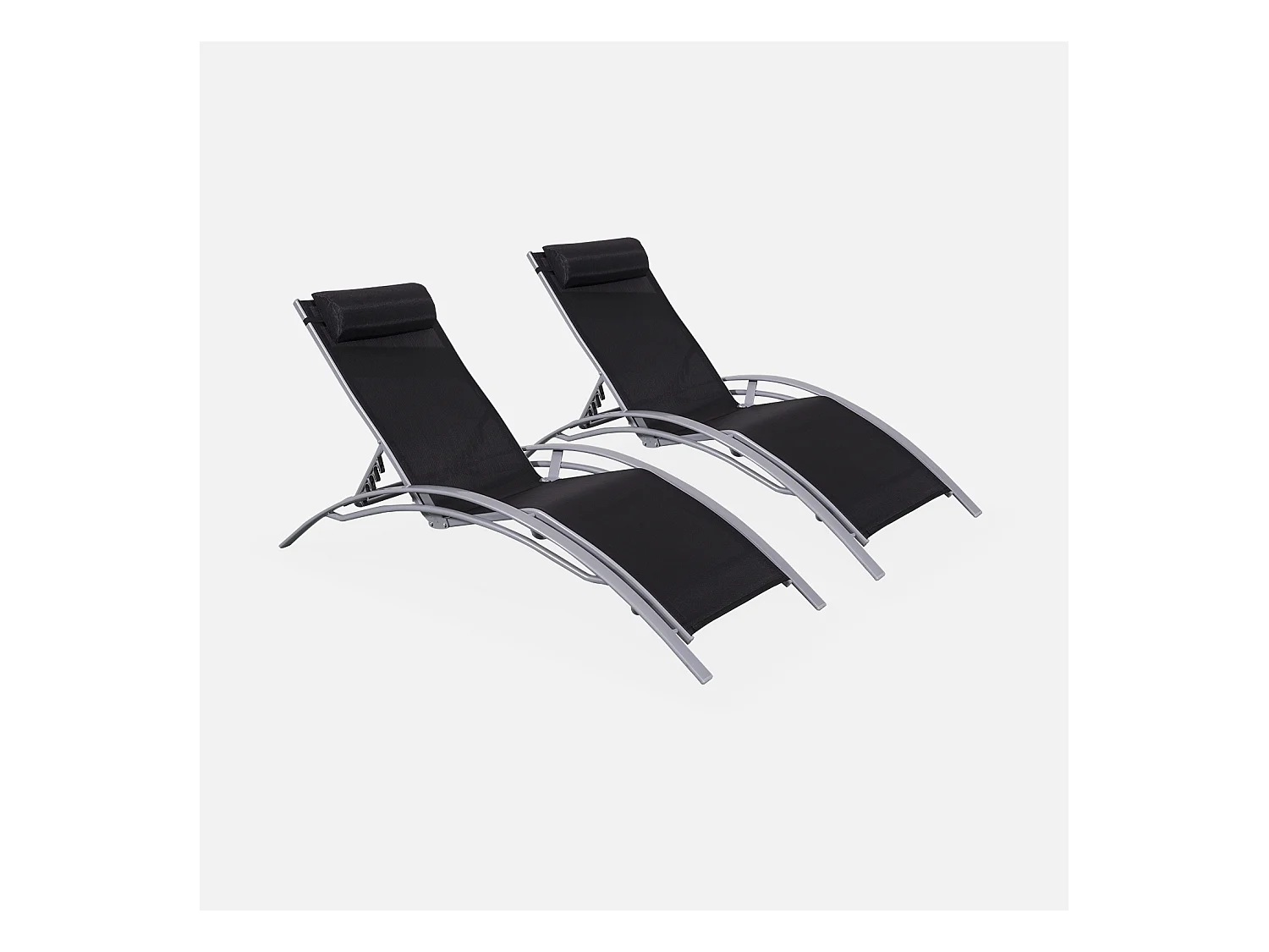 Set di 2 lettini prendisole in alluminio textilene, multiposizione,