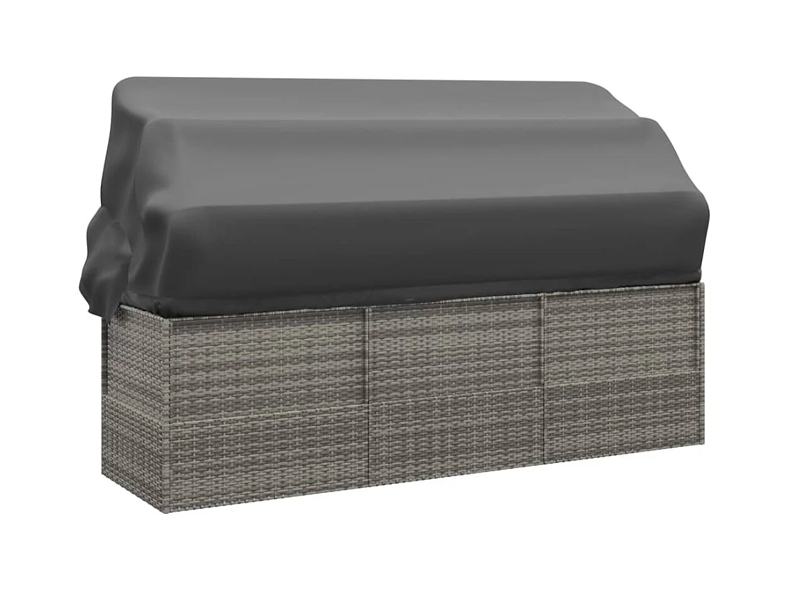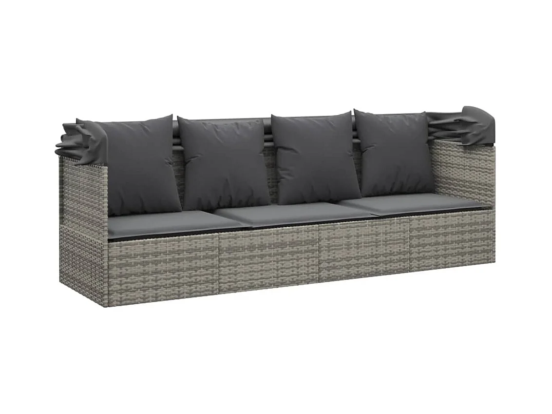 Lettino lounge da esterno con tetto e cuscini in resina intrecciata grigia 02_0012020