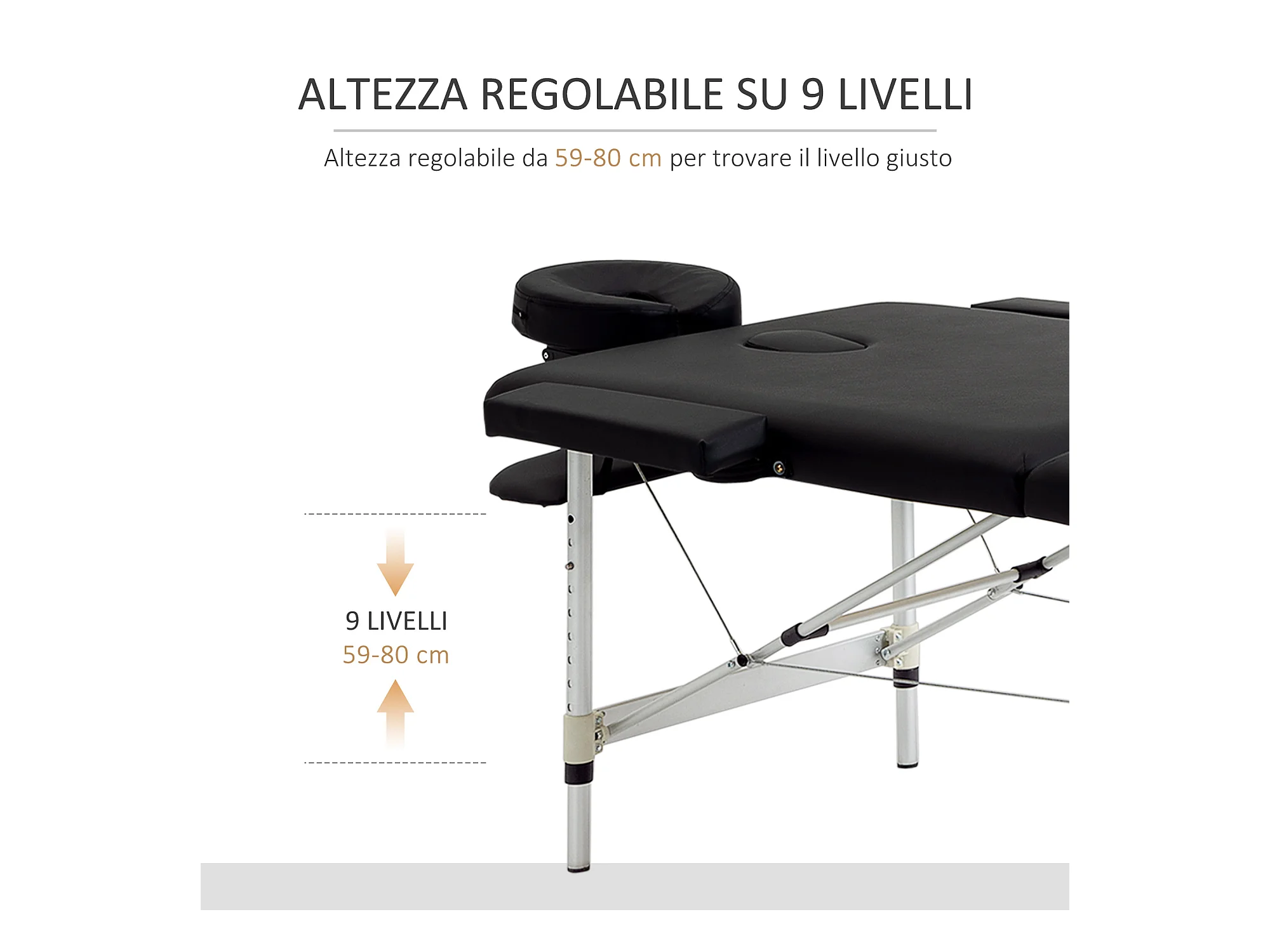 Lettino Massaggio Pieghevole Professionale Altezza Regolabile, Nero