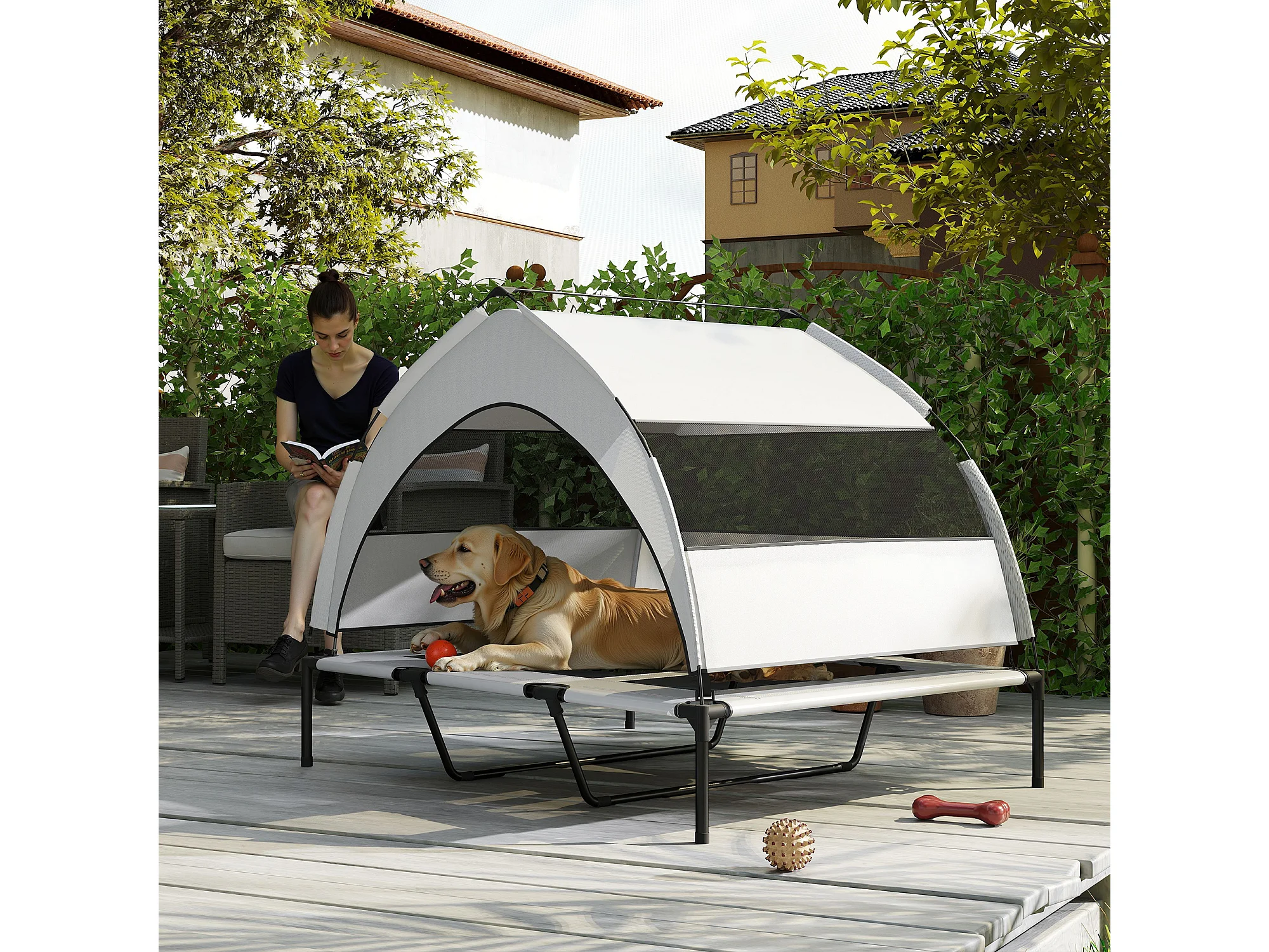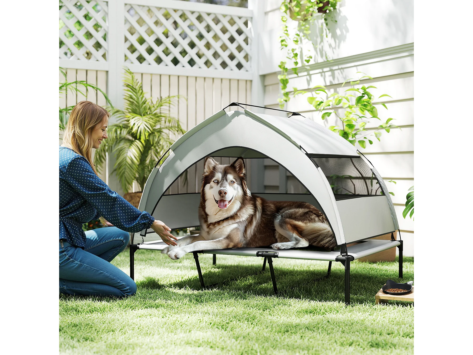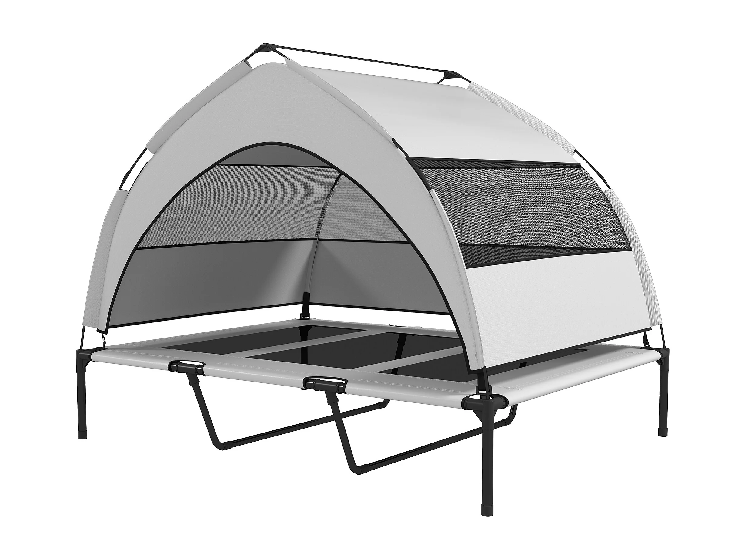 Lettino per cani rialzato con copertura a 3 lati rimovibile grigio e nero