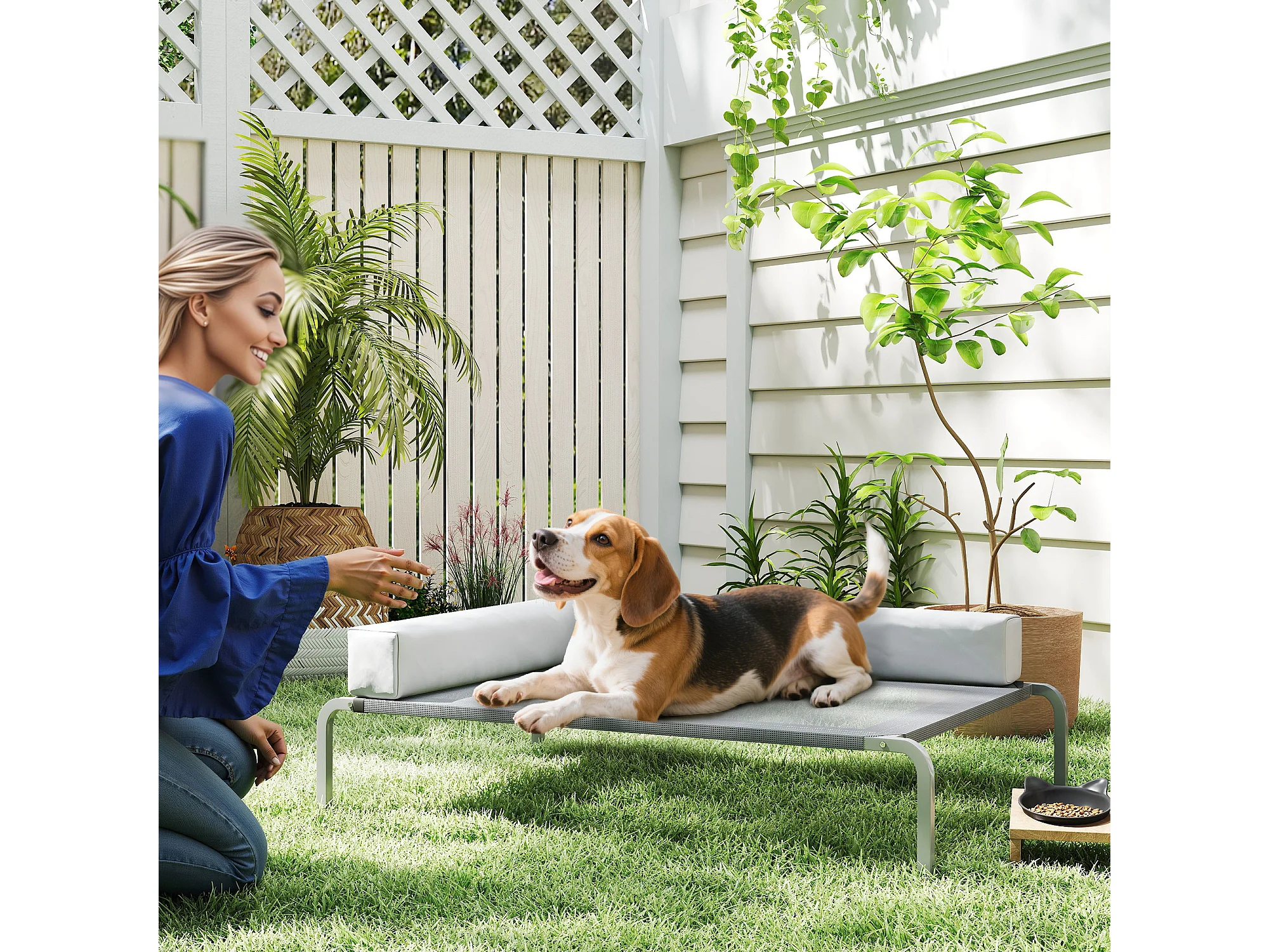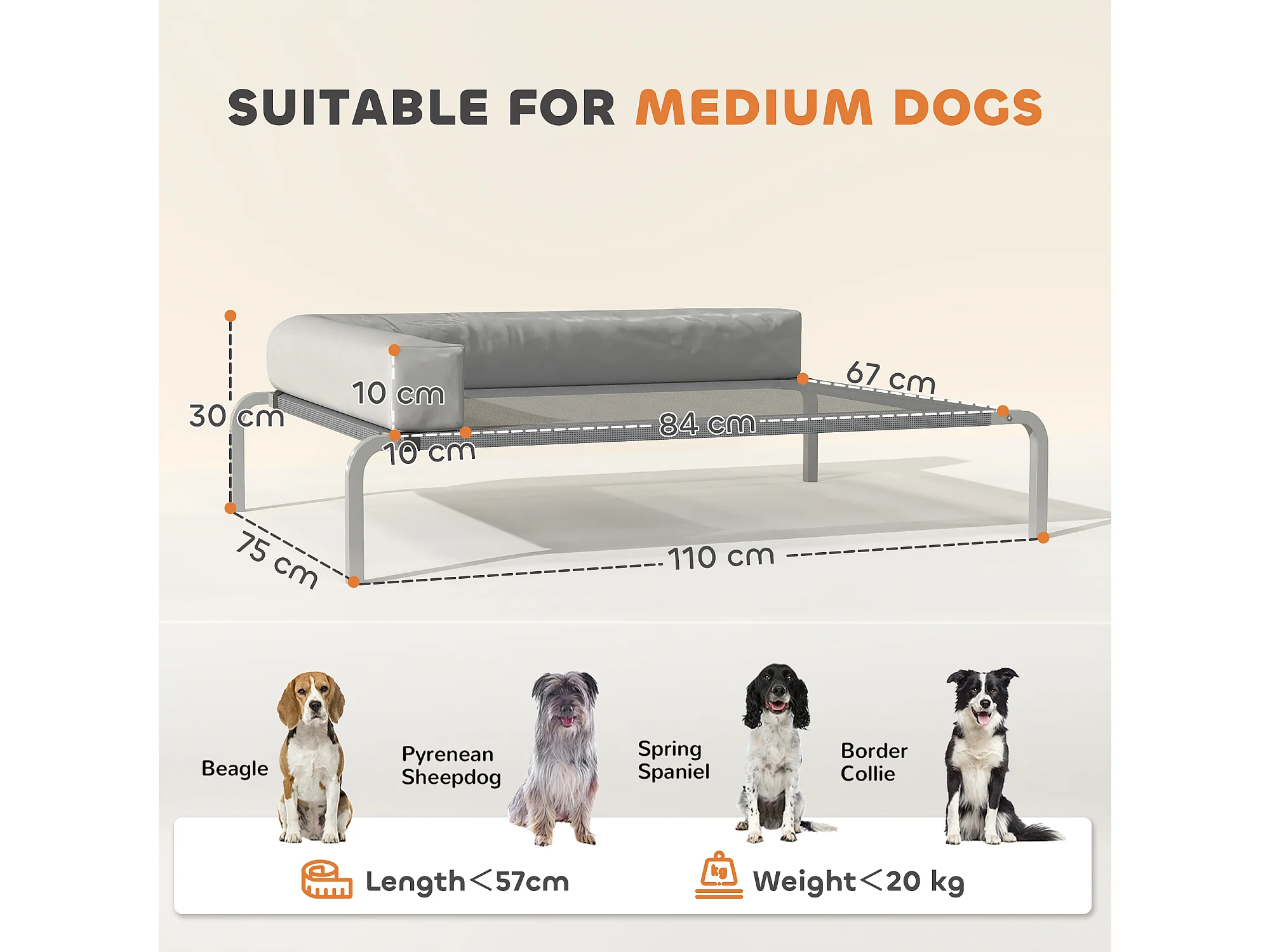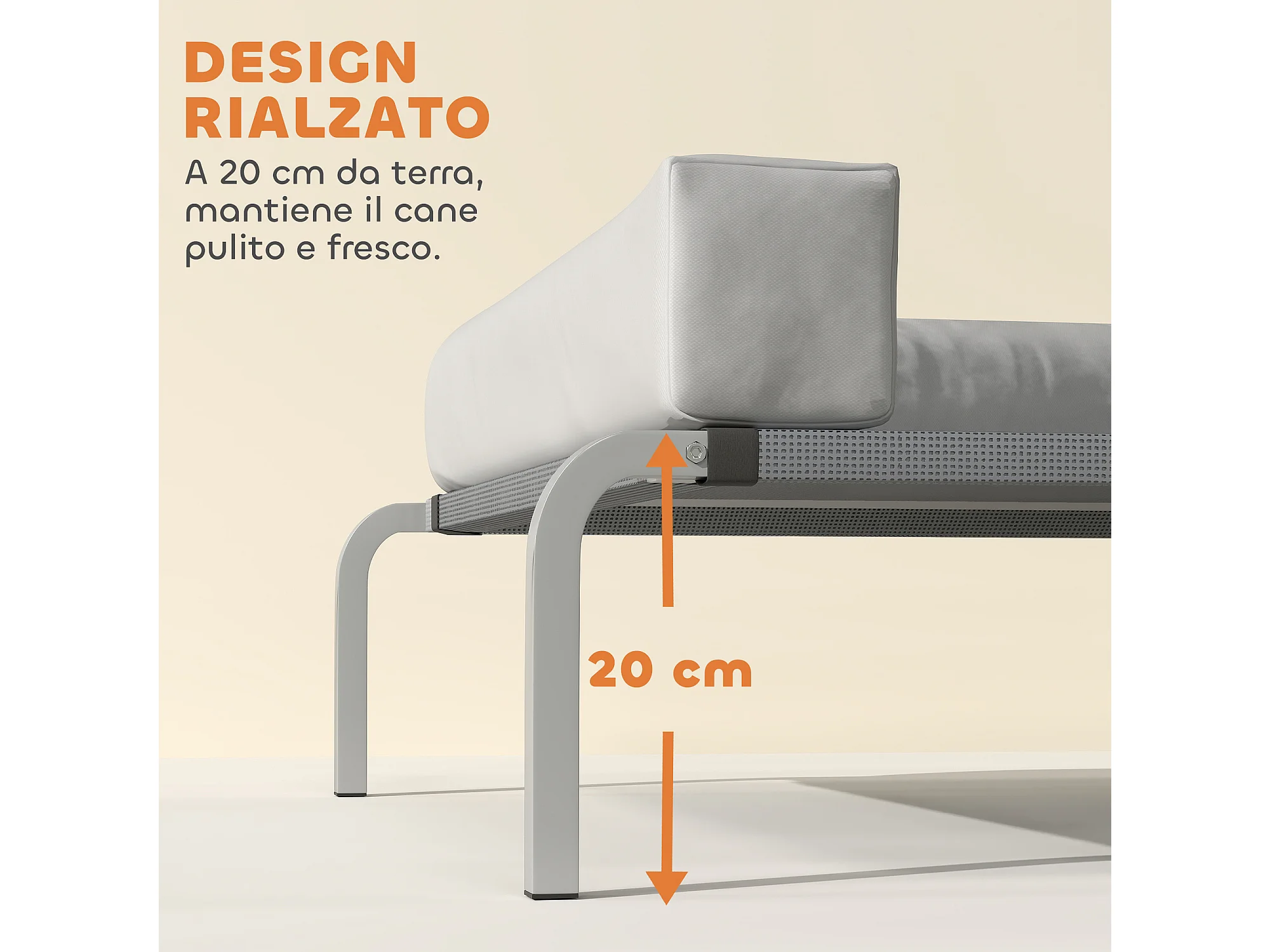 Lettino per cani rialzato con cuscino a l grigio chiaro e argento