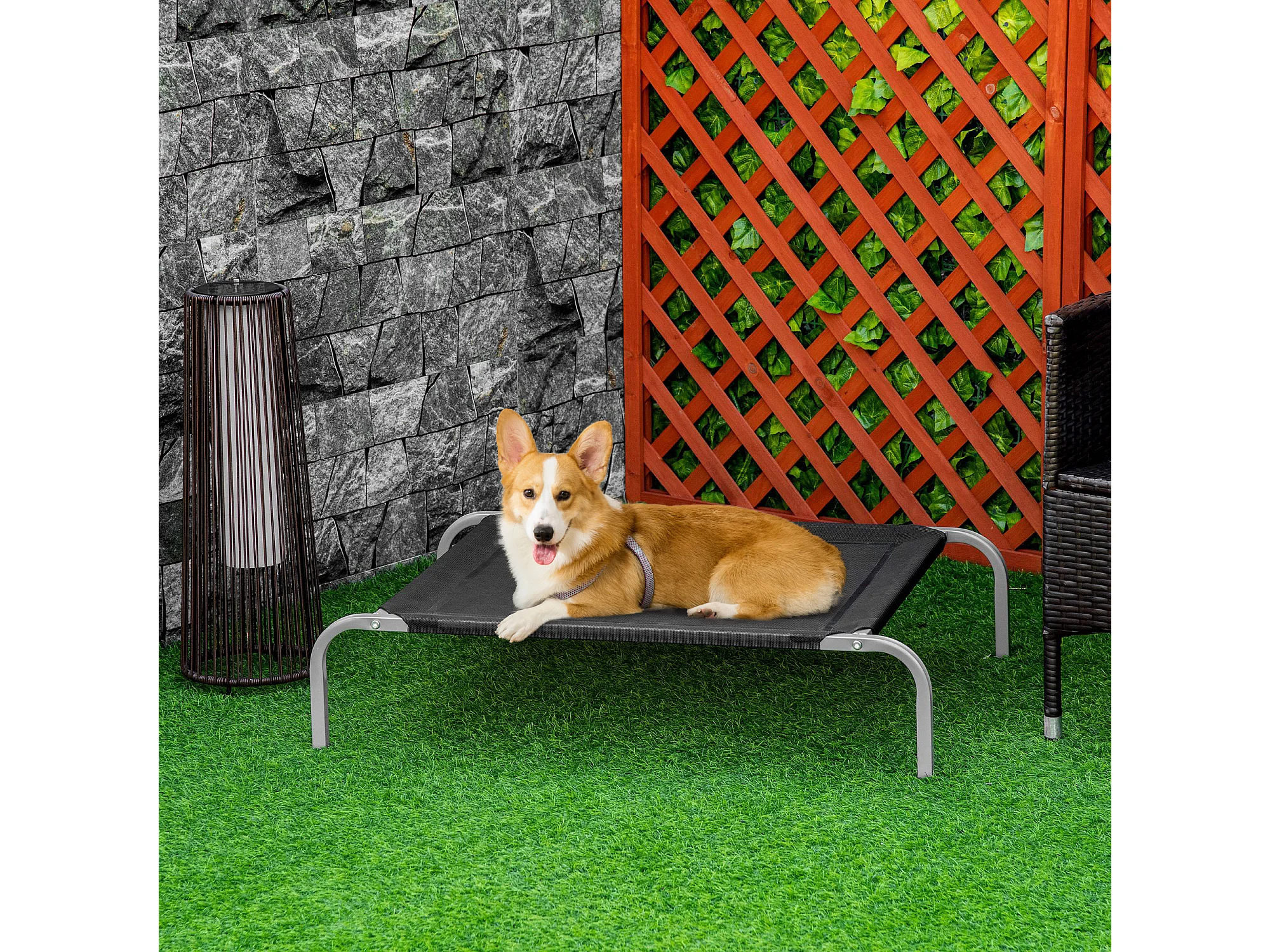 Lettino per cani rialzato con seduta traspirante nero e argento