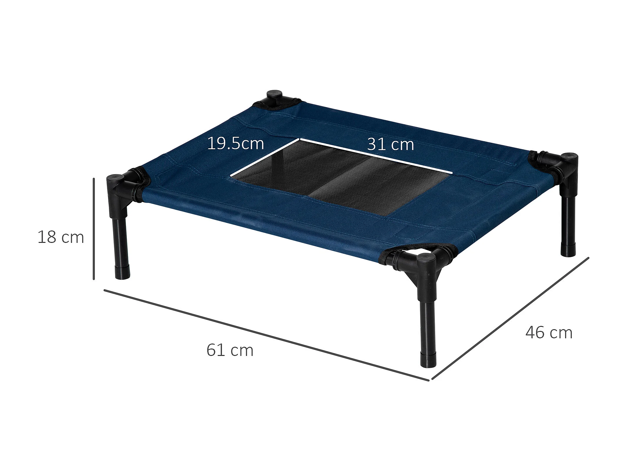 Letto rialzato per cani fino 20kg, campeggio, impermeabile - 76x61x18cm