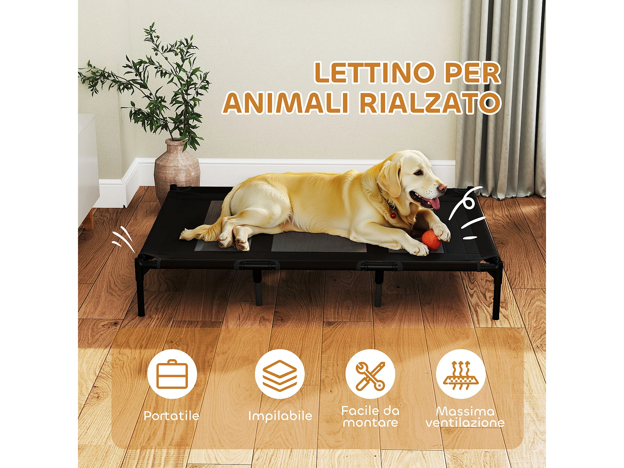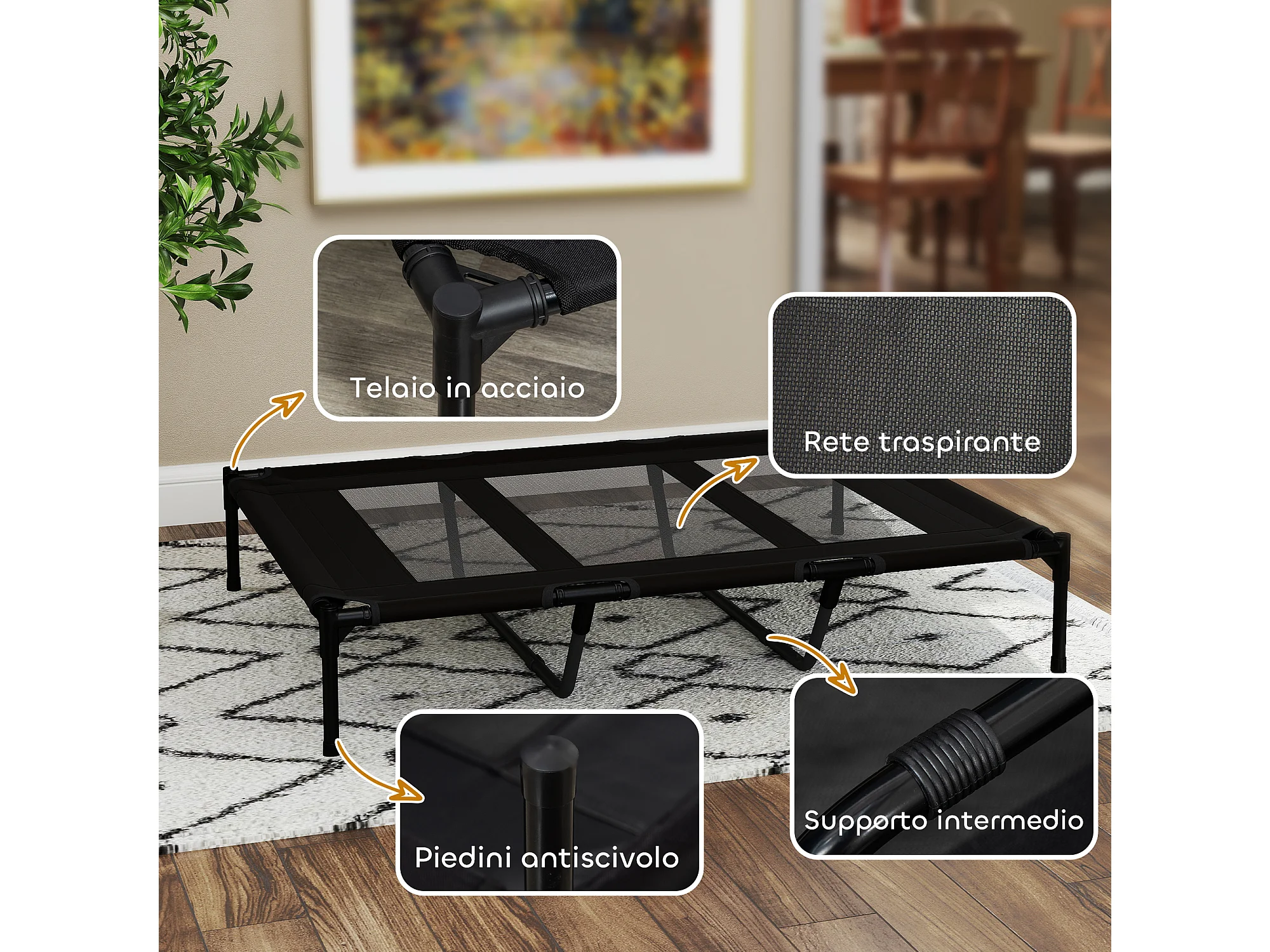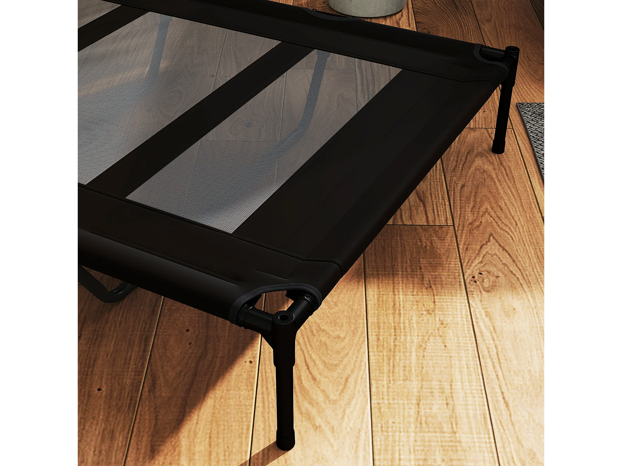 Lettino per cani rialzato in metallo e tessuto oxford nero