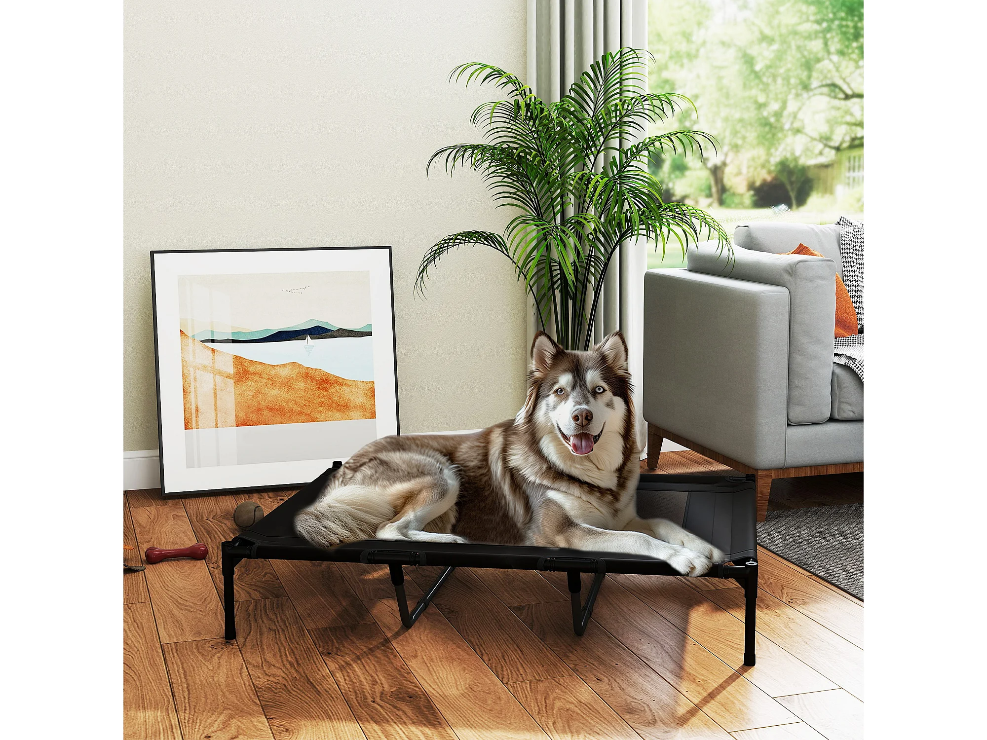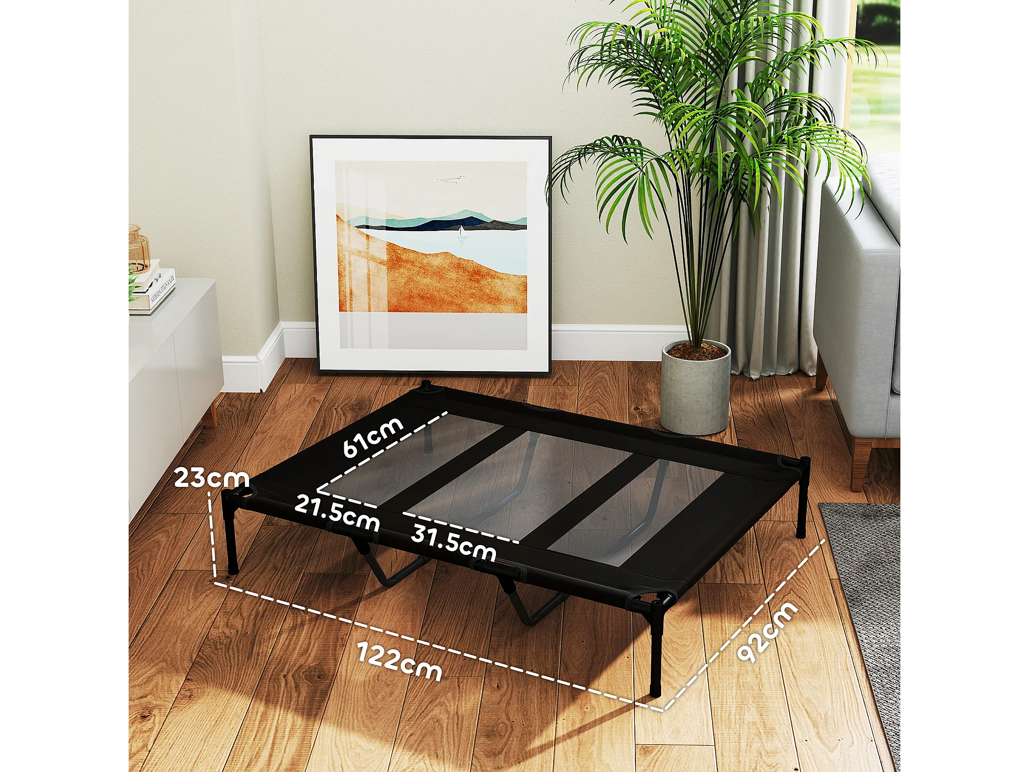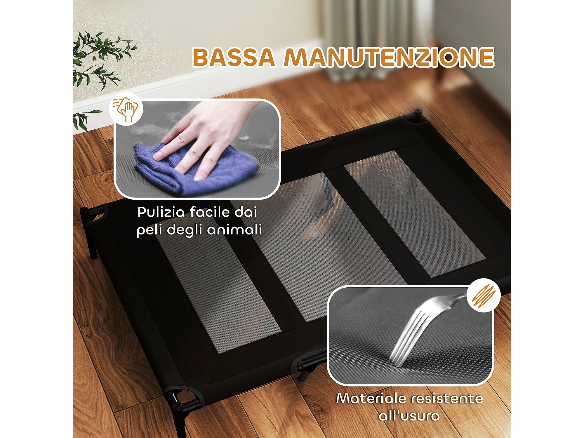 Lettino per cani rialzato in metallo e tessuto oxford nero