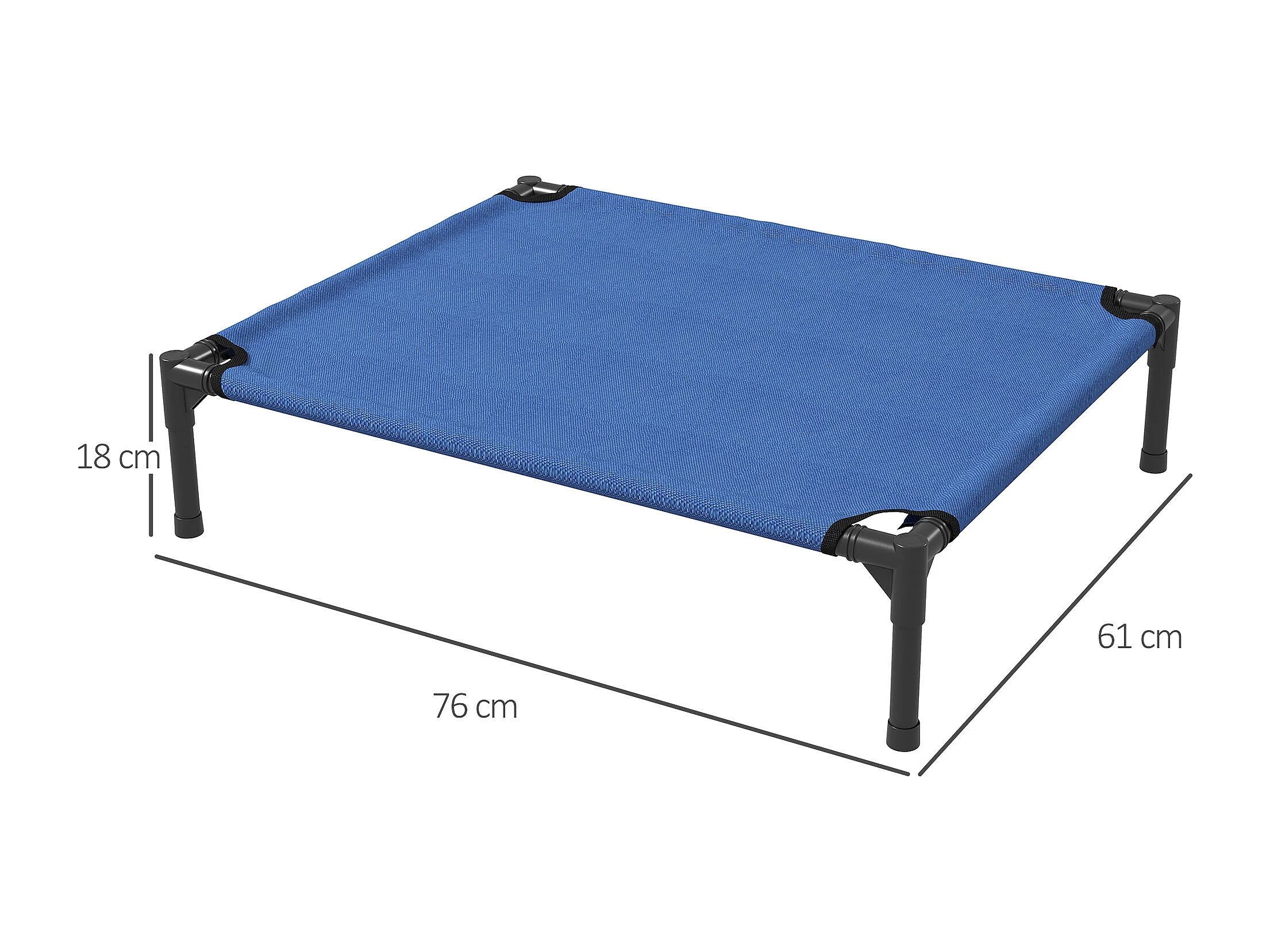Lettino per cani rialzato pieghevole da interno ed esterno 76x61x18cm blu