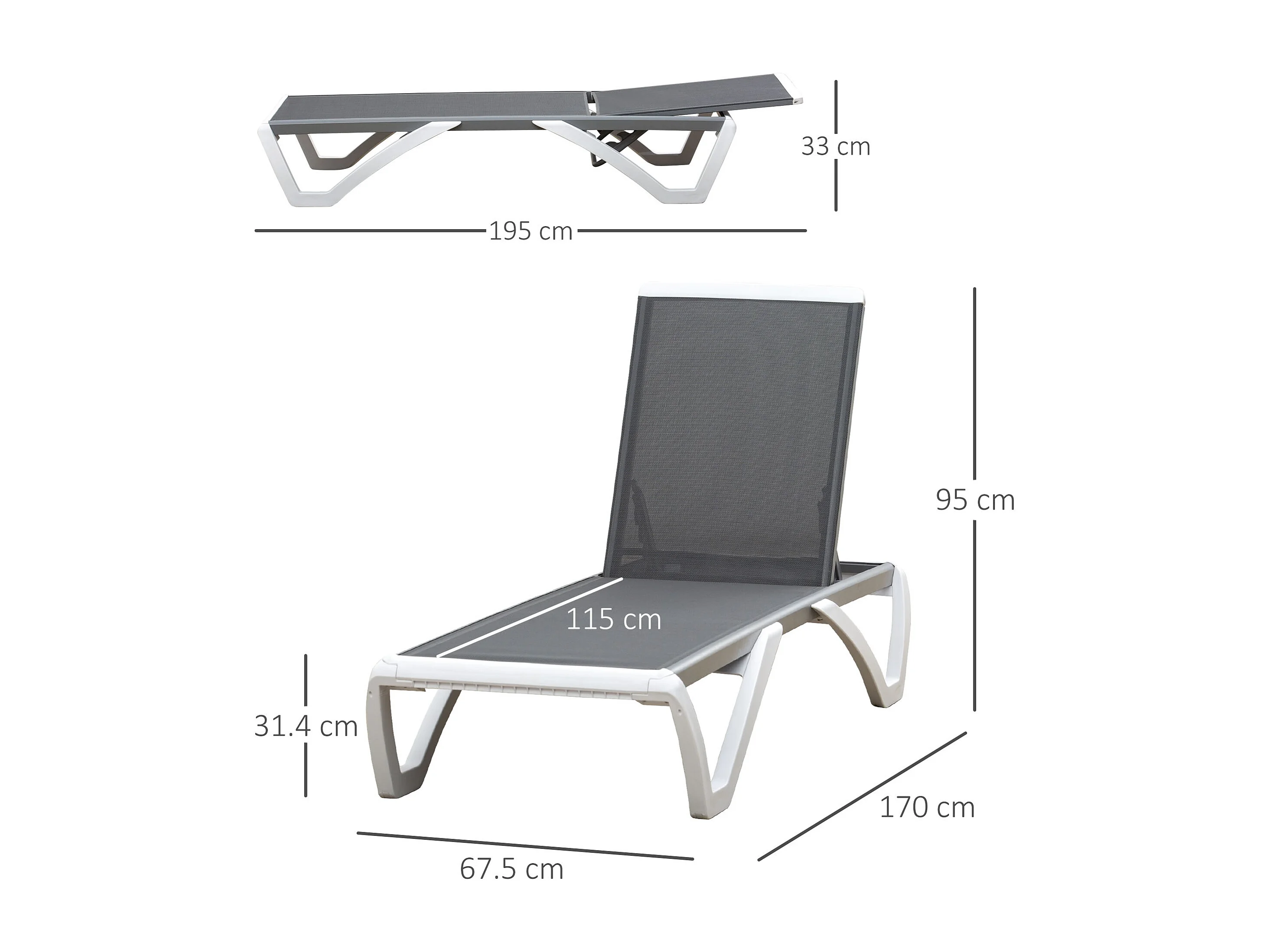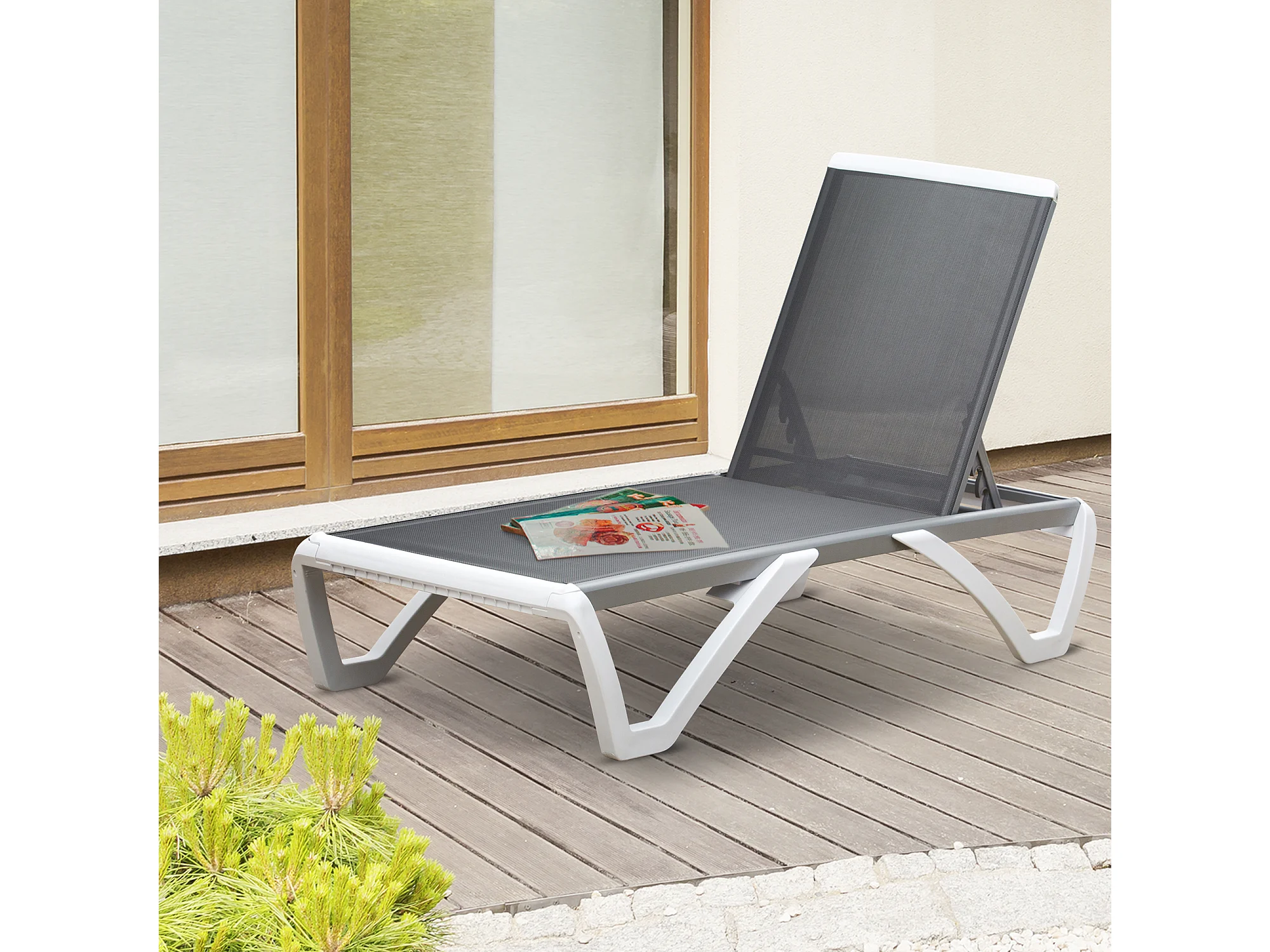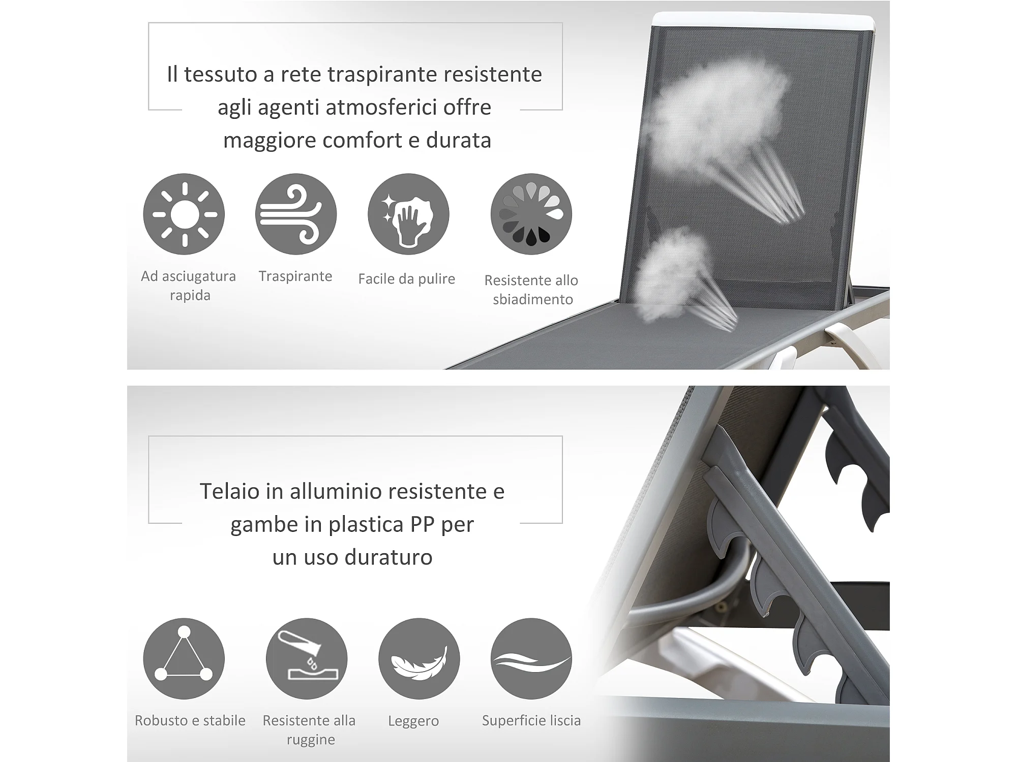 Lettino prendisole con schienale reclinabile su 5 livelli e rotelle