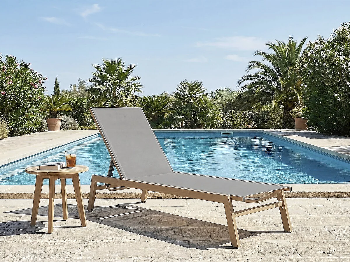 Lettino prendisole "Elysia" in alluminio con finitura effetto legno - Grigio chiaro