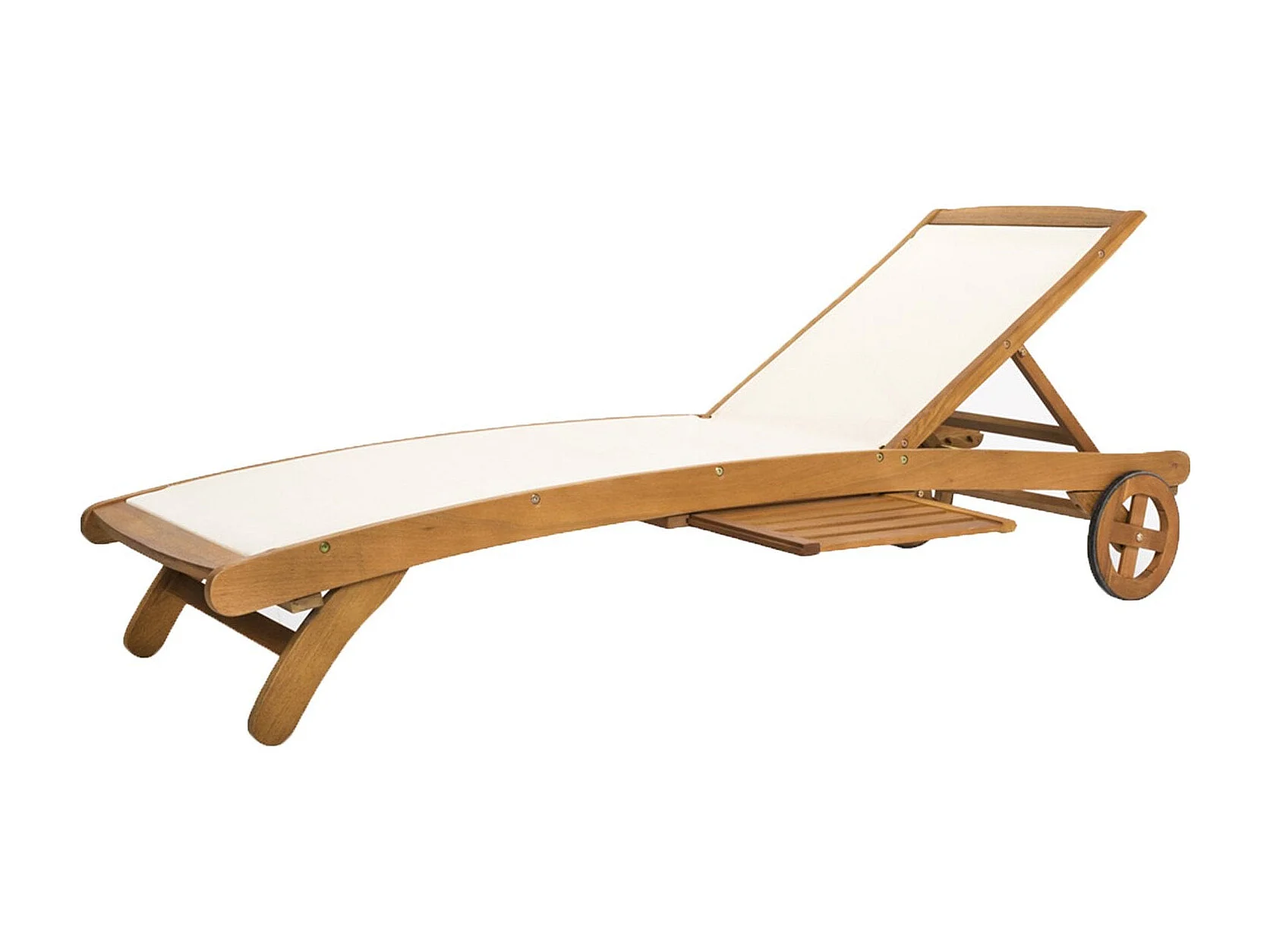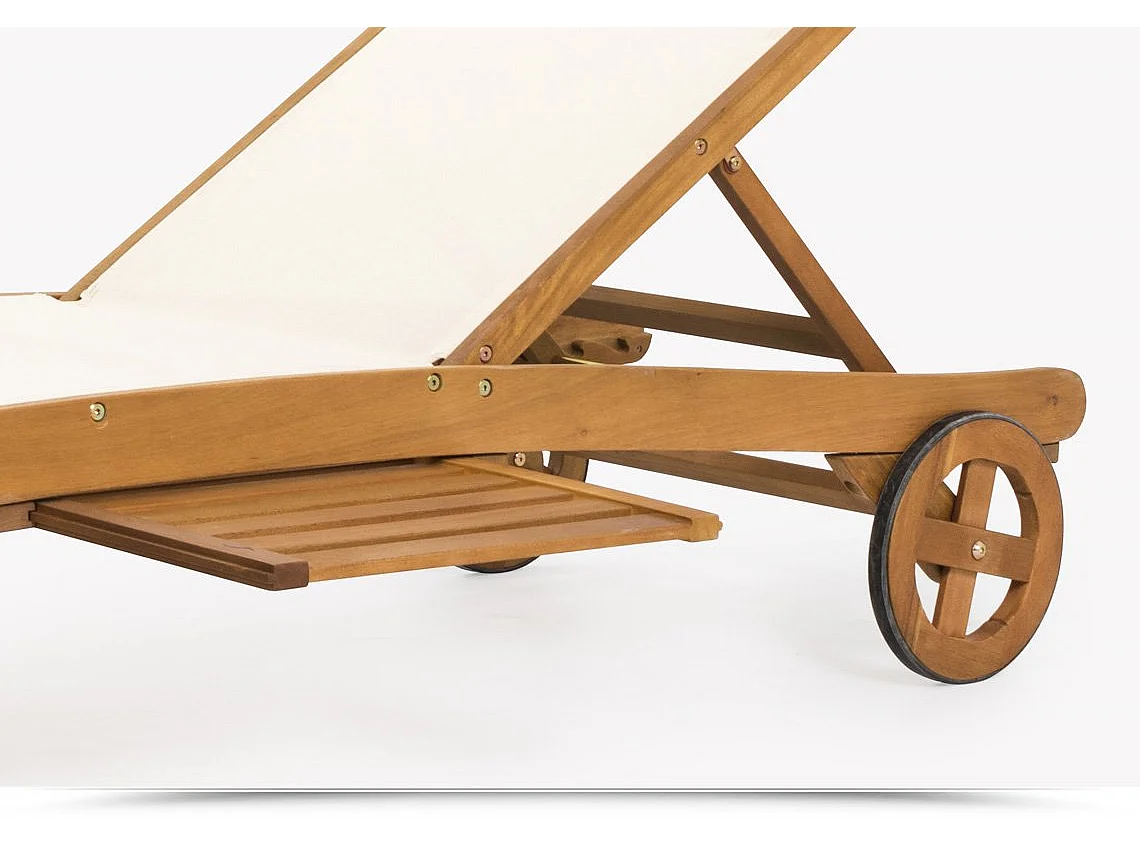 Lettino prendisole in legno e Texilene con ruote e porta bevande, ideale per piscina e giardino / Default Title