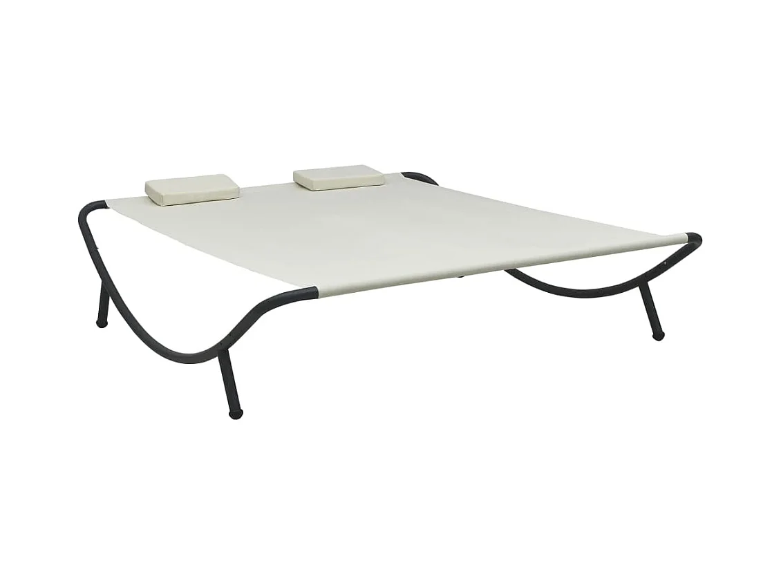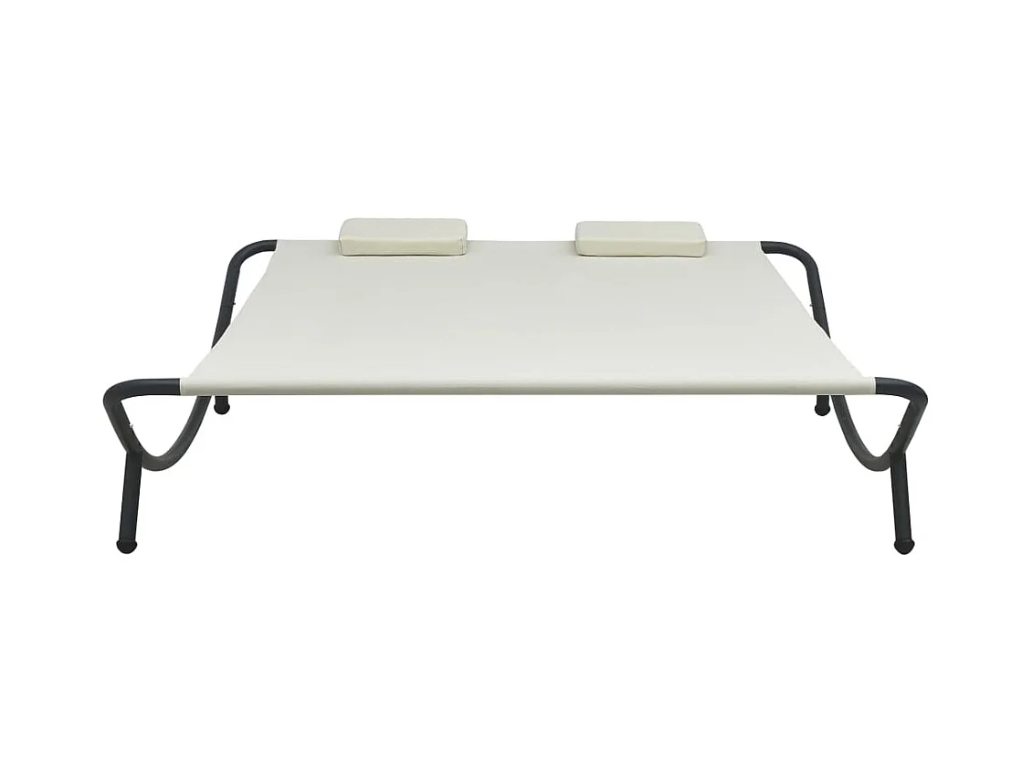 Lettino Prendisole Tettuccio Crema 167x80x195cm Tessuto Acciaio