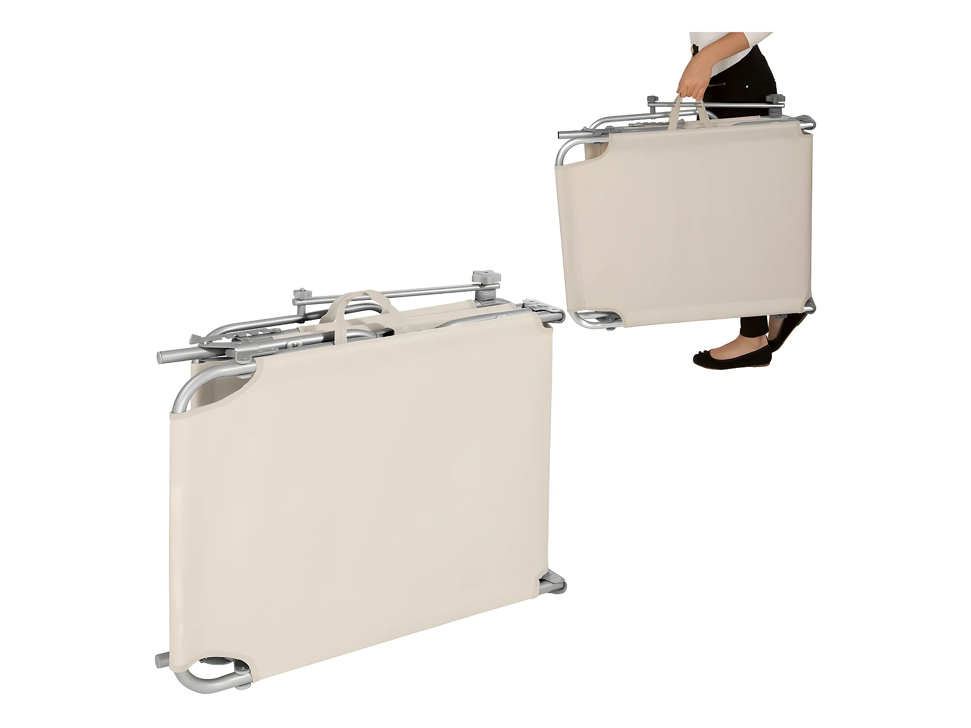 Lettino prendisole sedia a sdraio pieghevole con parasole acciaio PVC poliestere 187 cm crema 03_0000987